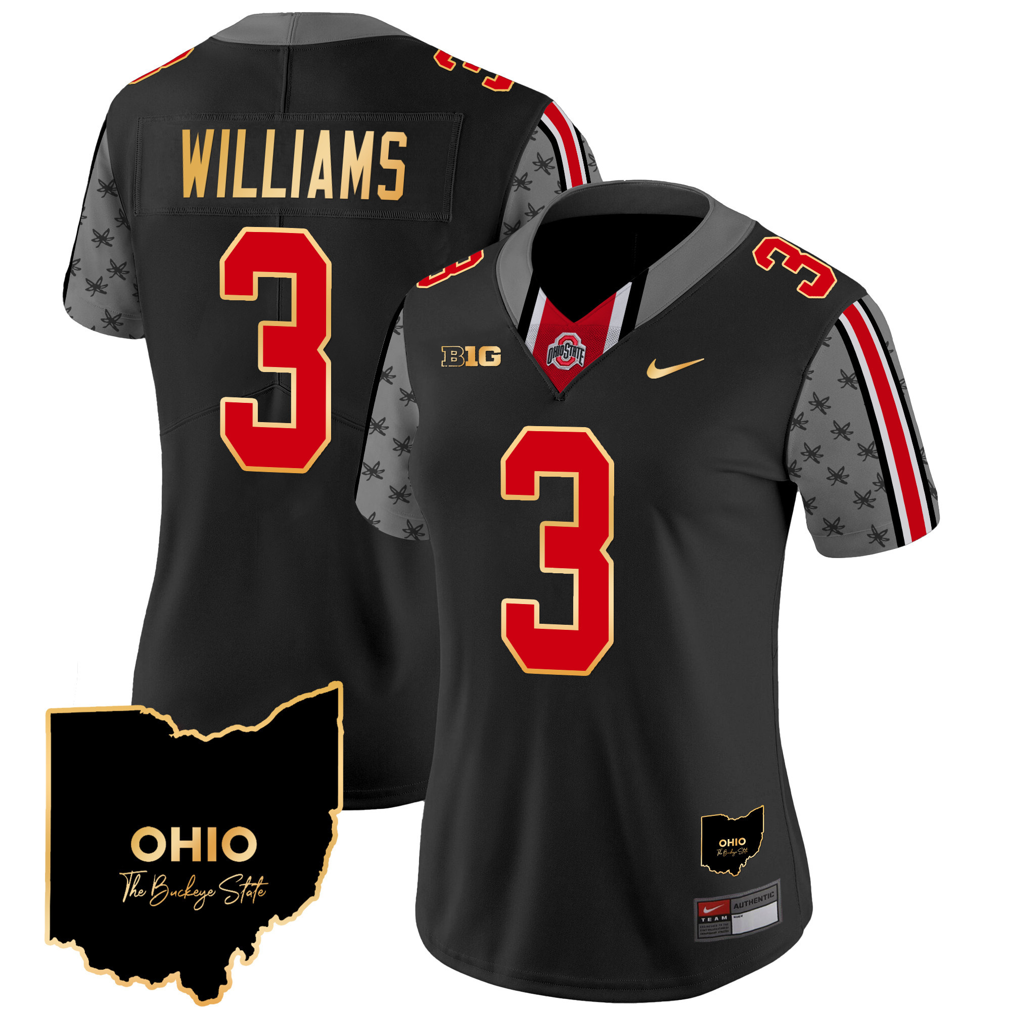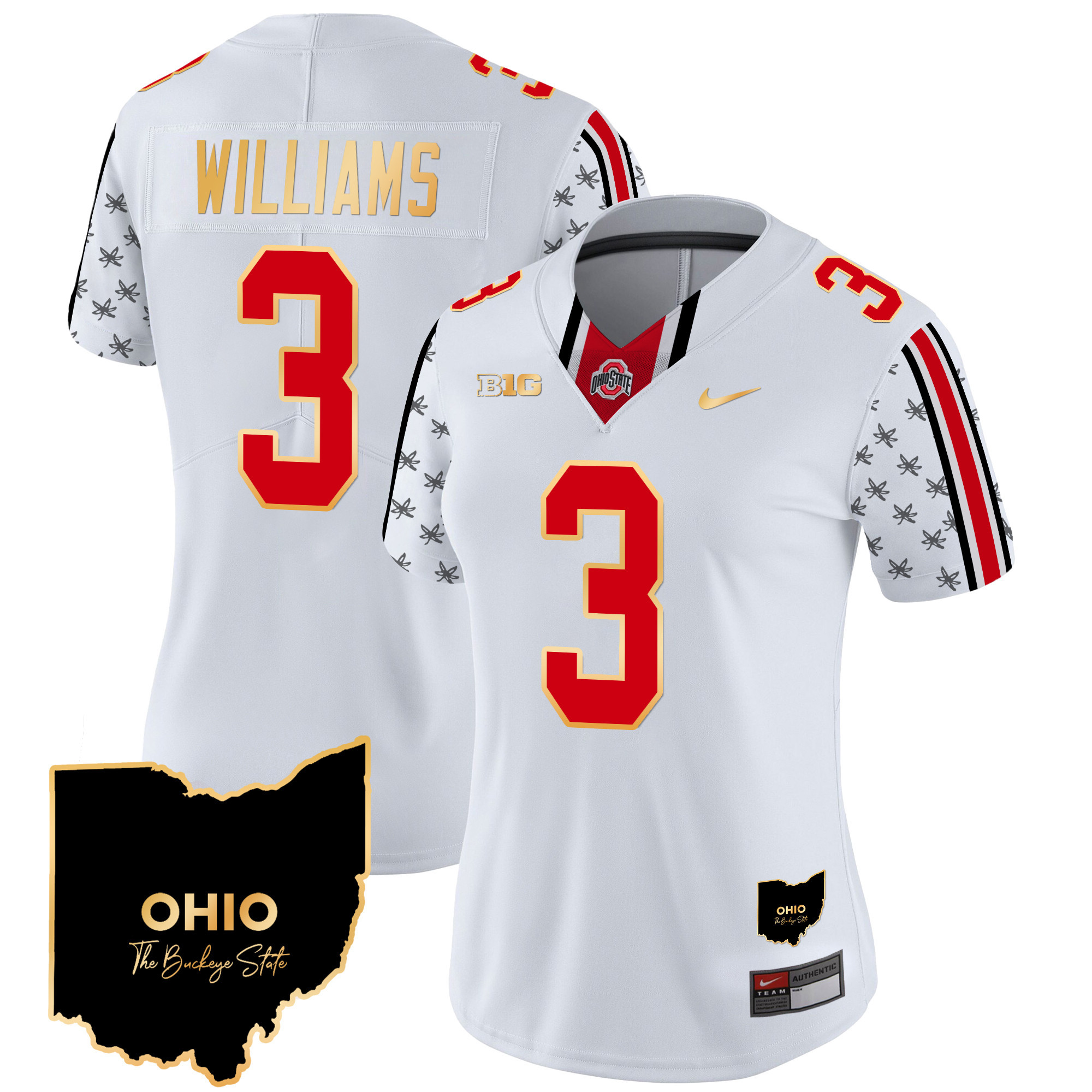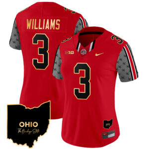 Women’s Ohio State Buckeyes 2024 Home Patch Gold Trim Vapor Limited Jersey – All Stitched