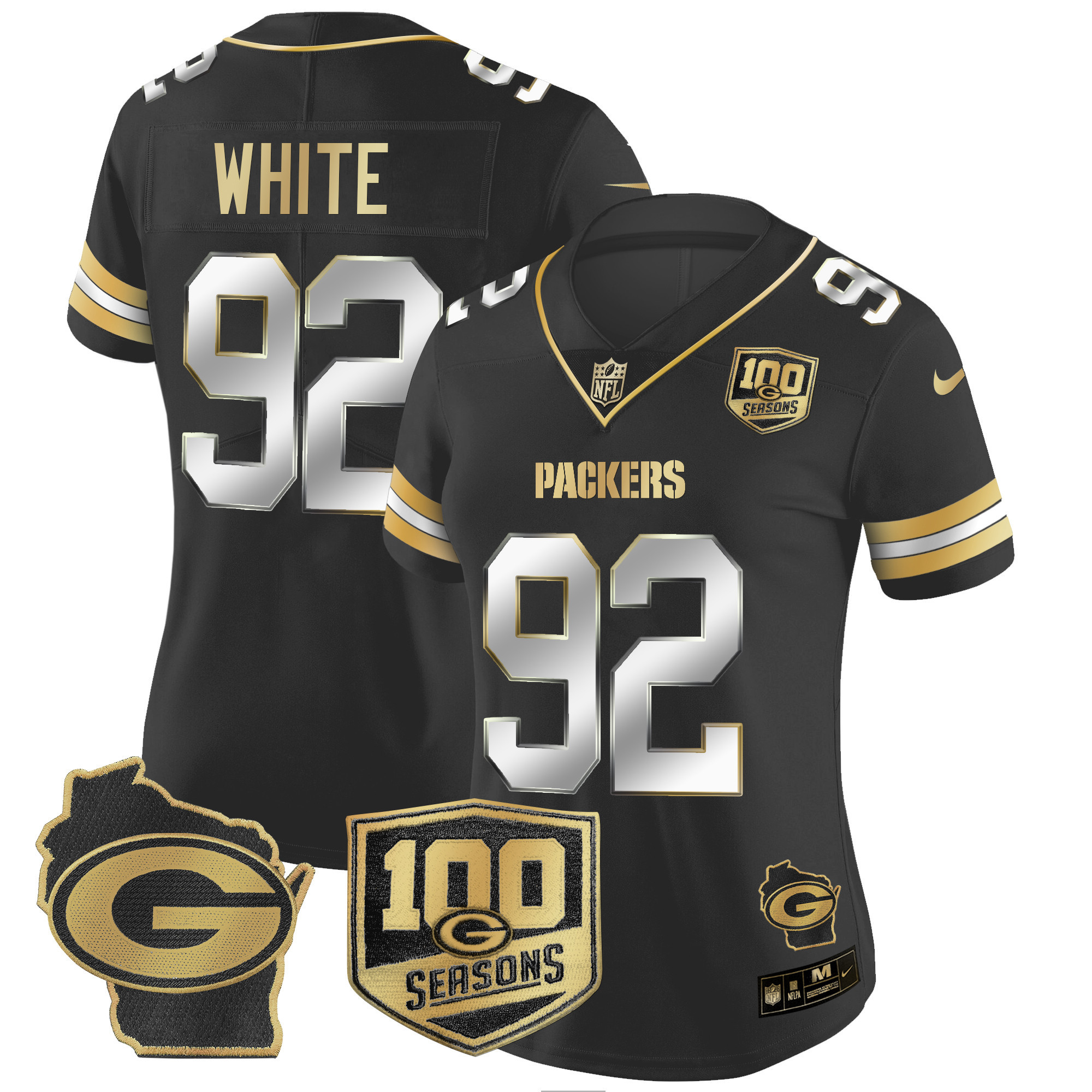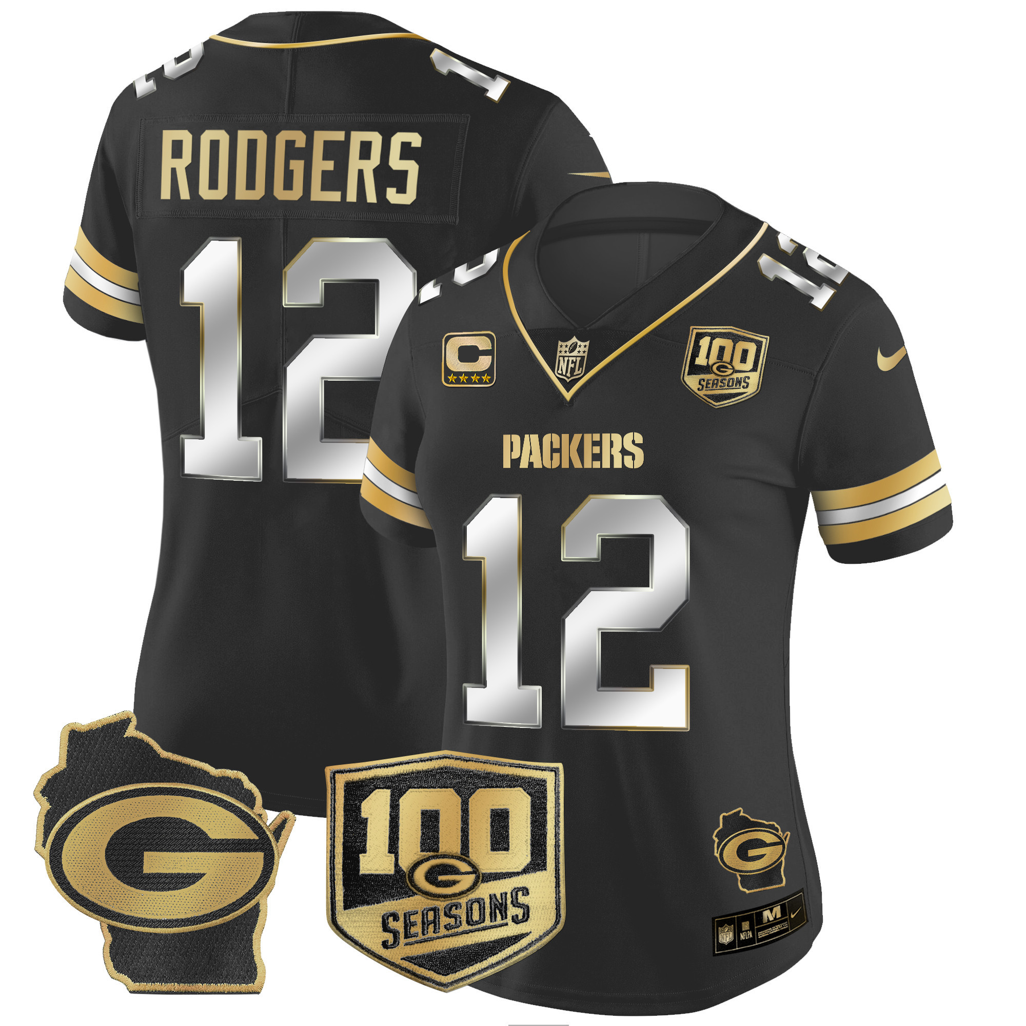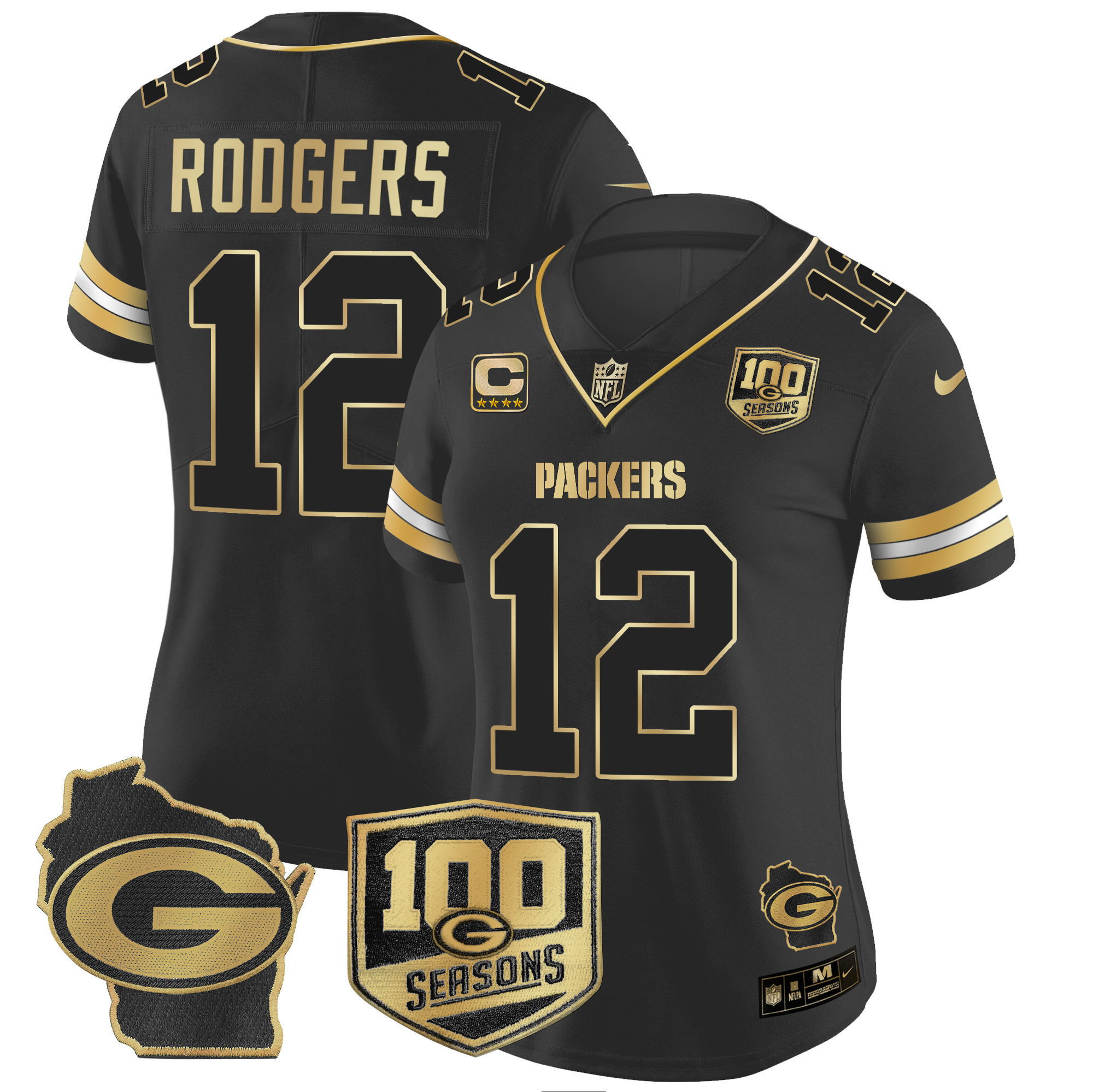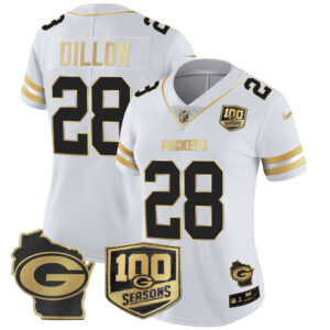 Women’s Packers 100th Season & Home Patch Gold Vapor Limited Jersey – All Stitched