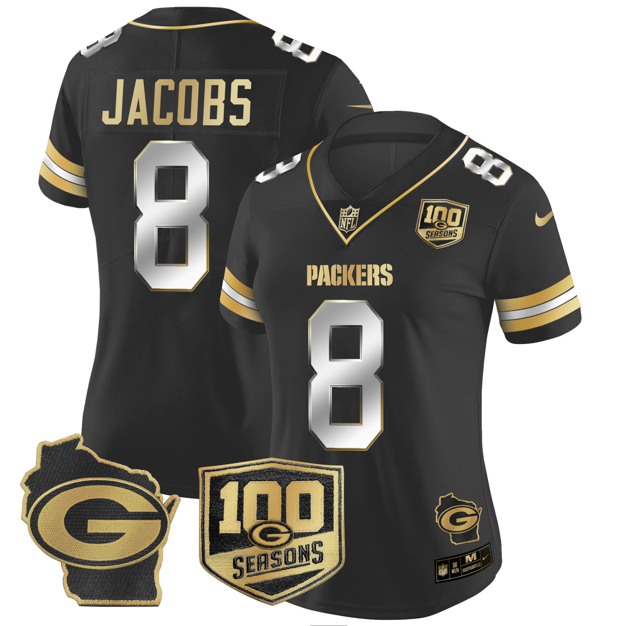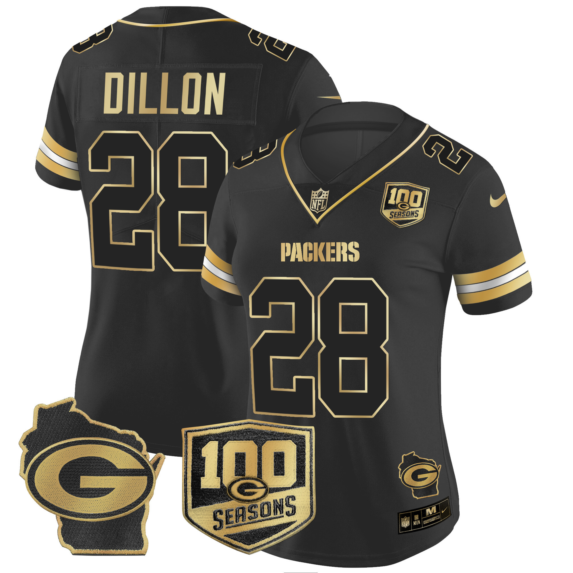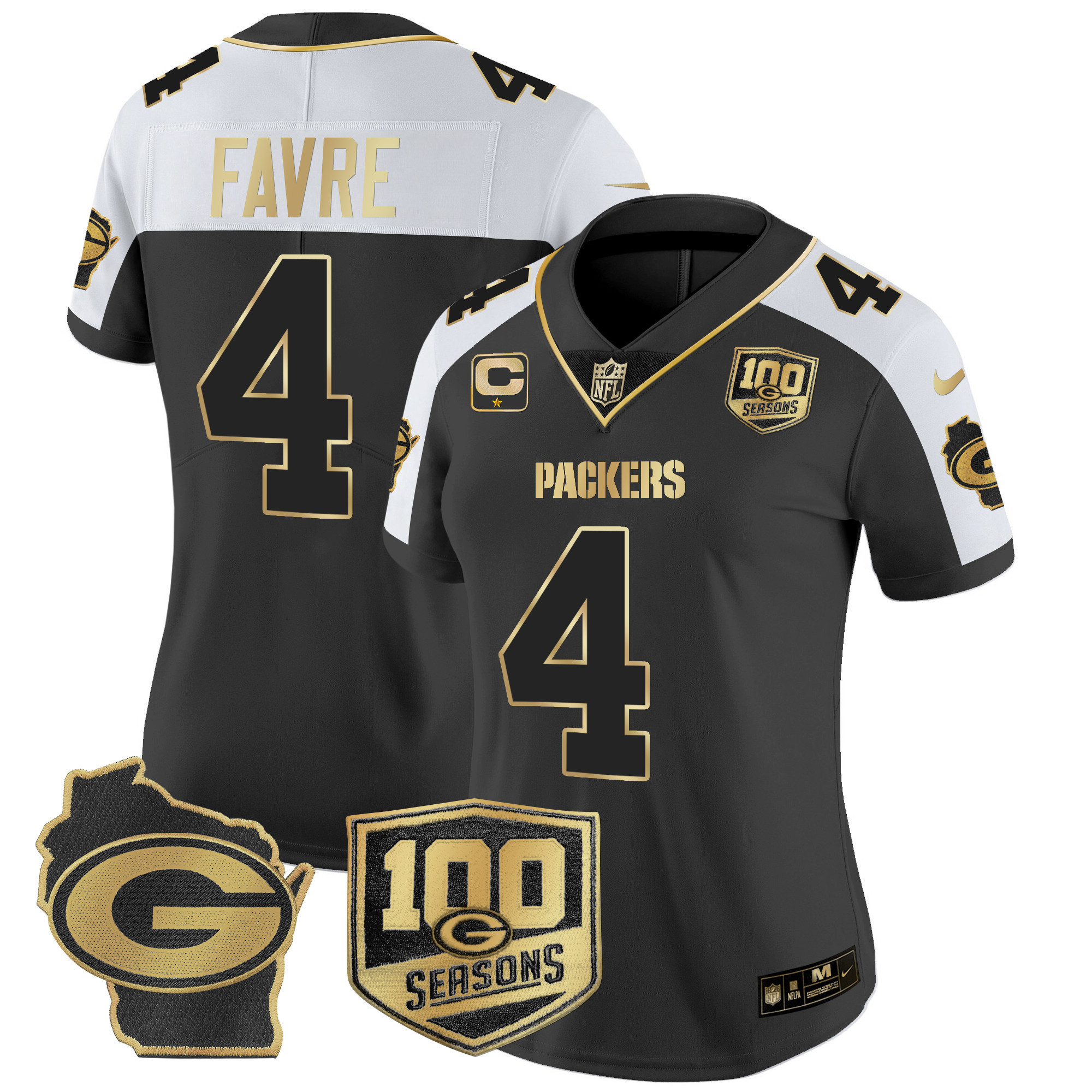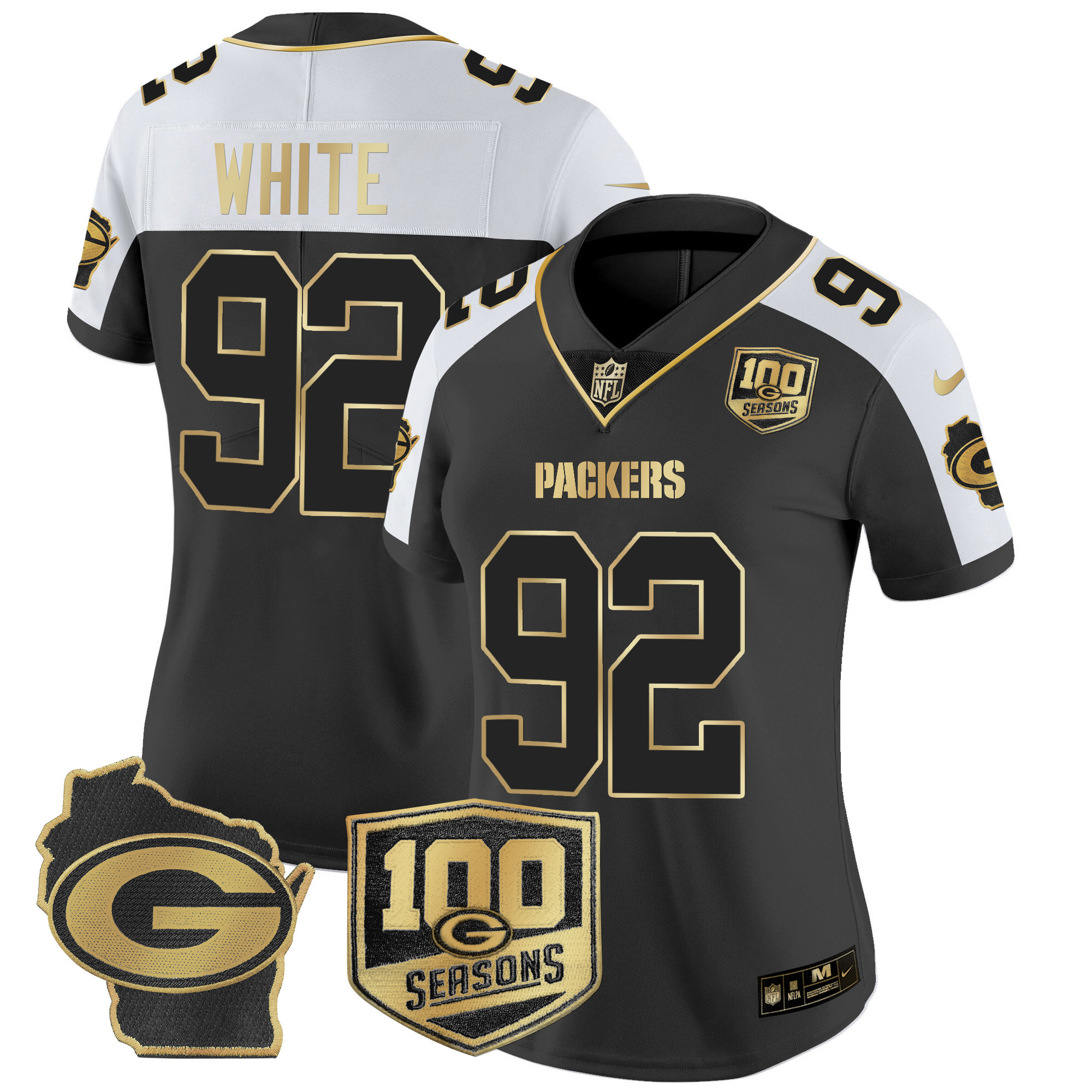 Women’s Packers 100th Season & Home Patch Gold Vapor Limited Jersey – All Stitched