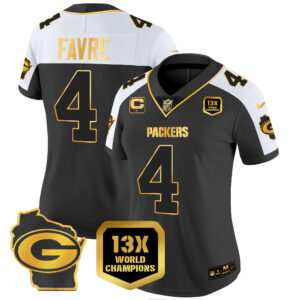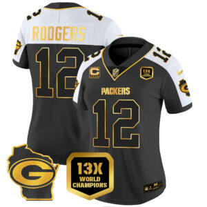 Women’s Packers 13 Time World Champions & Home Patch Gold Vapor Jersey – All Stitched