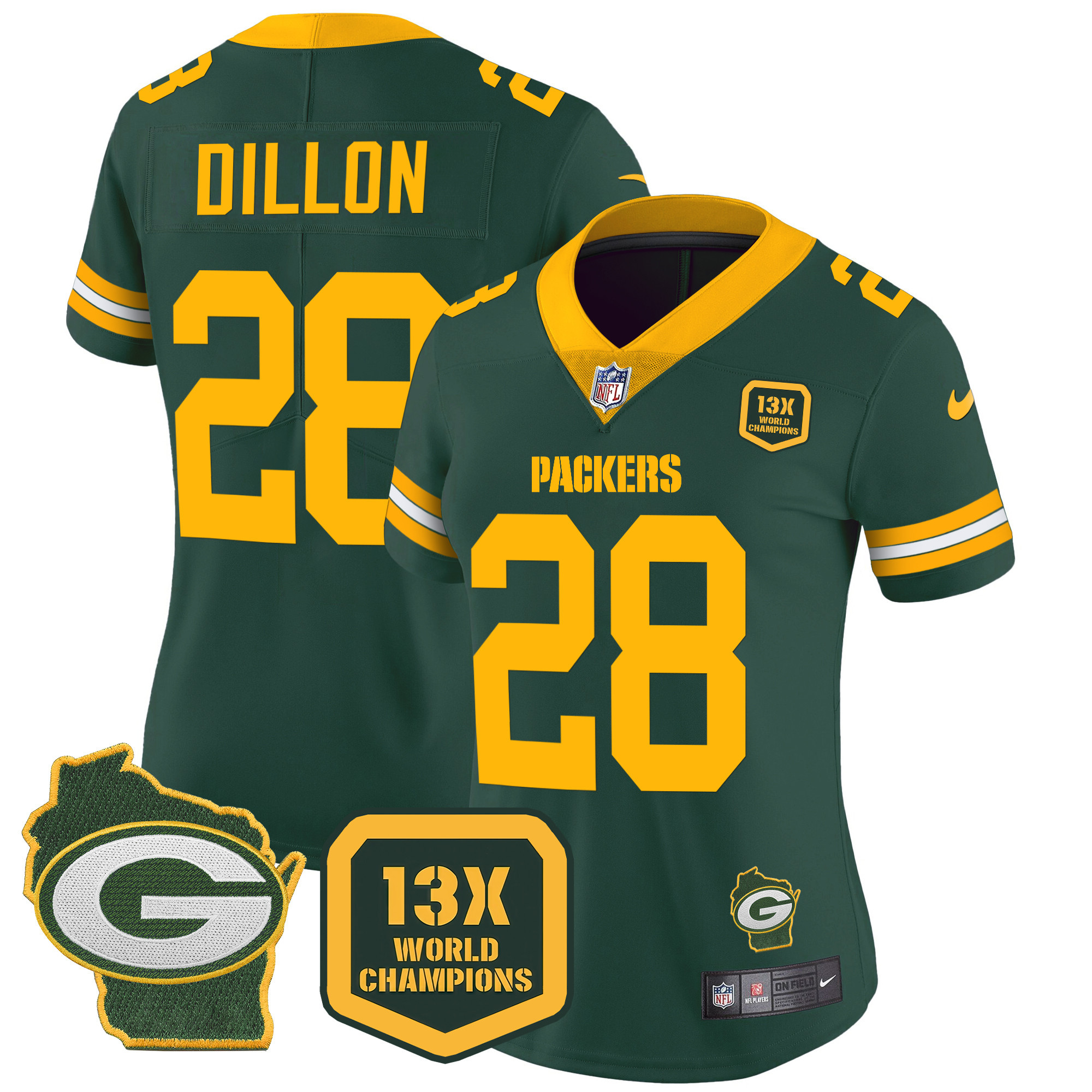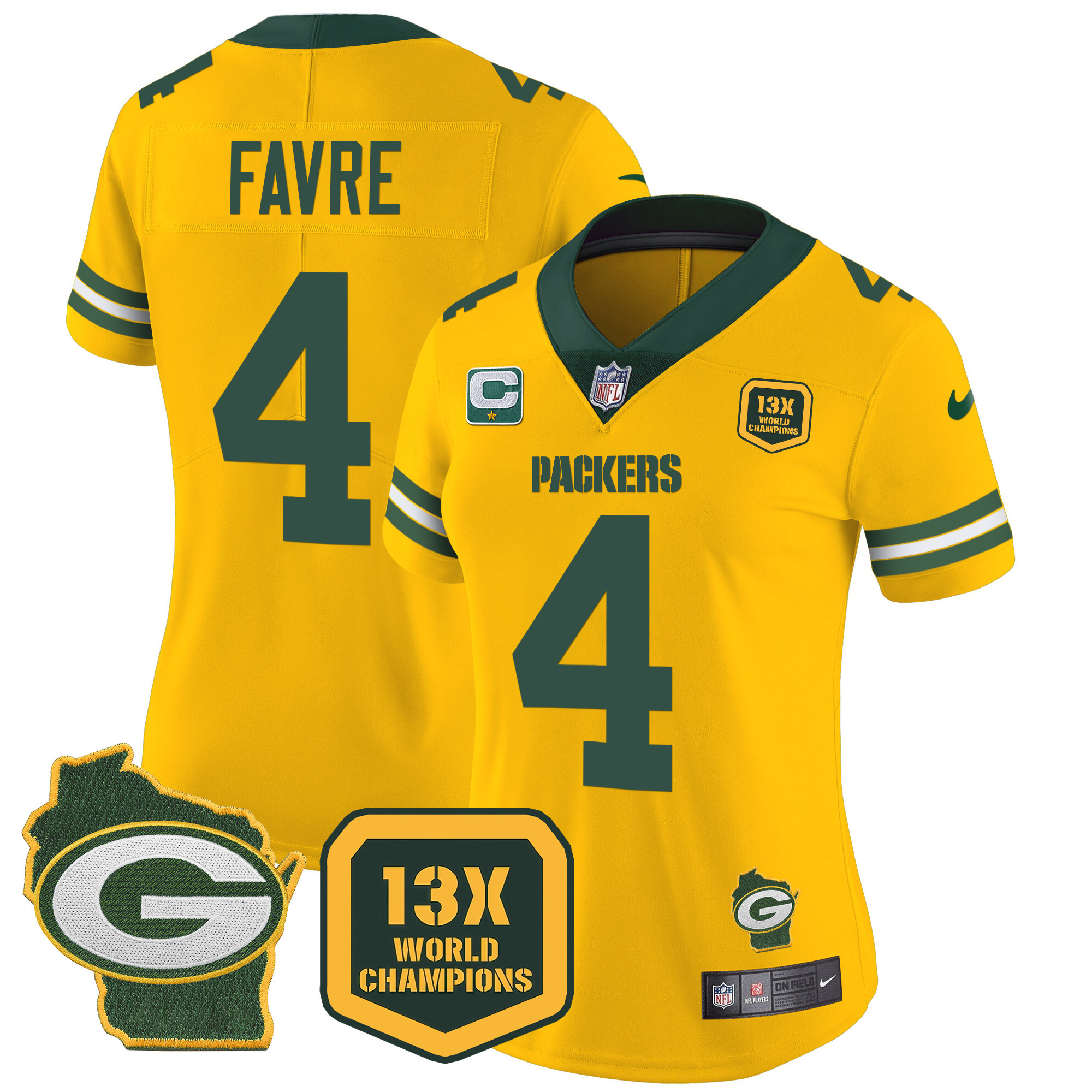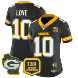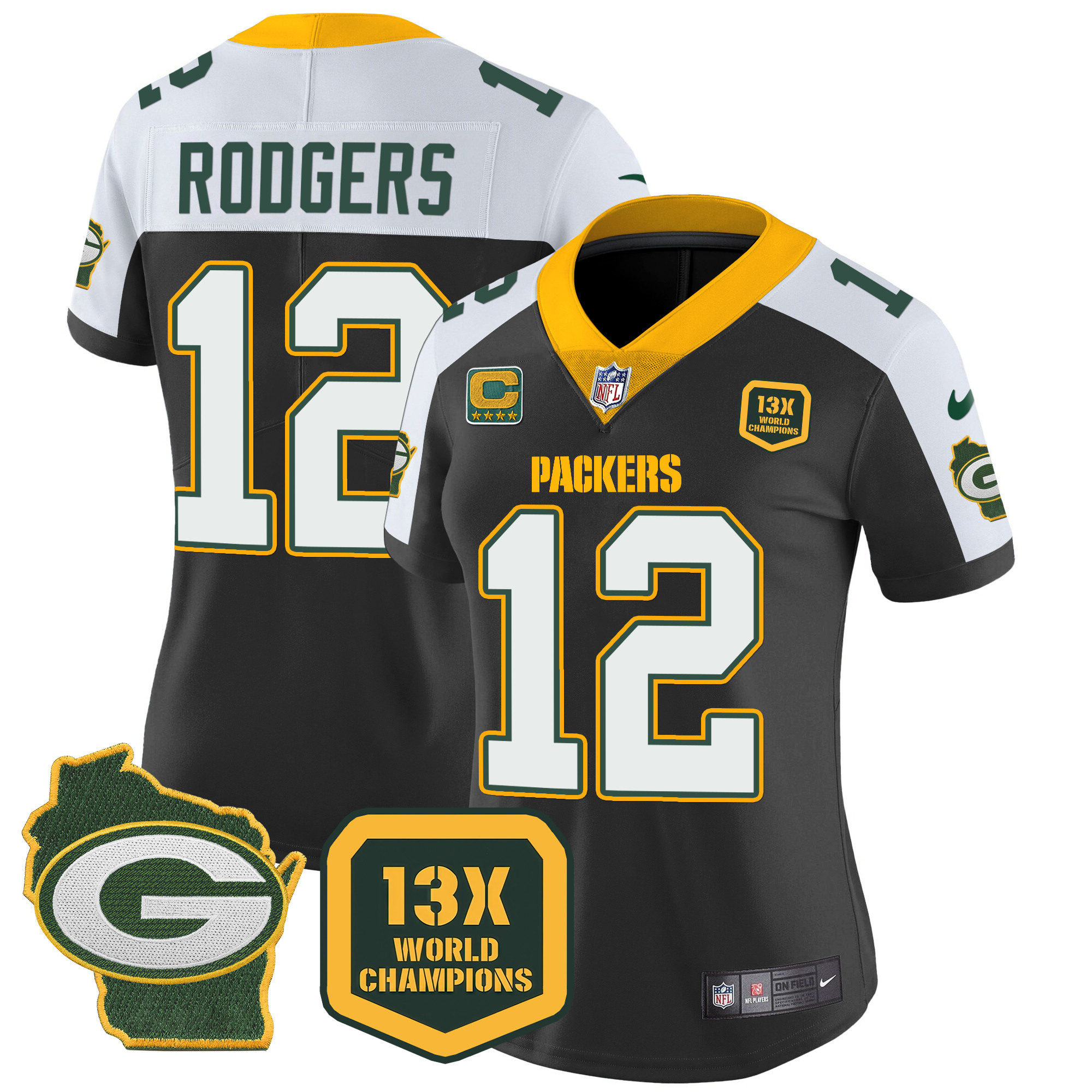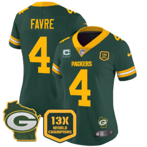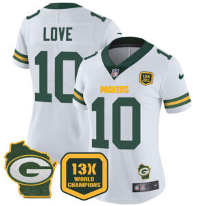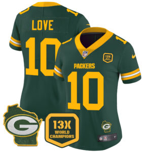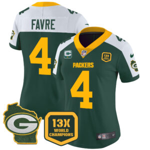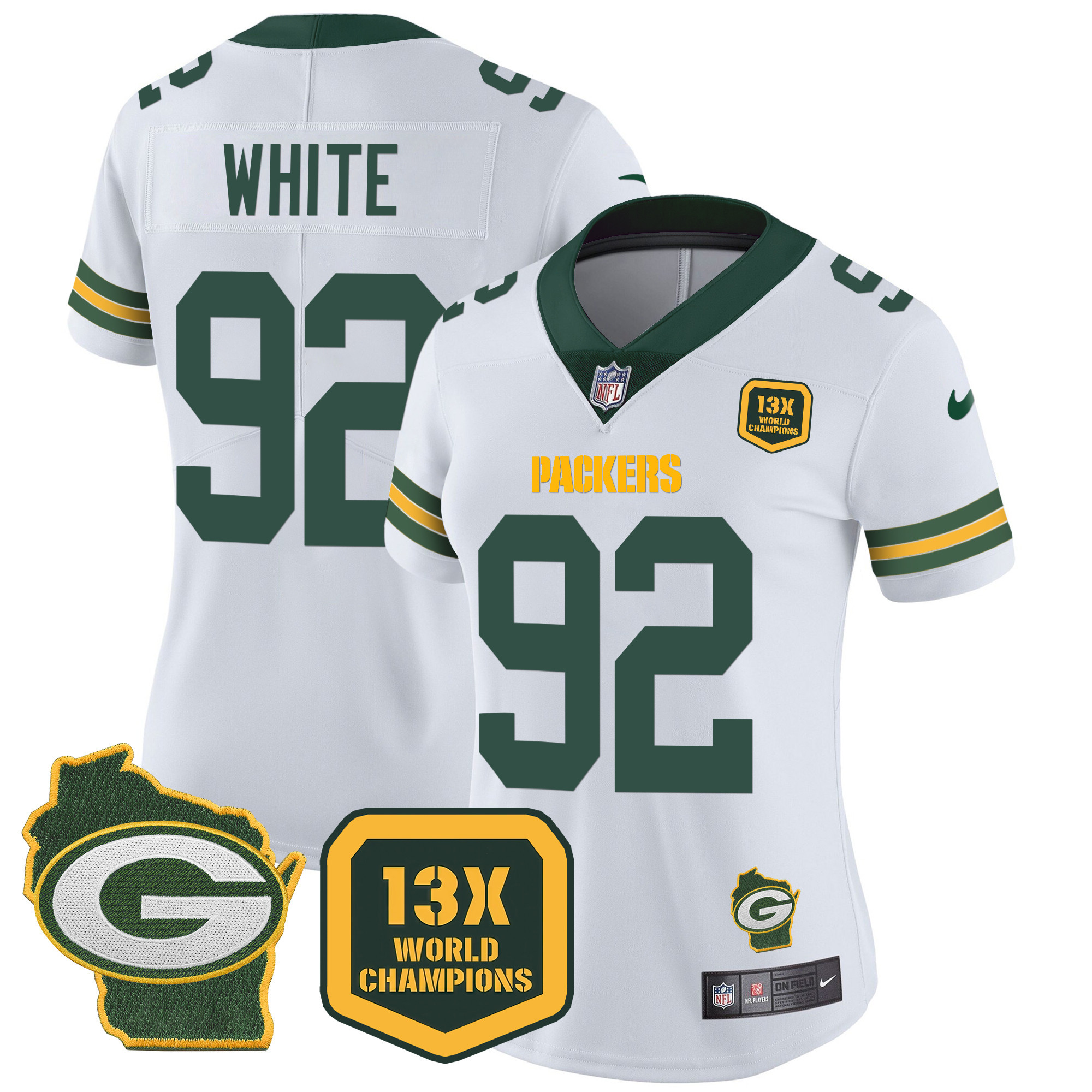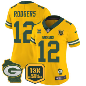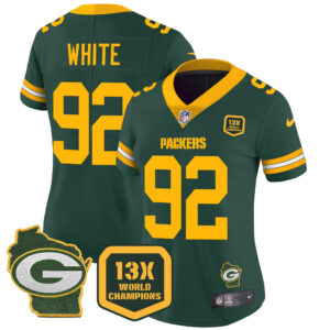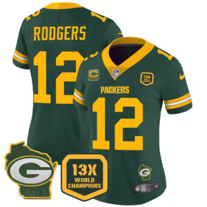 Women’s Packers 13 Time World Champions & Home Patch Vapor Jersey – All Stitched