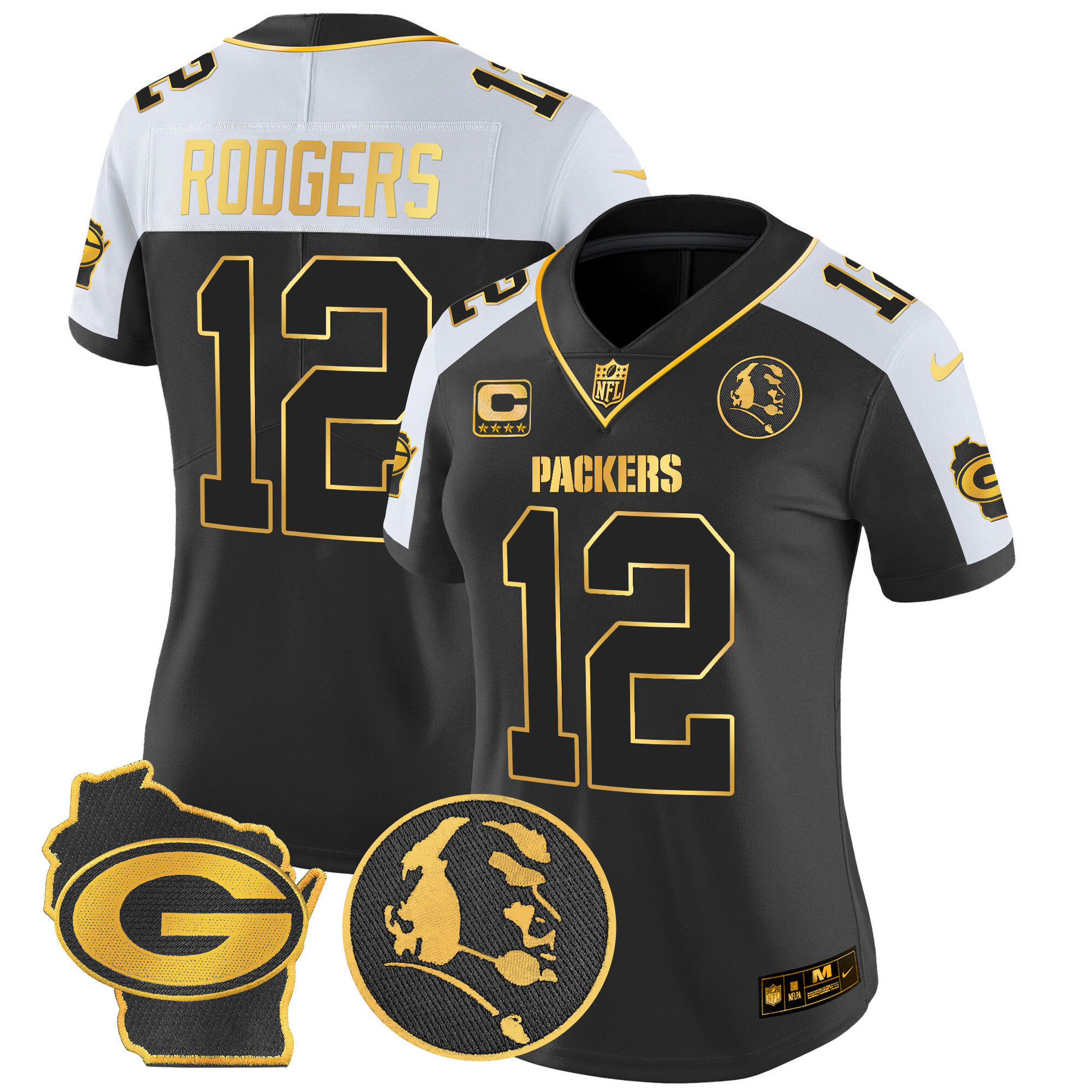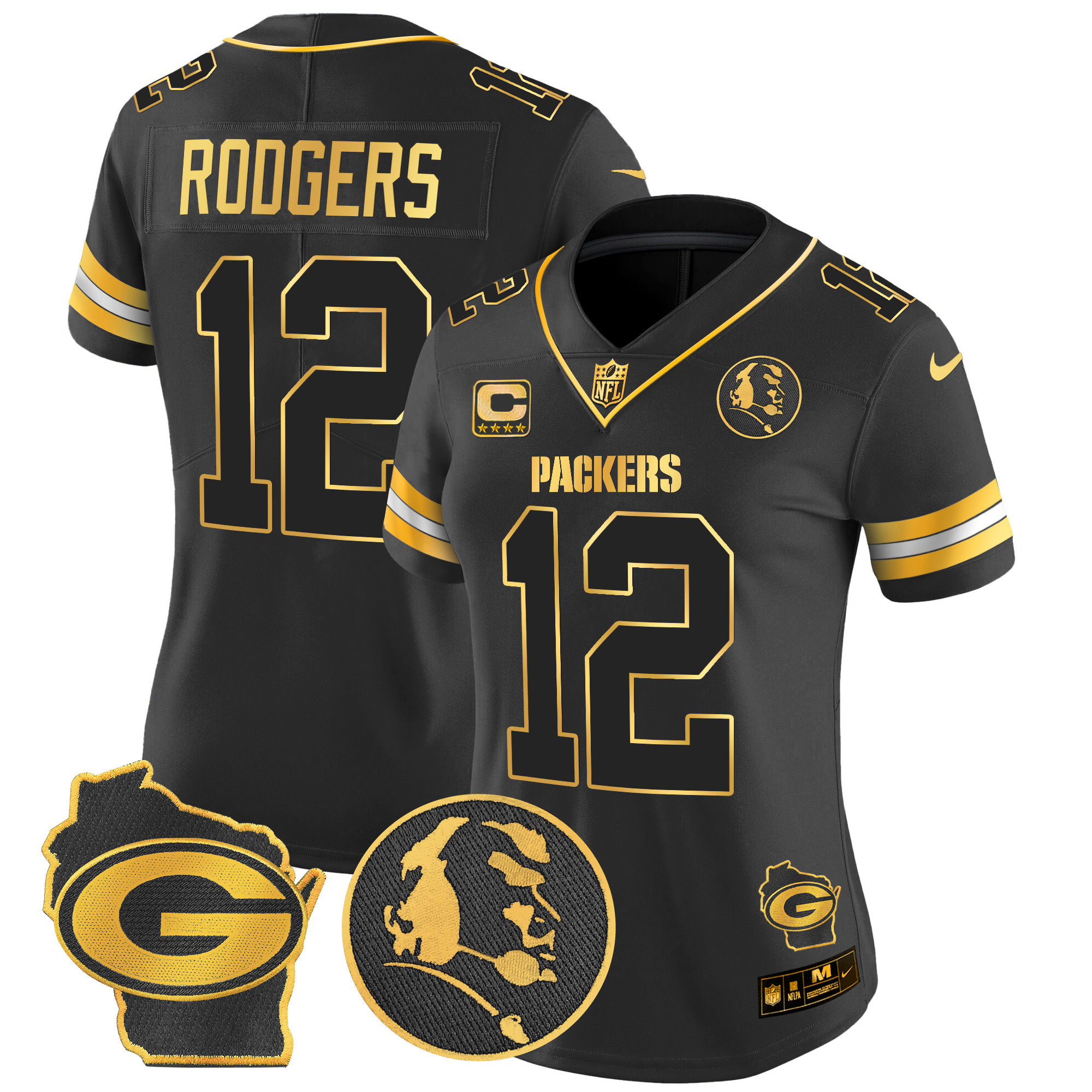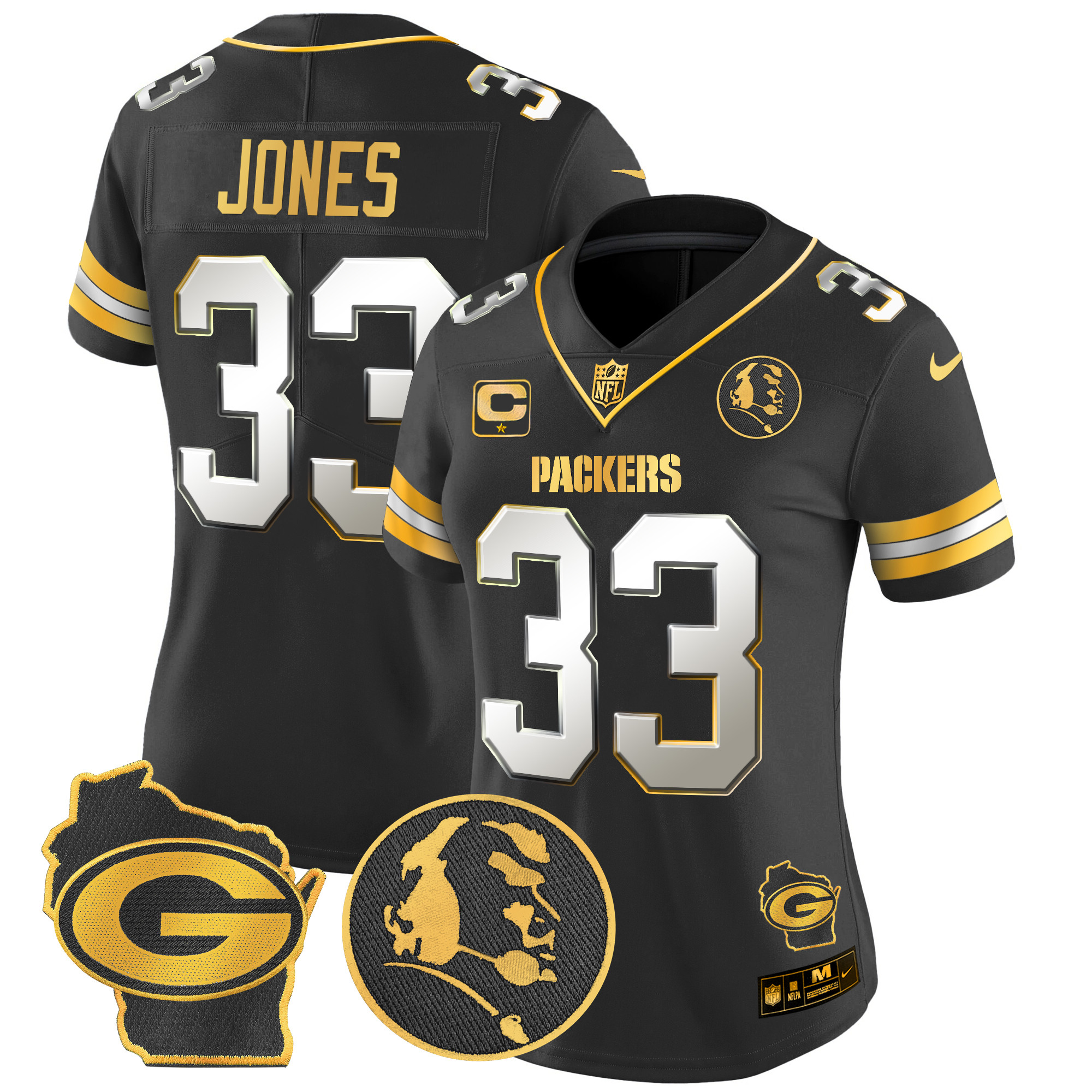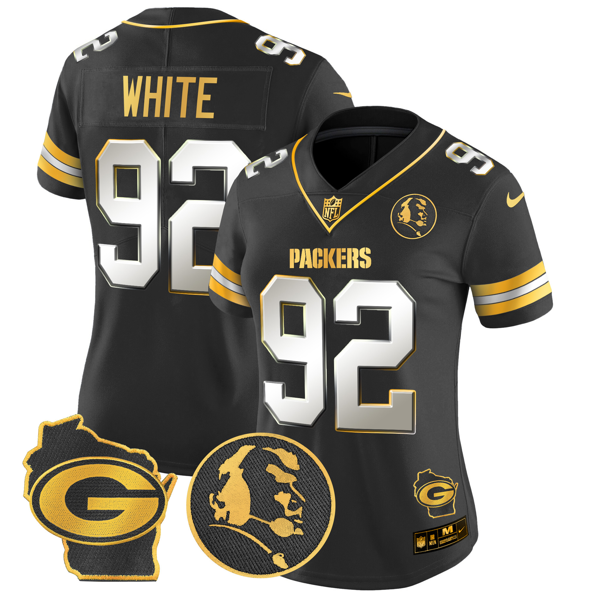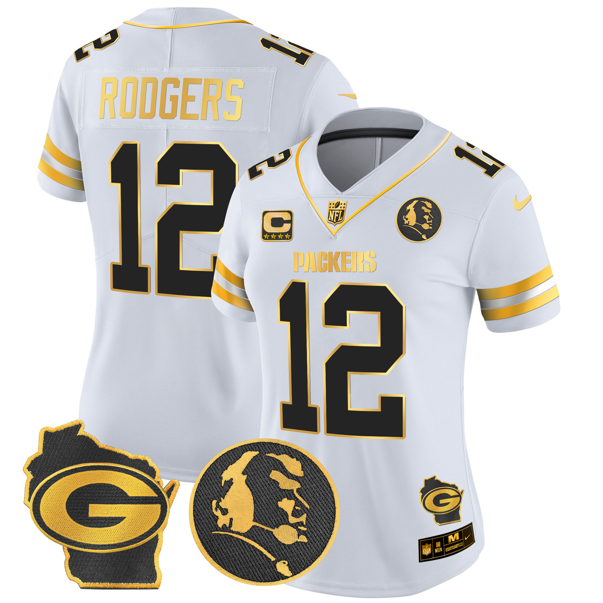 Women’s Packers John Madden & Home Patch Gold Vapor Limited Jersey – All Stitched
