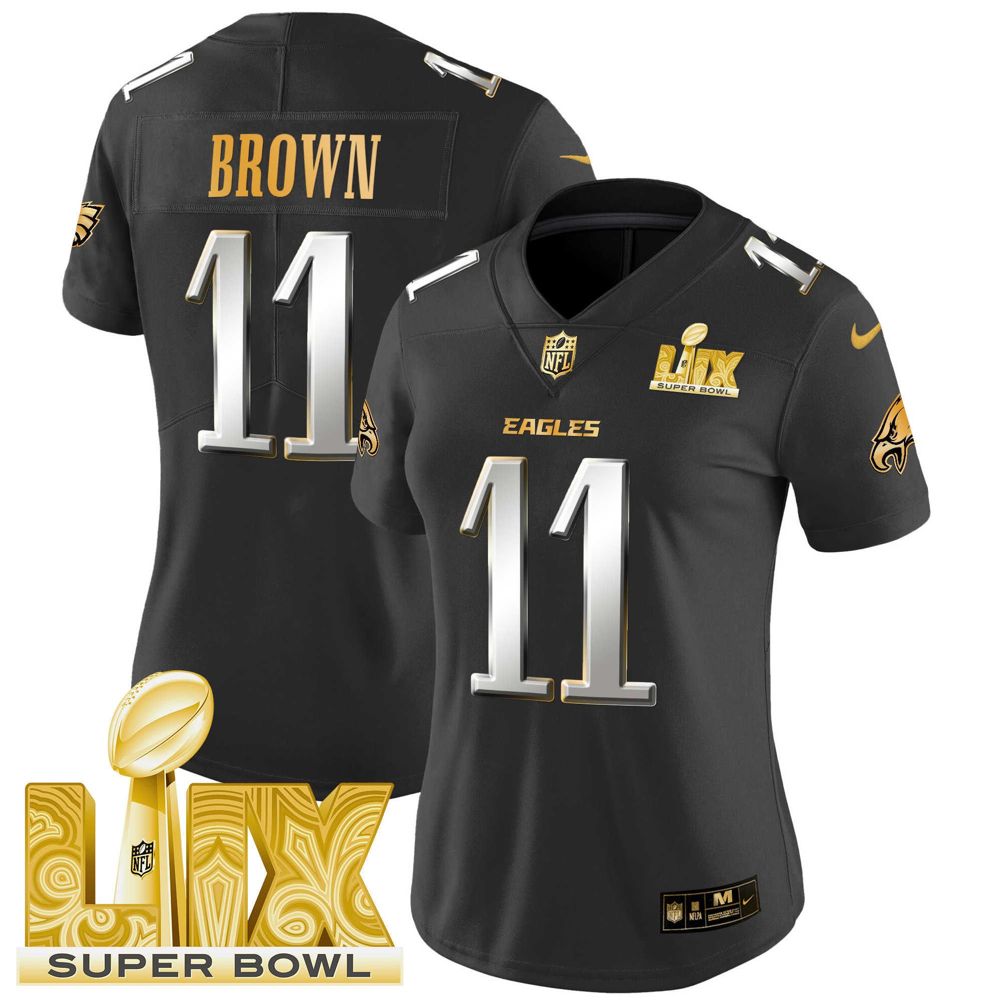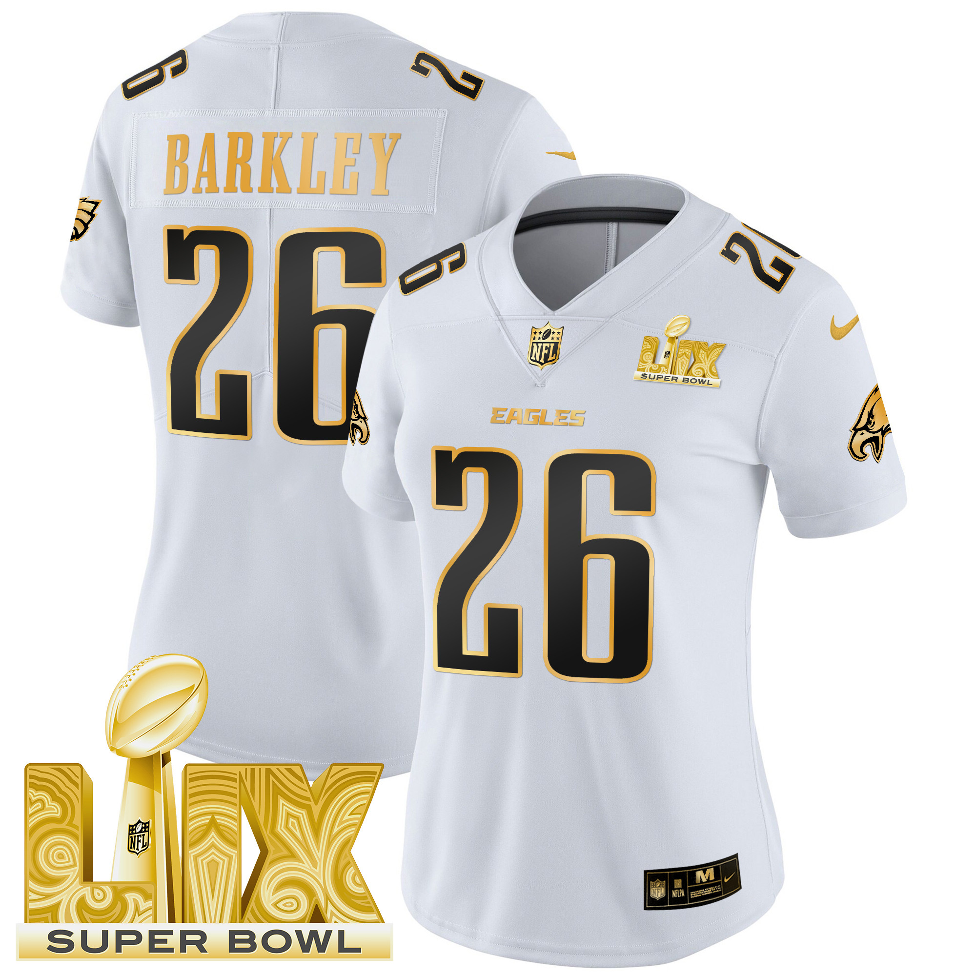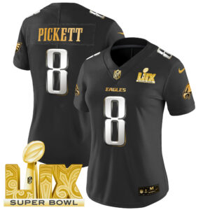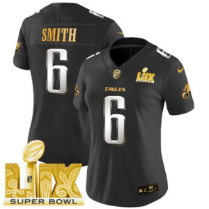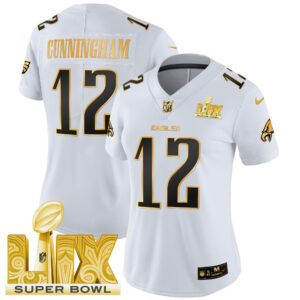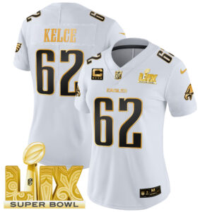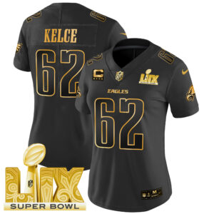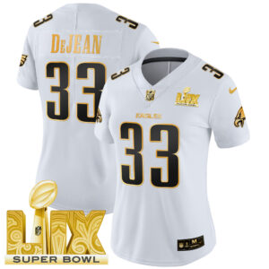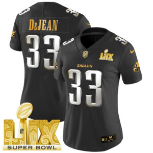 Women’s Philadelphia Eagles Super Bowl LIX Patch Gold Vapor Limited Jersey – All Stitched