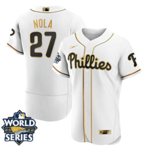 Women’s Philadelphia Phillies Gold 2022 World Series Jersey – All Stitched