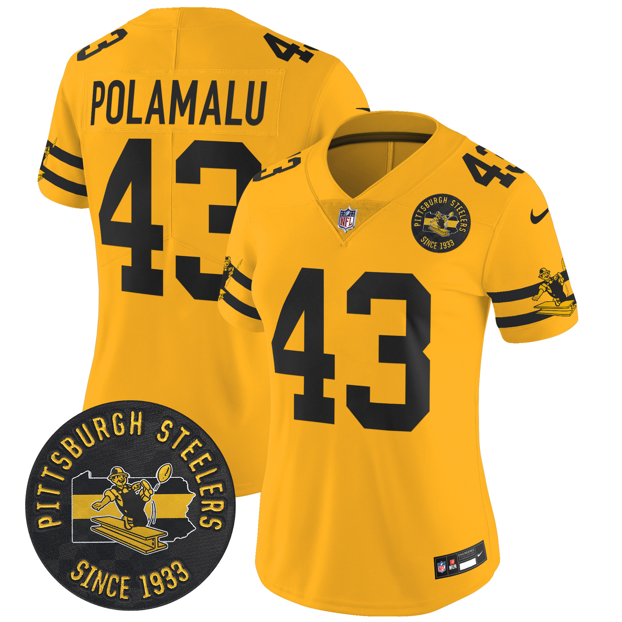 Women’s Pittsburgh Steelers Throwback 1933 Patch Vapor Limited Jersey – All Stitched