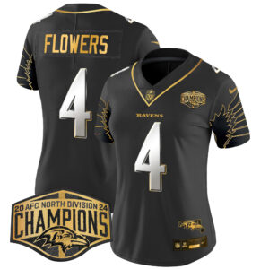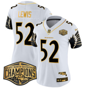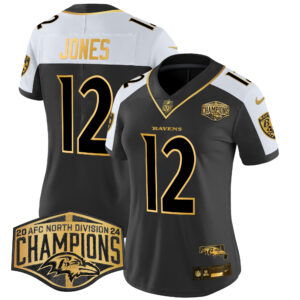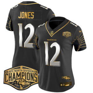 Women’s Ravens Maryland 2024 AFC North Division Champions Patch Gold Vapor Limited Jersey – All Stitched