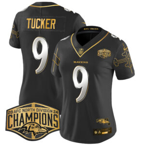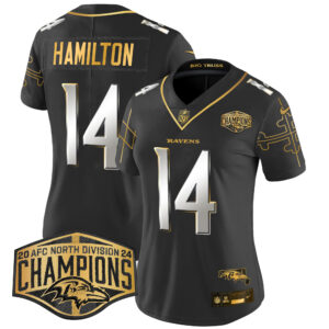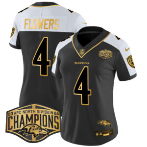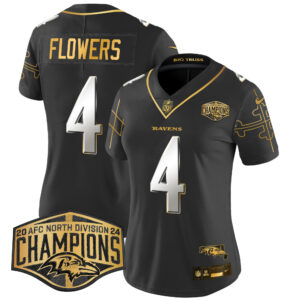Women’s Ravens Maryland Flag Map 2024 AFC North Division Champions Patch Gold Vapor Limited Jersey – All Stitched