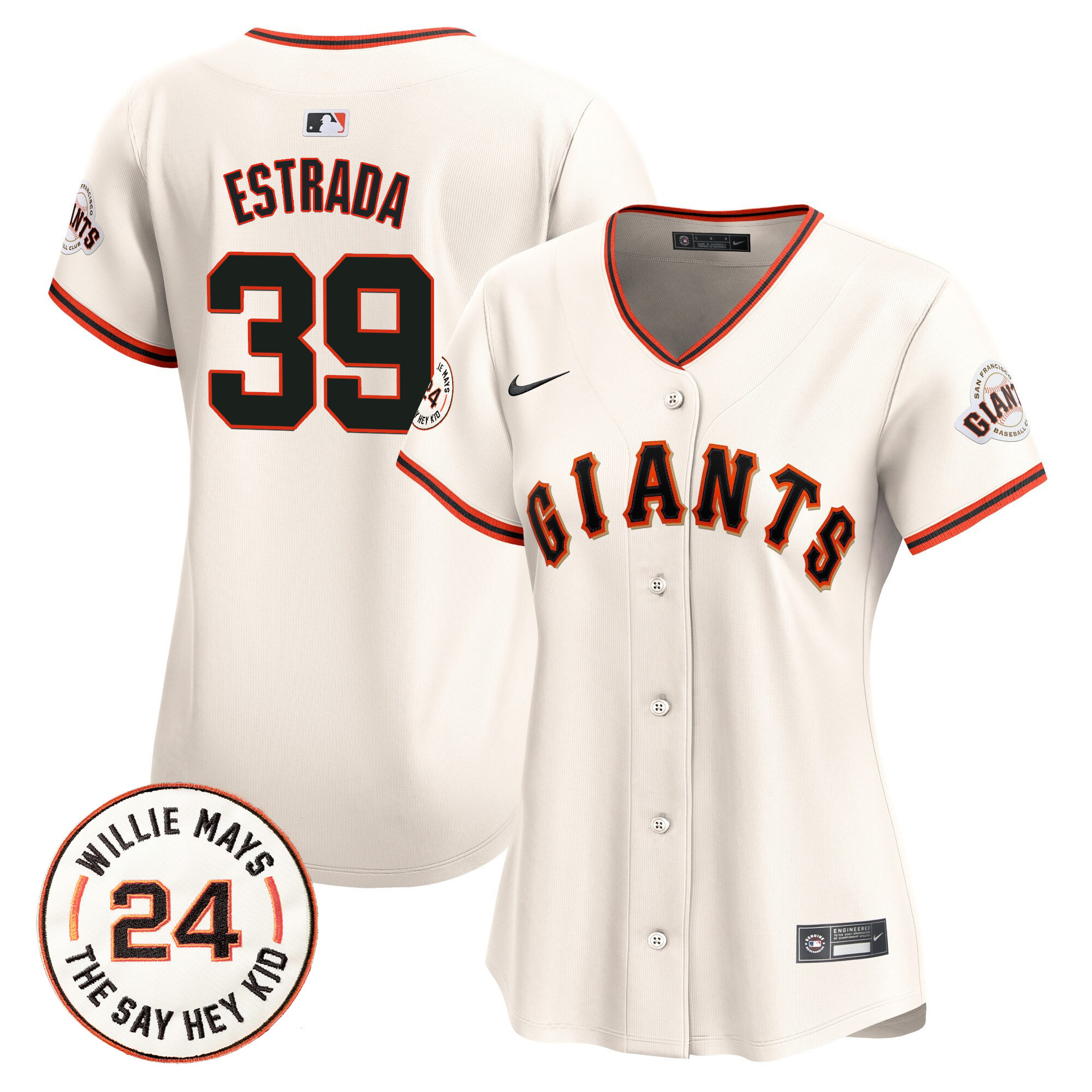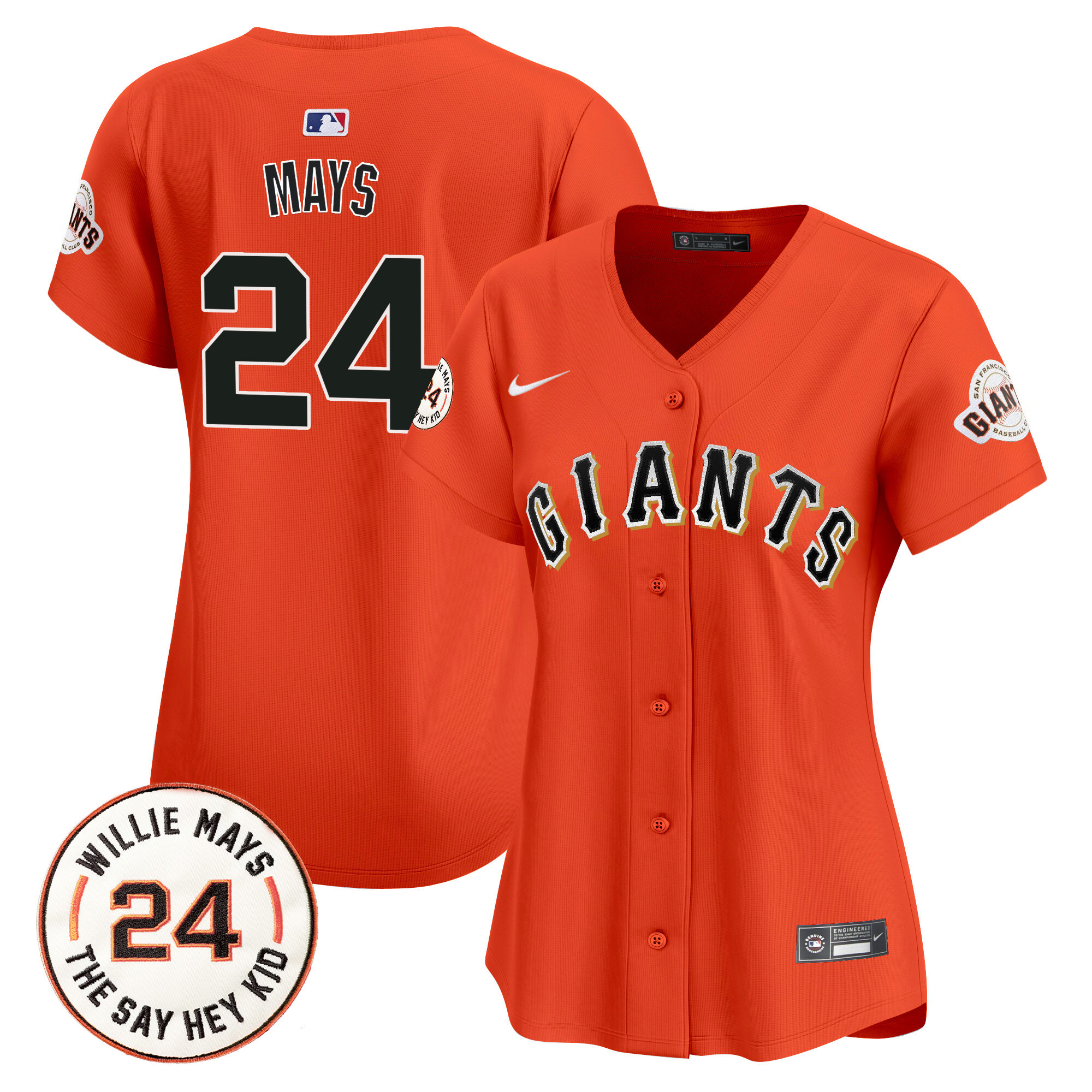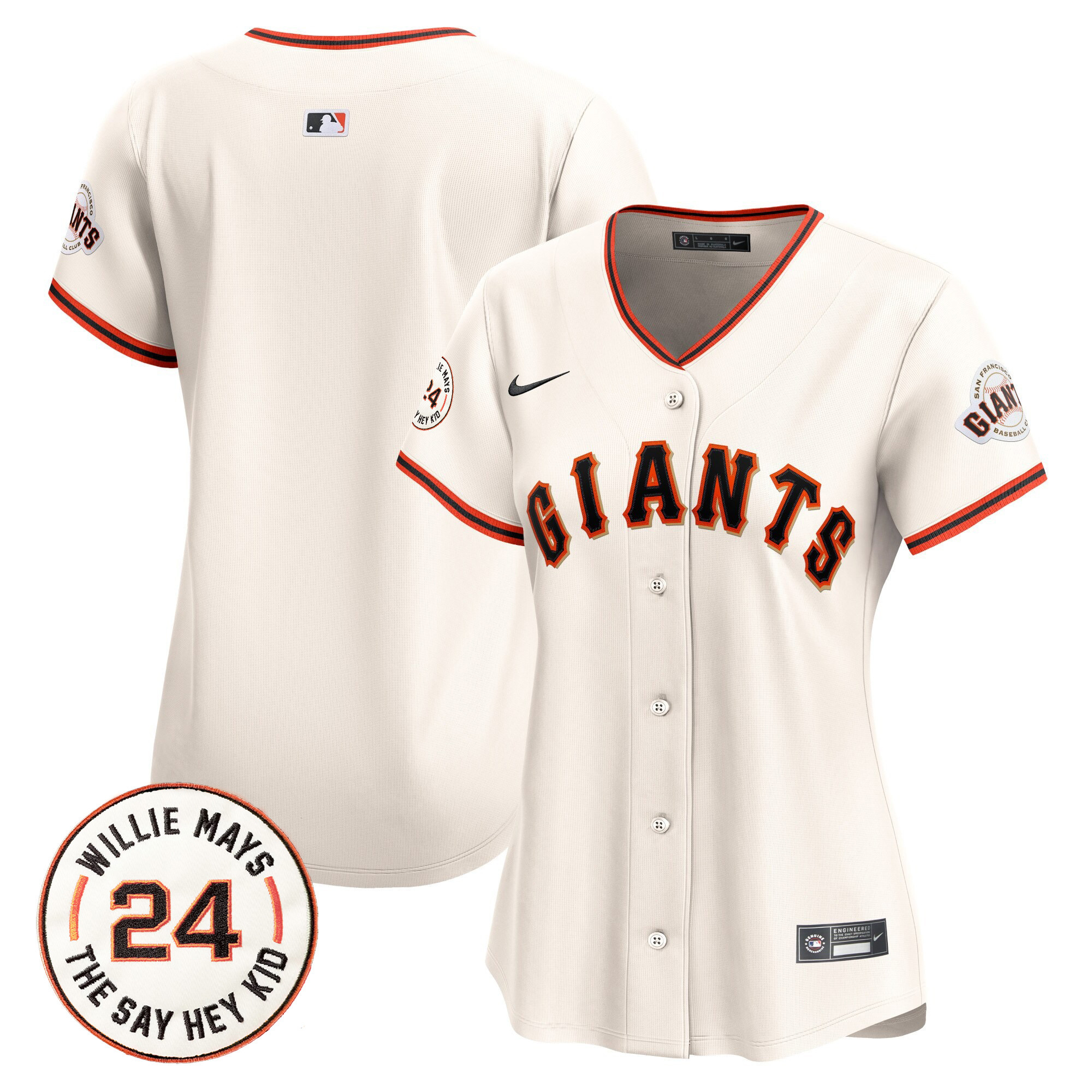 Women’s San Francisco Giants 2024 Willie Mays Patch Vapor Premier Limited Jersey – All Stitched