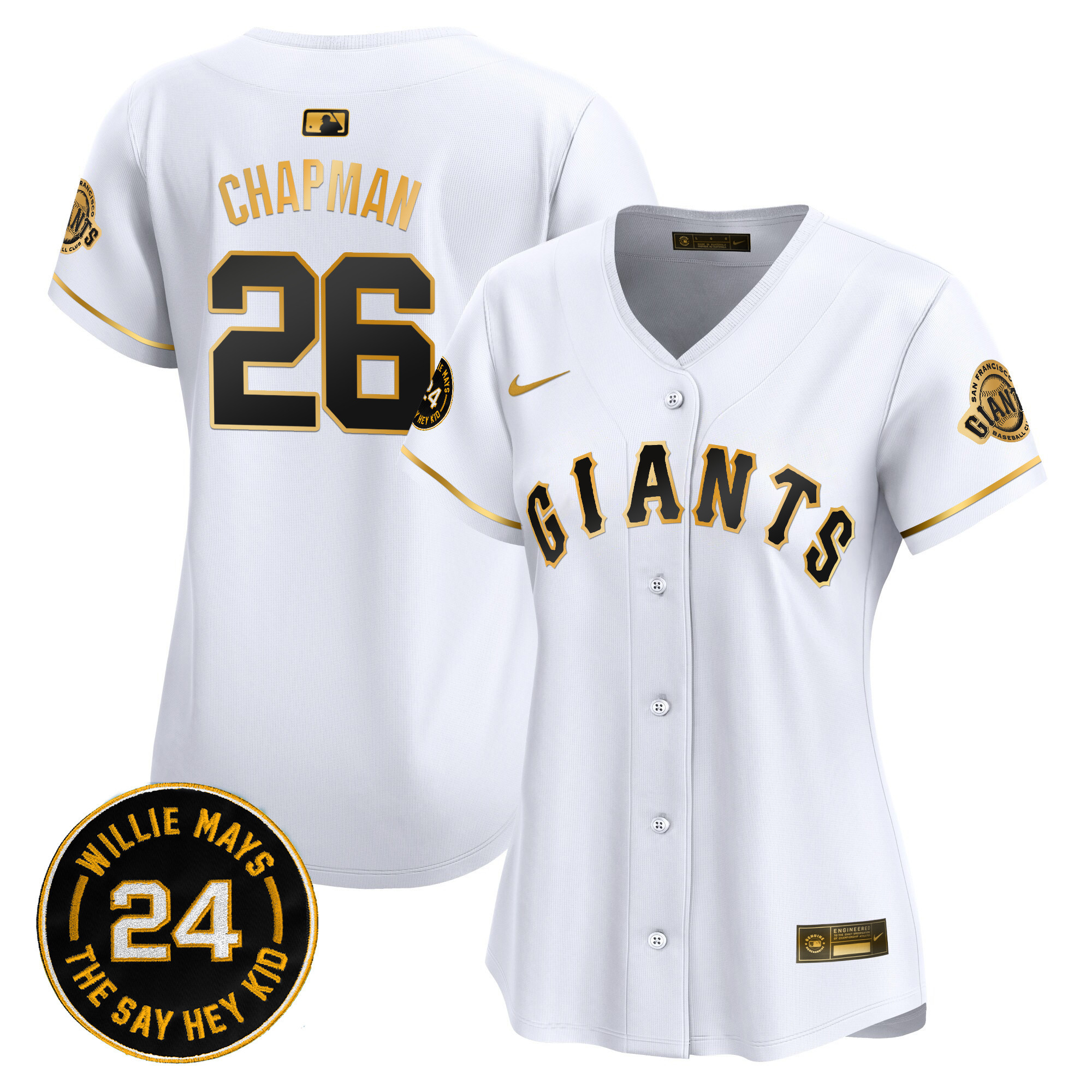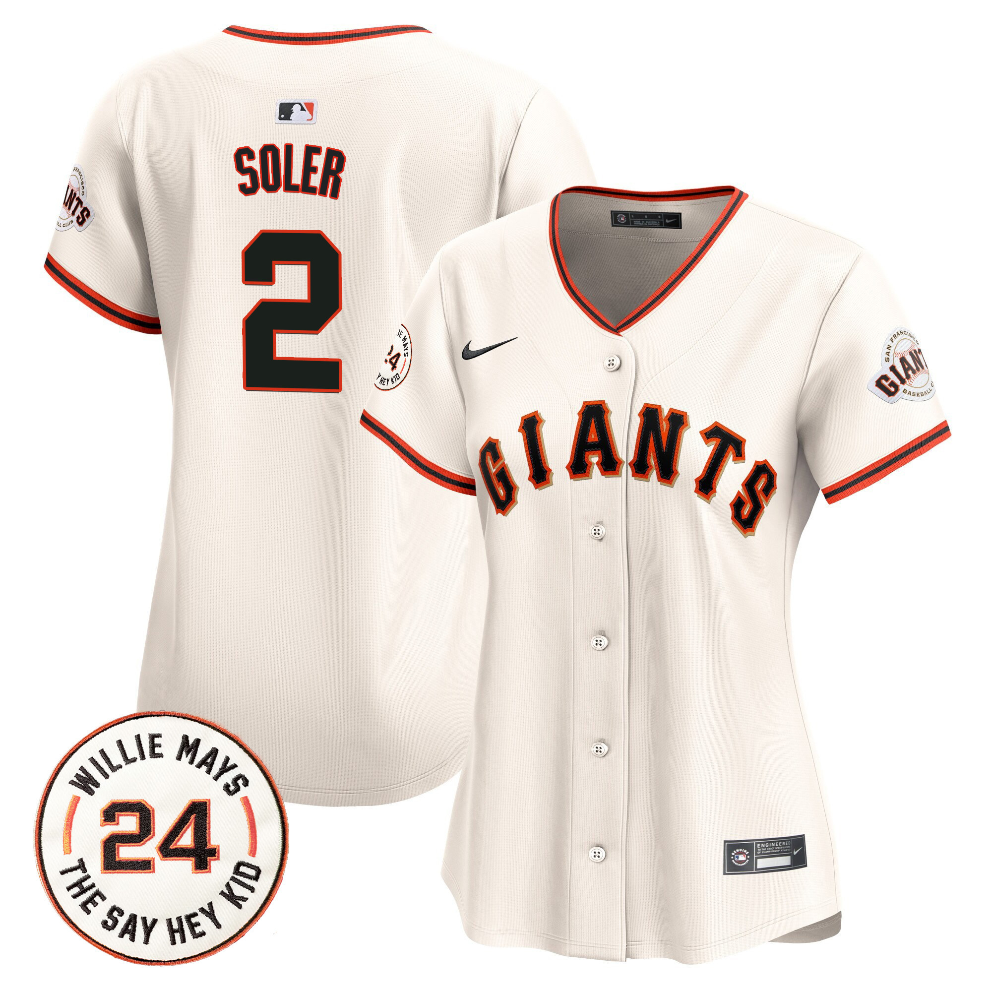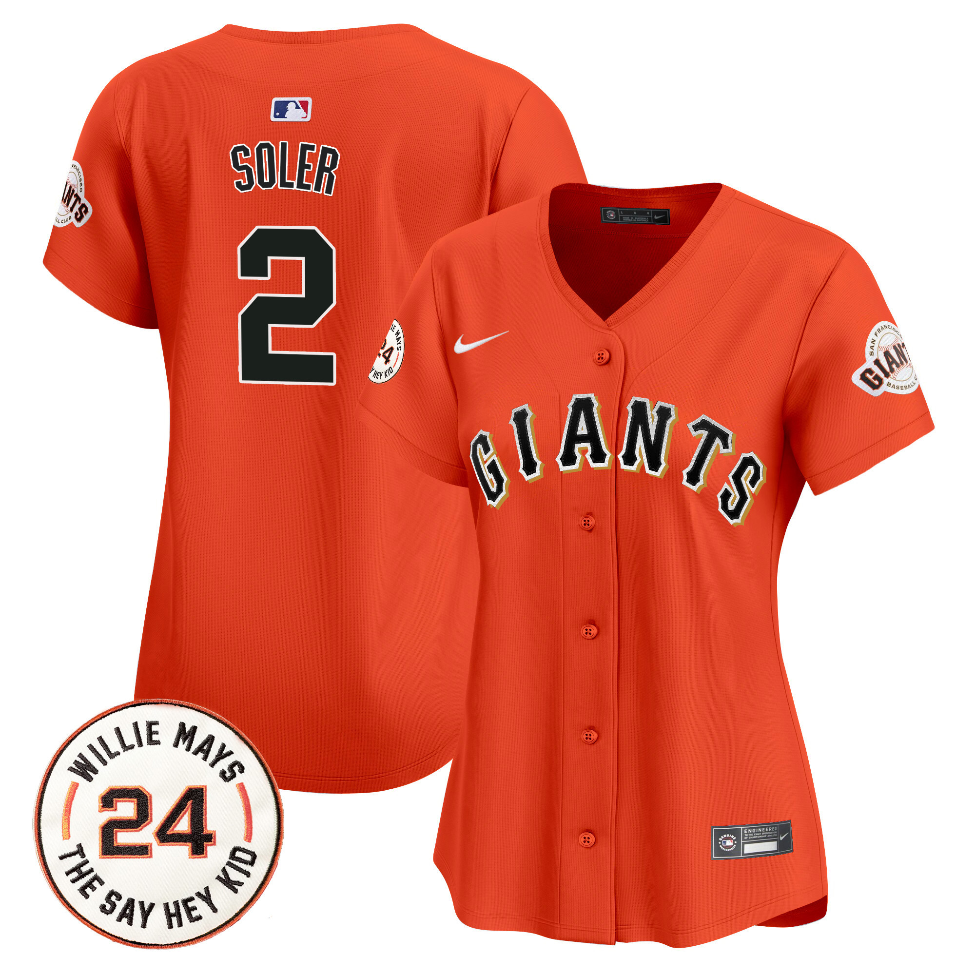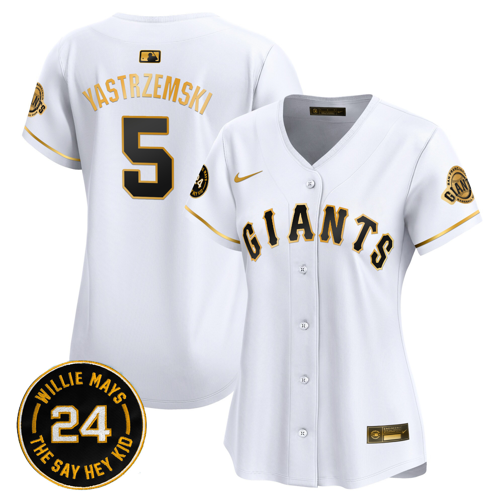 Women’s San Francisco Giants 2024 Willie Mays Patch Vapor Premier Limited Jersey – All Stitched