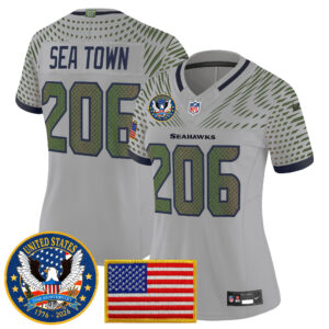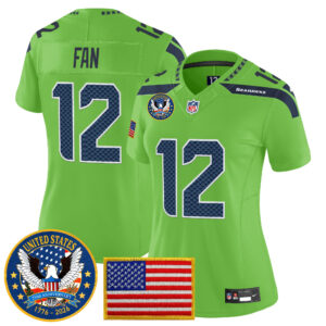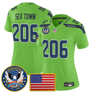 Women’s Seattle Seahawks “United States 250th Anniversary Patch” Vapor Limited Jersey – All Stitched