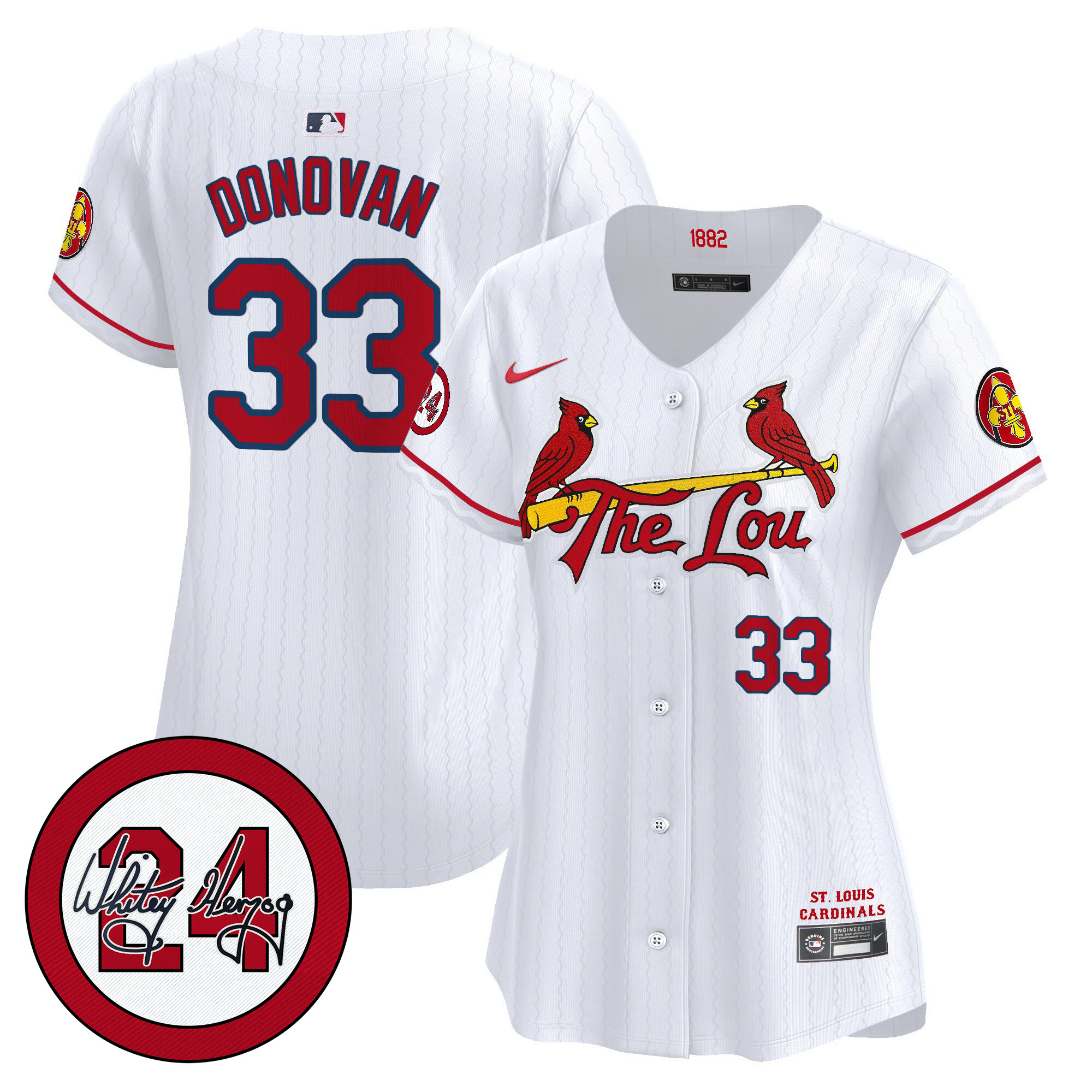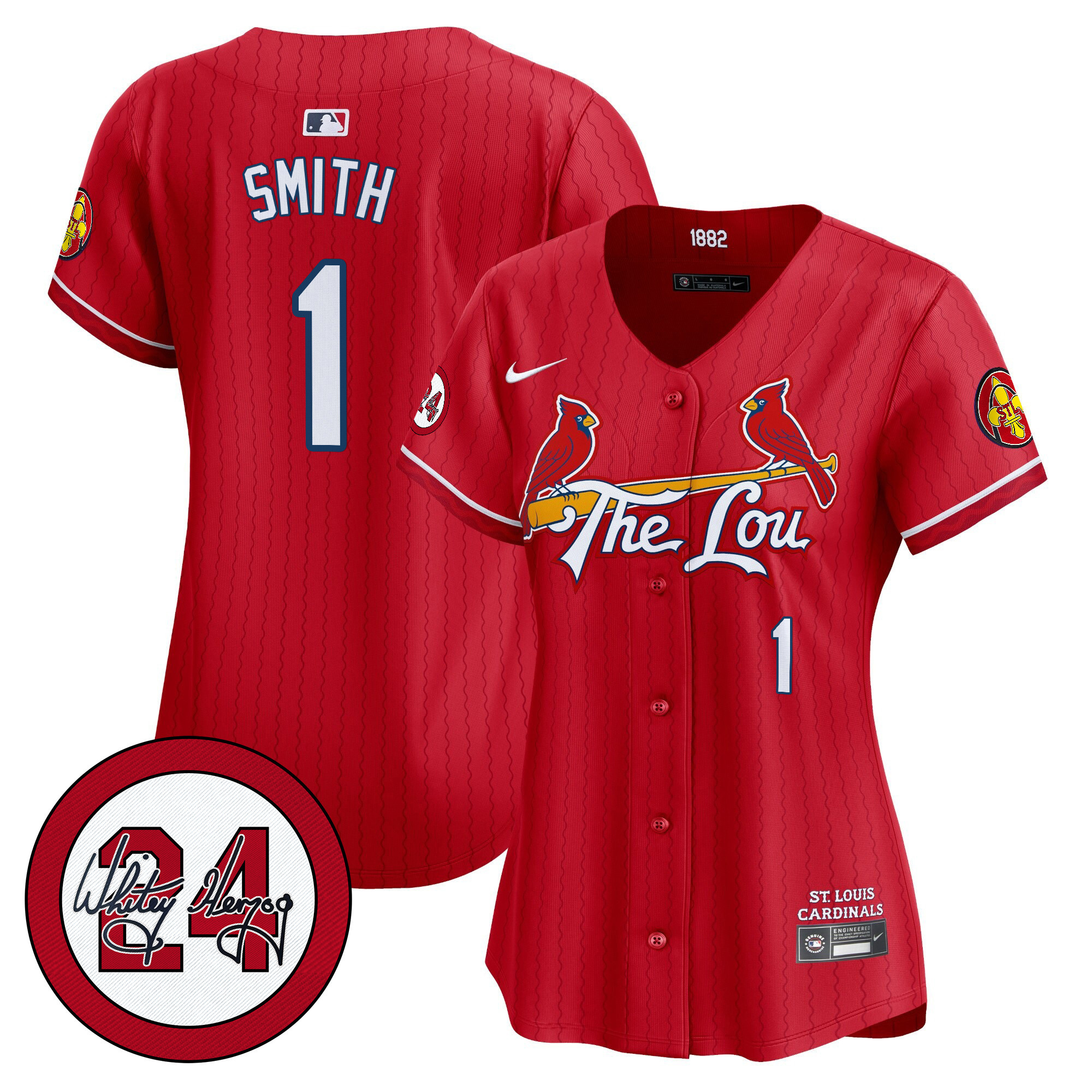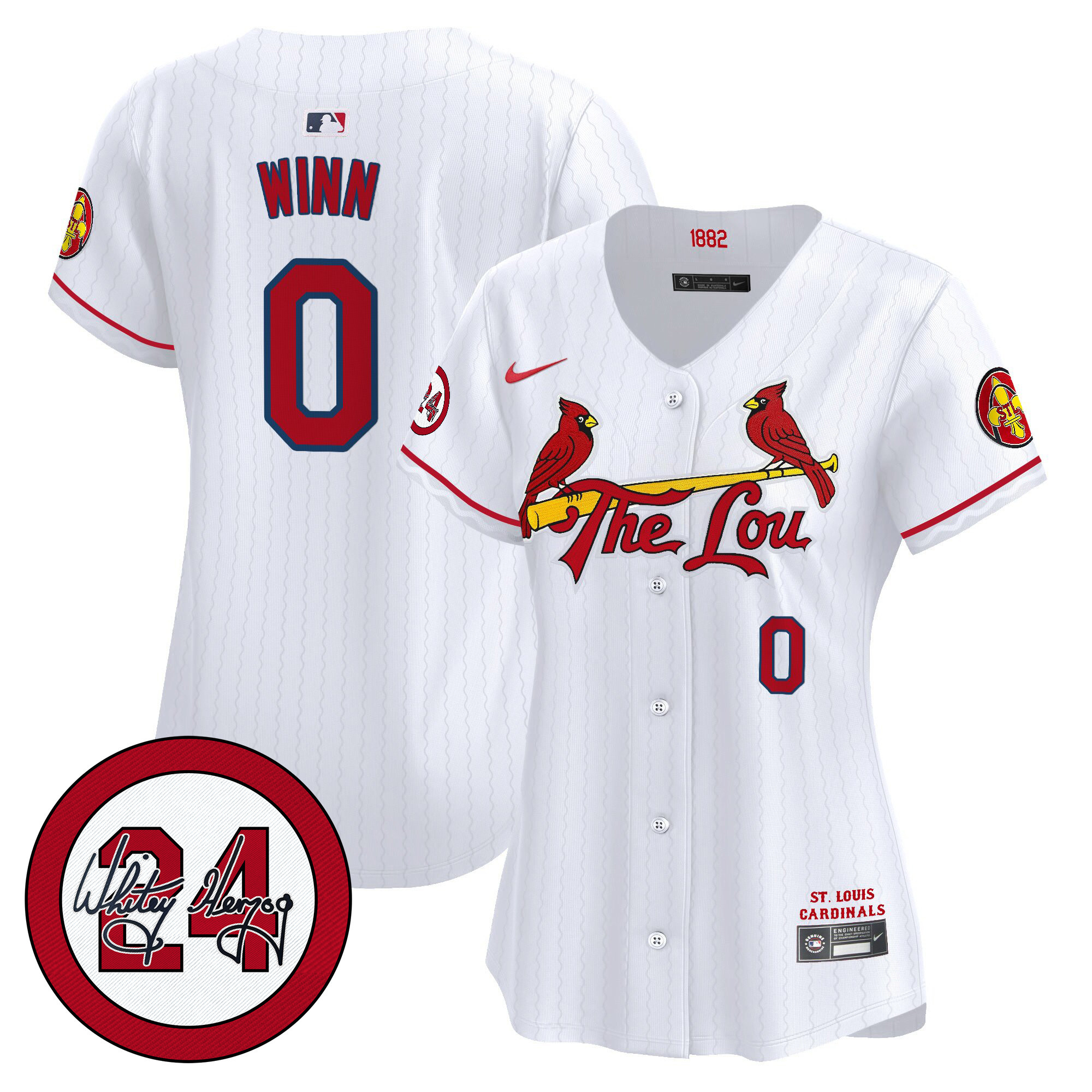 Women’s St. Louis Cardinals 2024 City Connect Whitey Herzog Patch Vapor Premier Limited Jersey – All Stitched