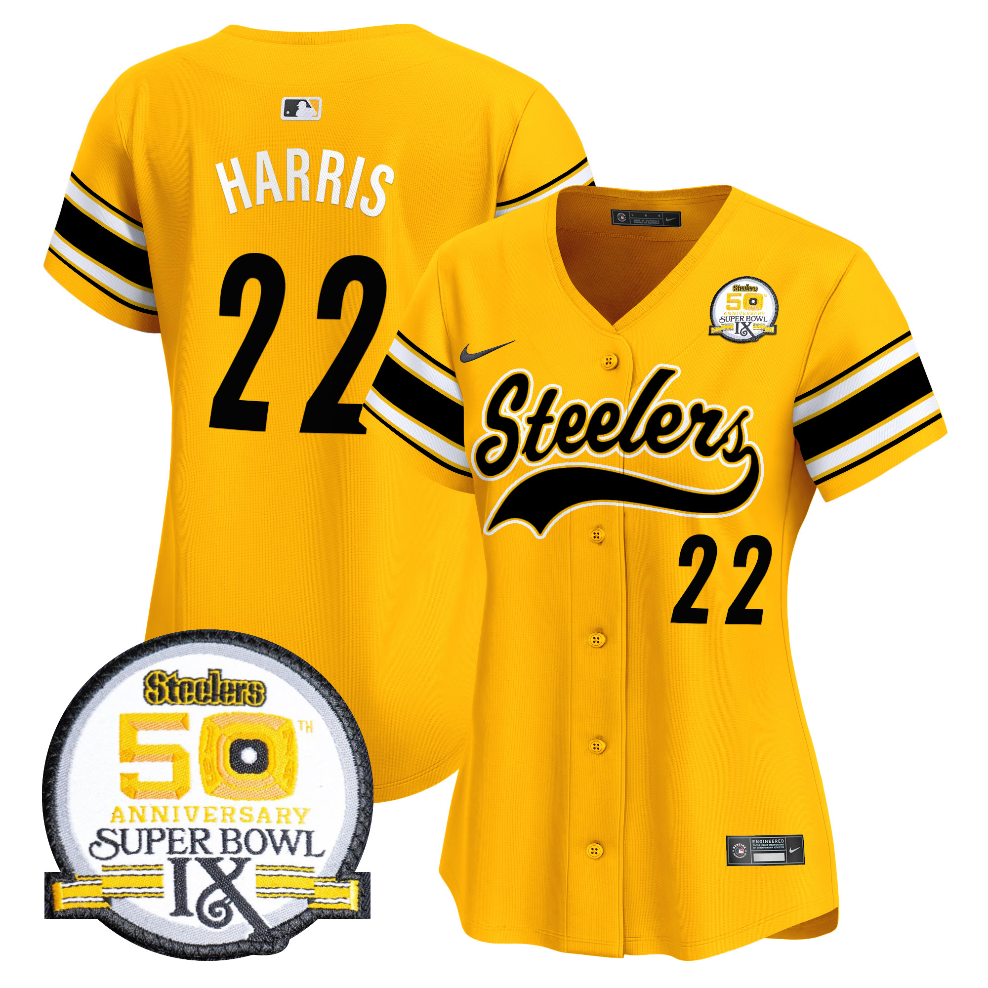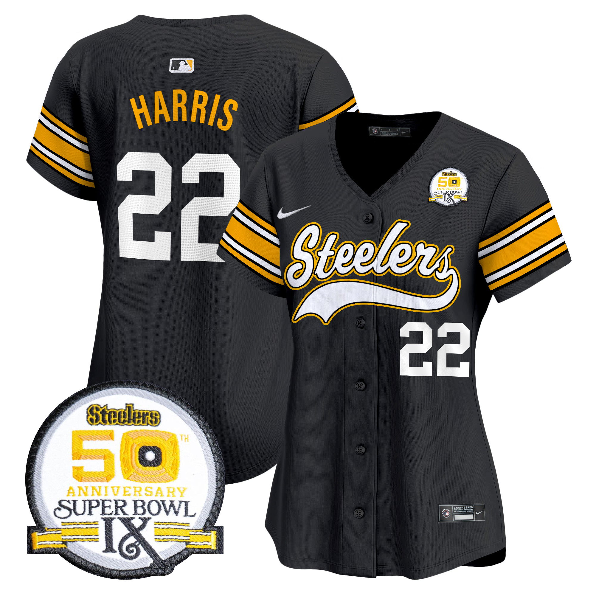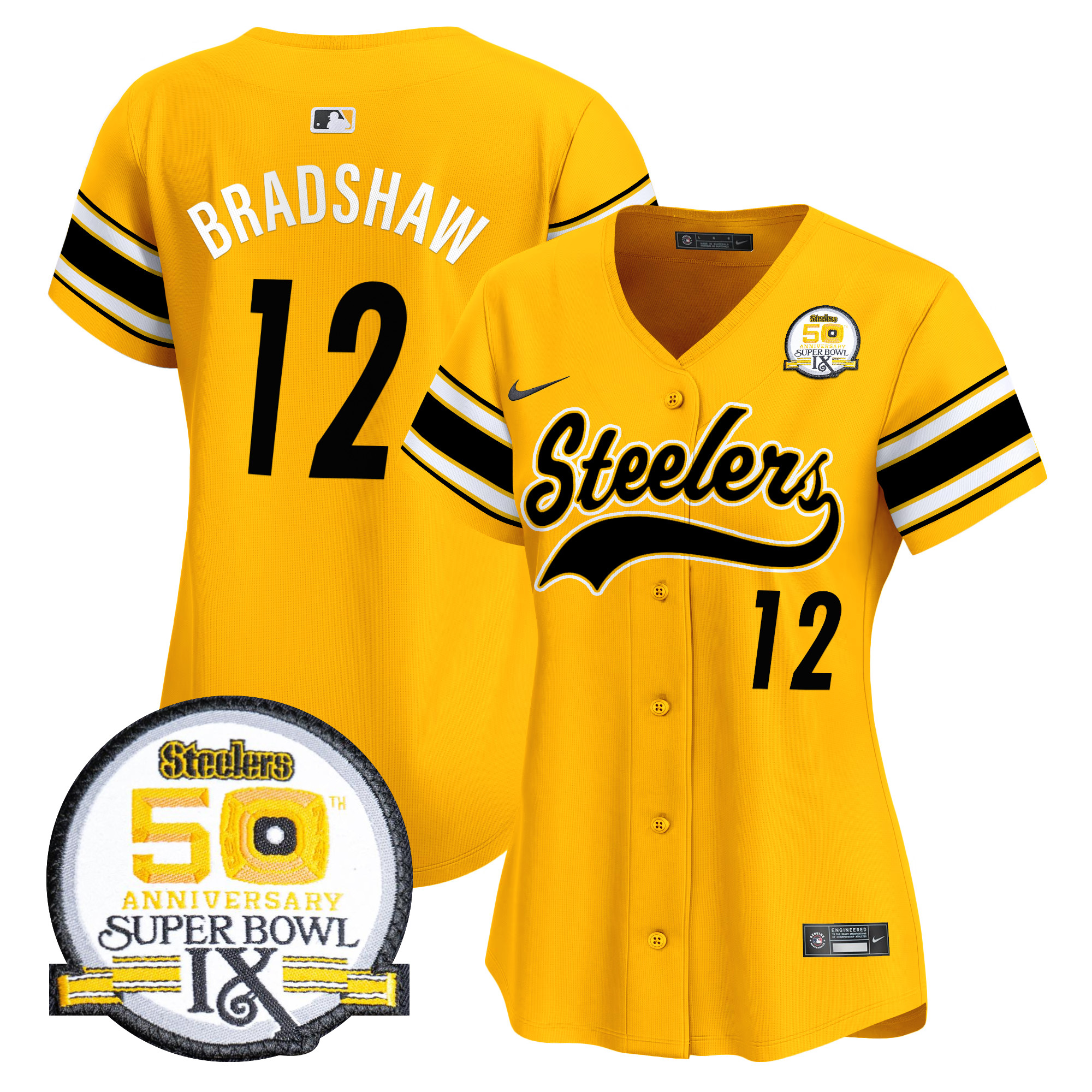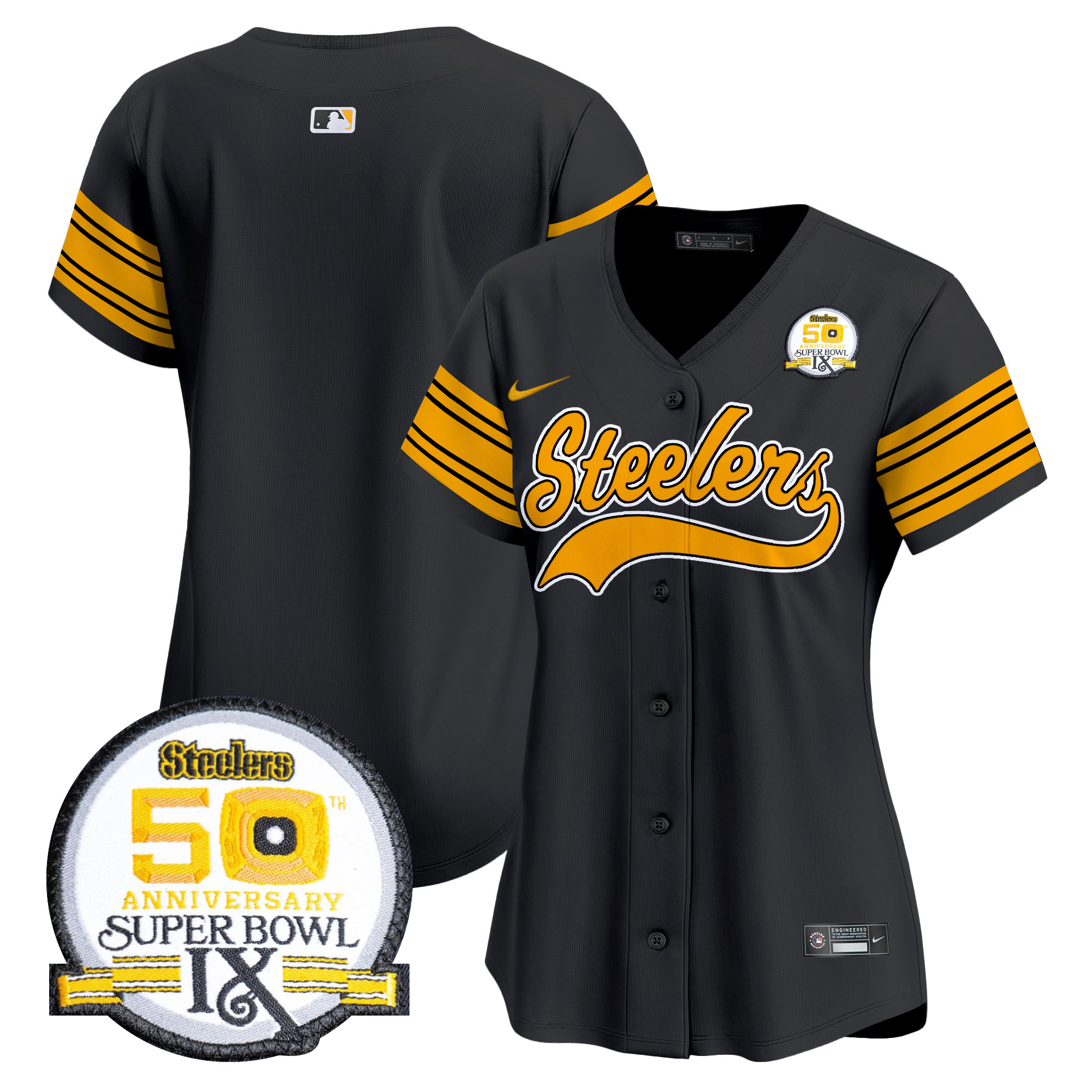 Women’s Steelers 50th Anniversary Of Super Bowl IX Patch Vapor Premier Baseball Jersey – All Stitched