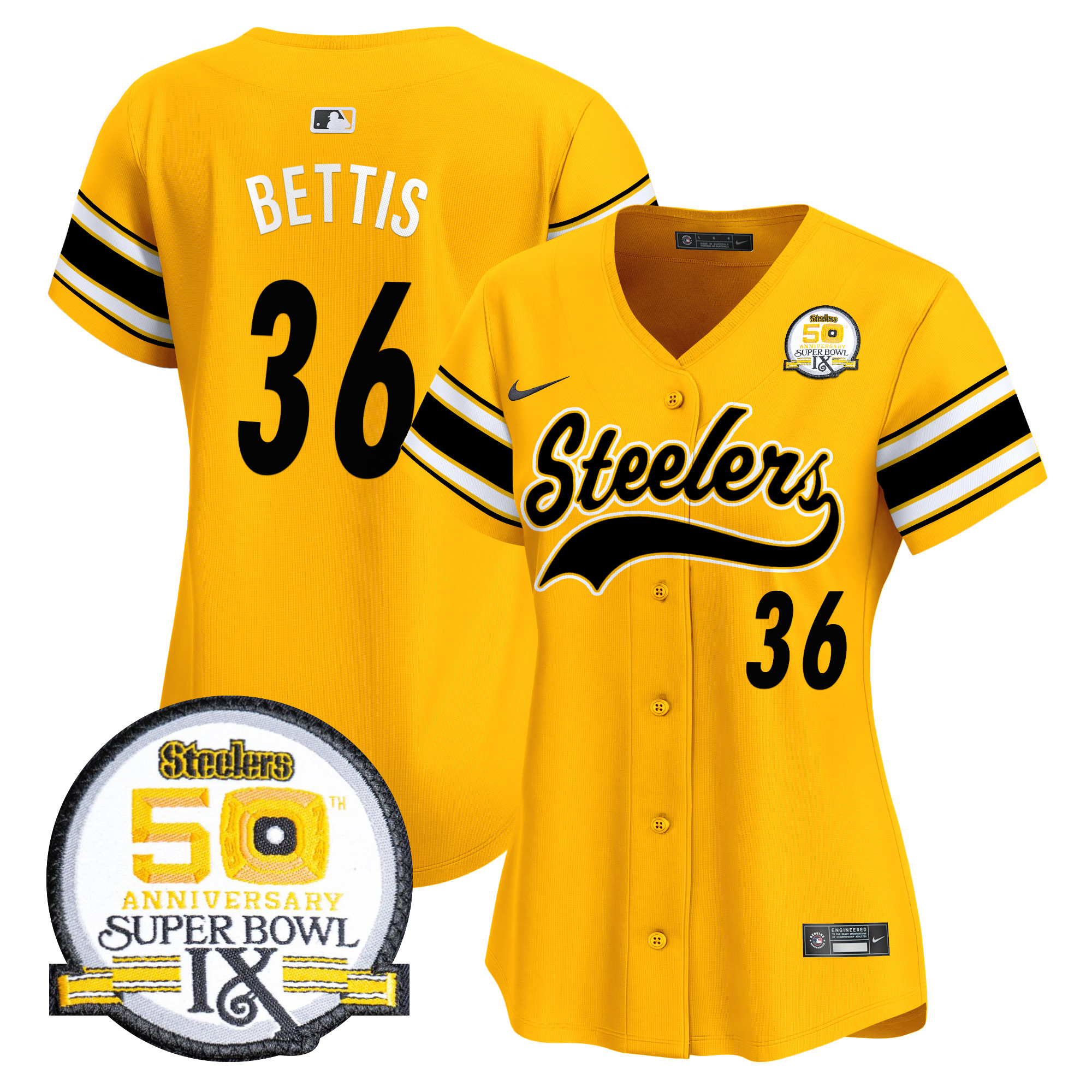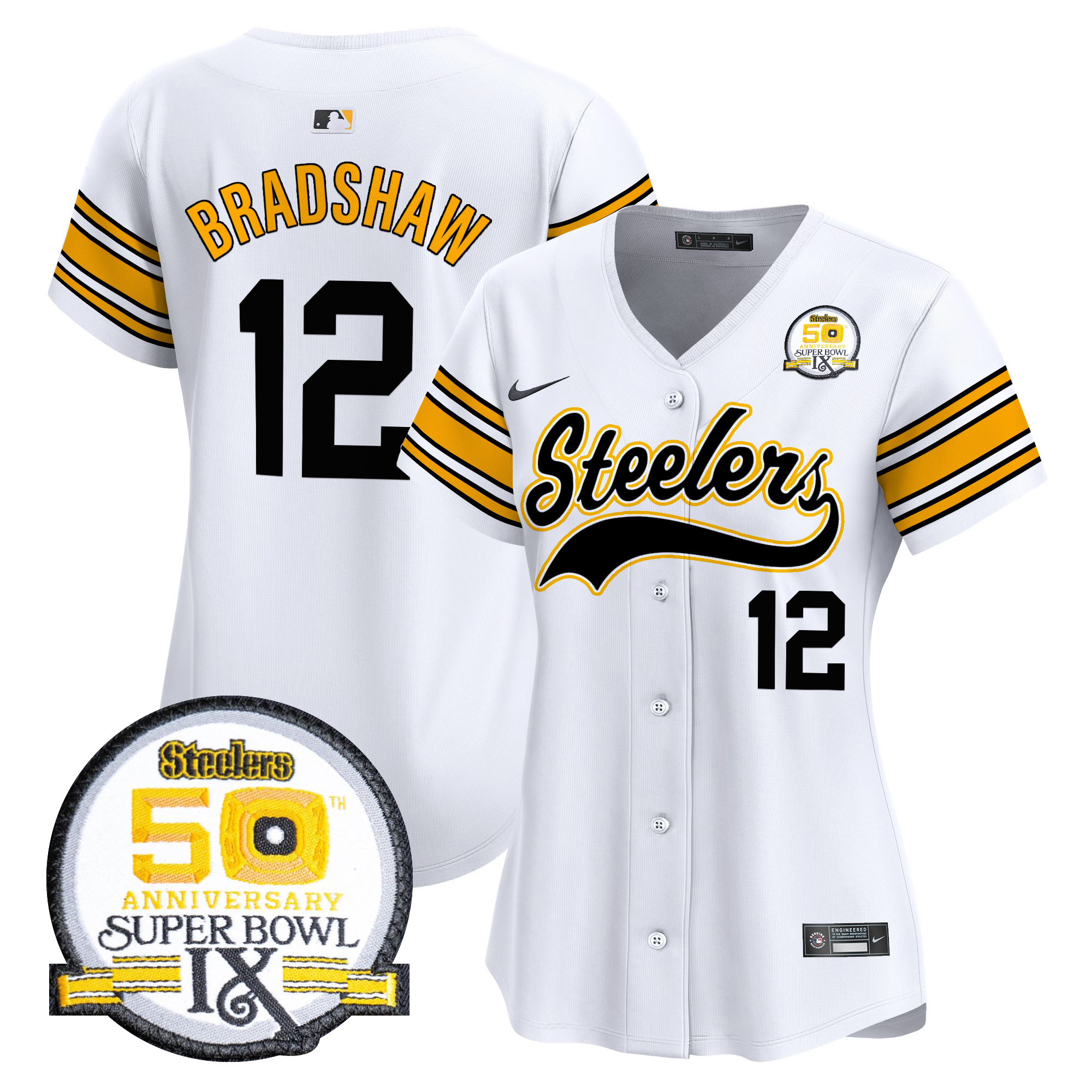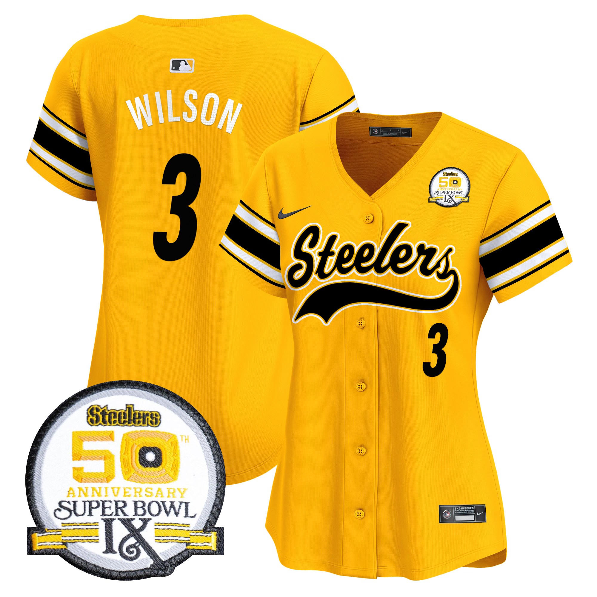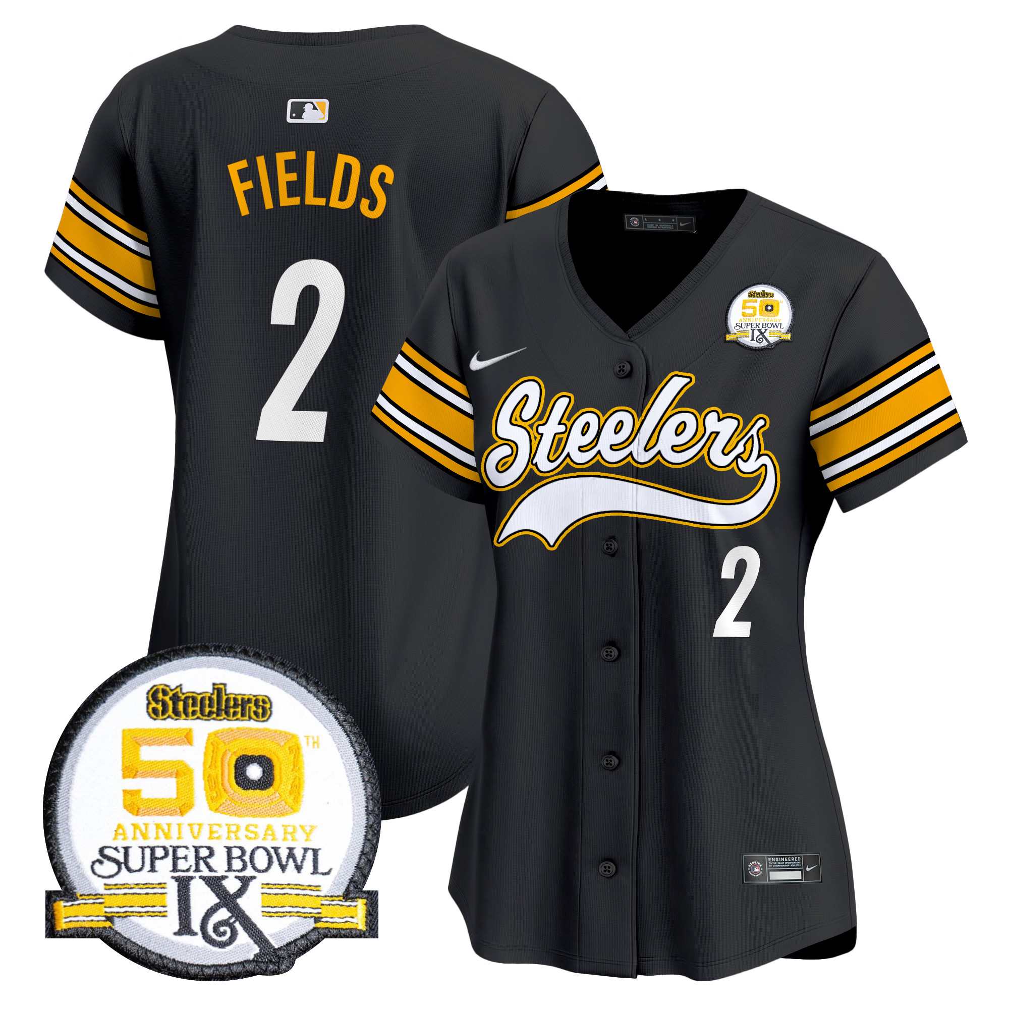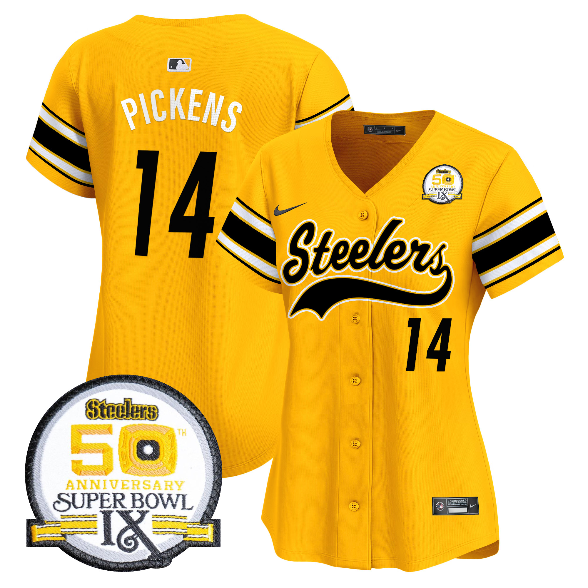 Women’s Steelers 50th Anniversary Of Super Bowl IX Patch Vapor Premier Baseball Jersey – All Stitched