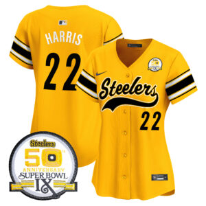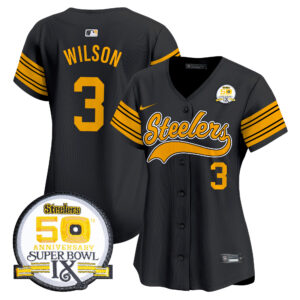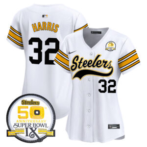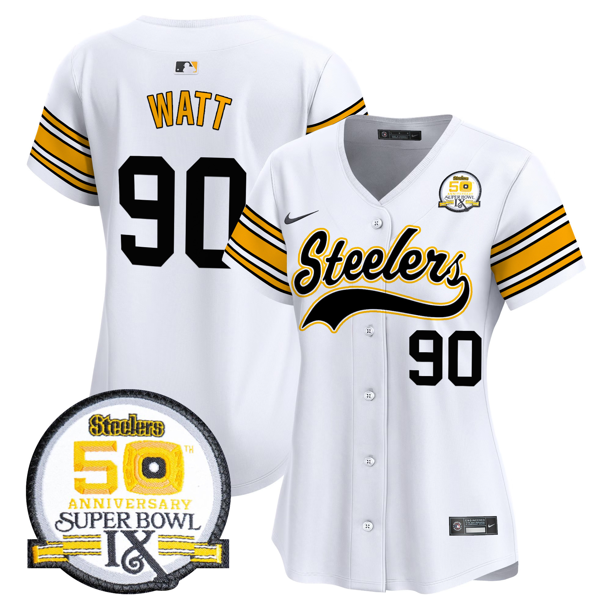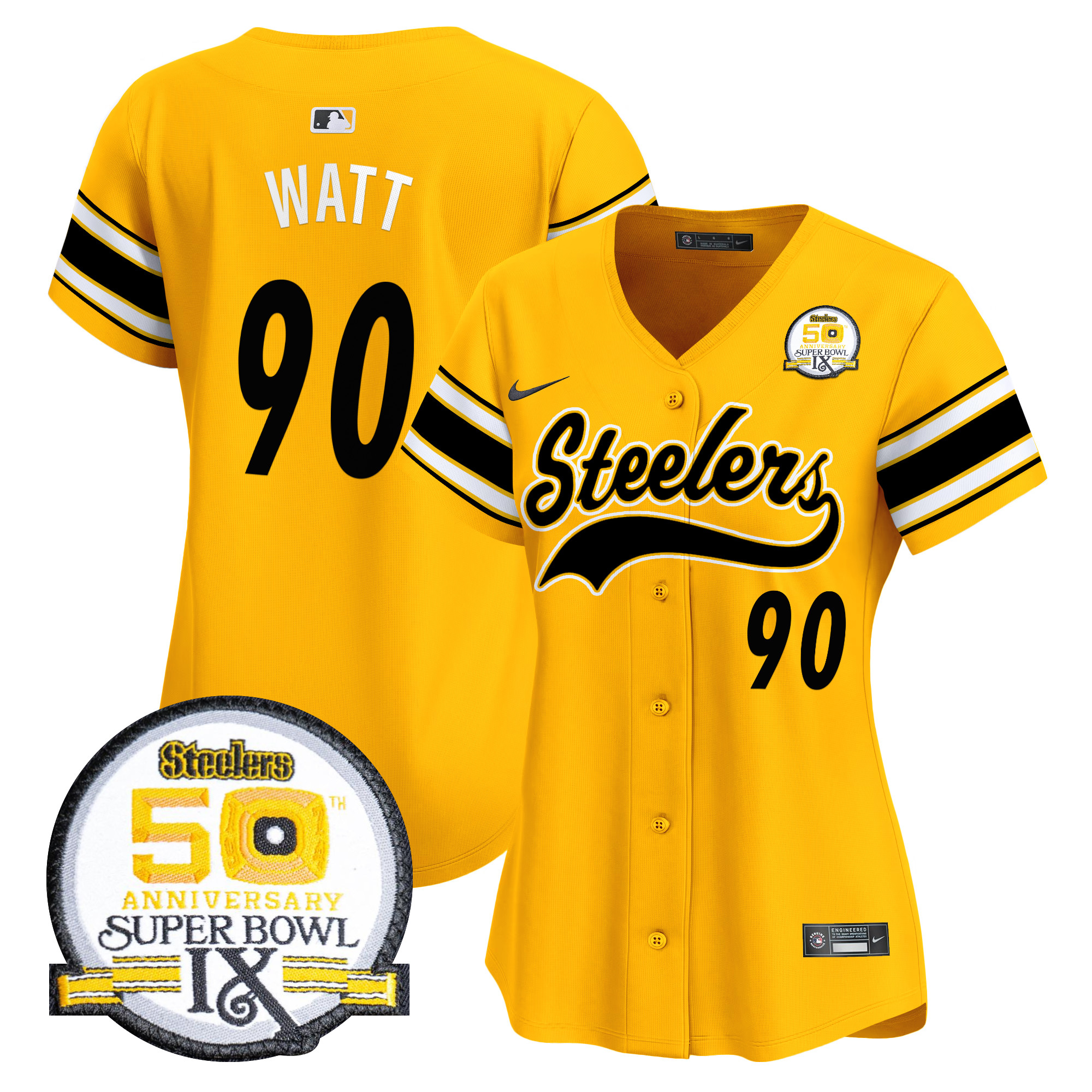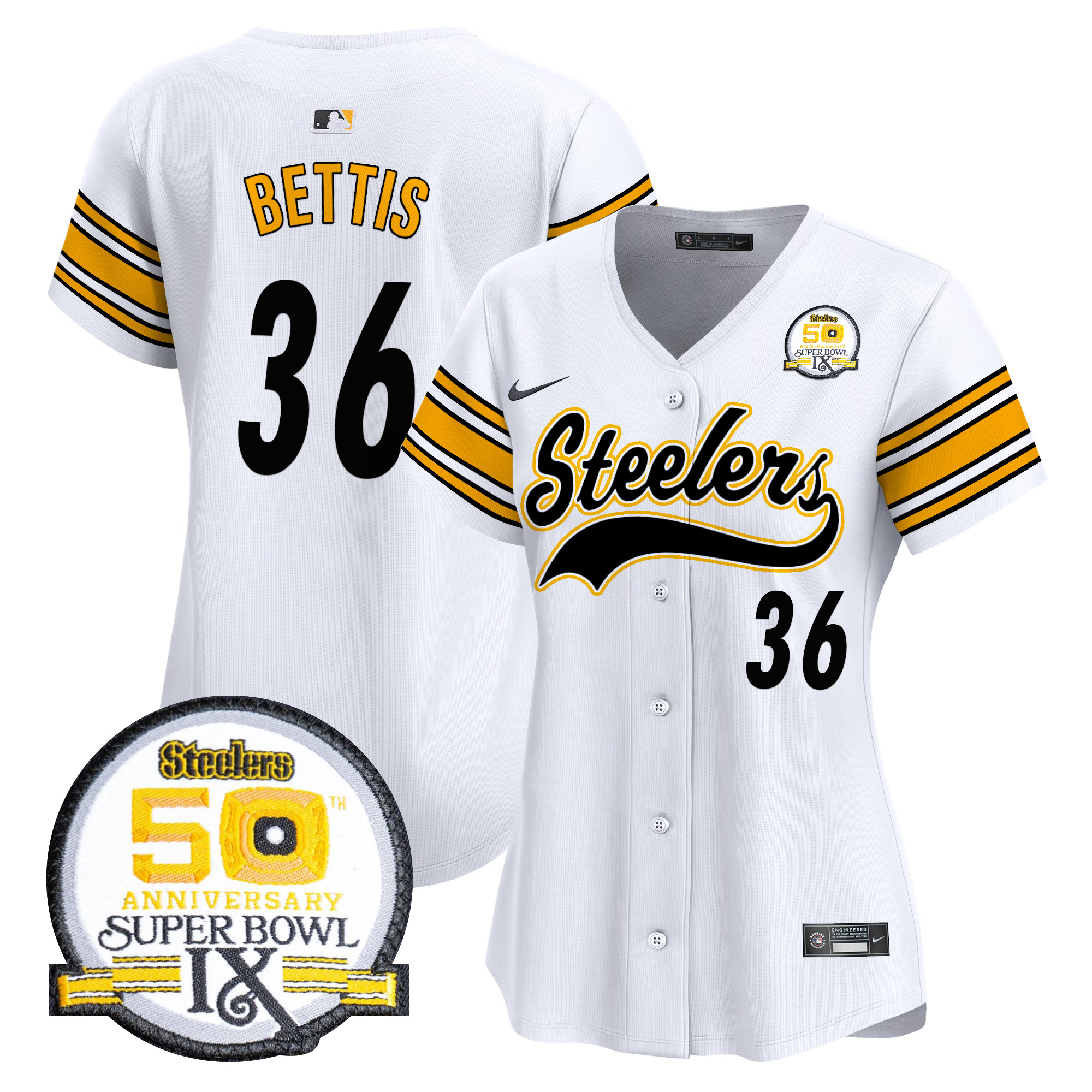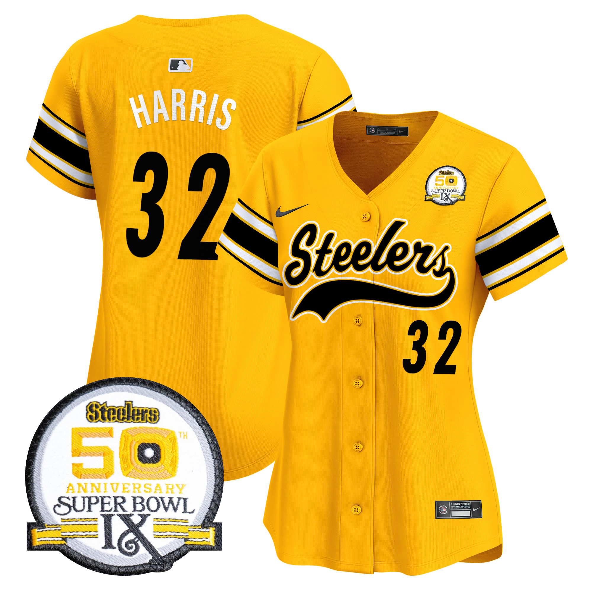 Women’s Steelers 50th Anniversary Of Super Bowl IX Patch Vapor Premier Baseball Jersey – All Stitched