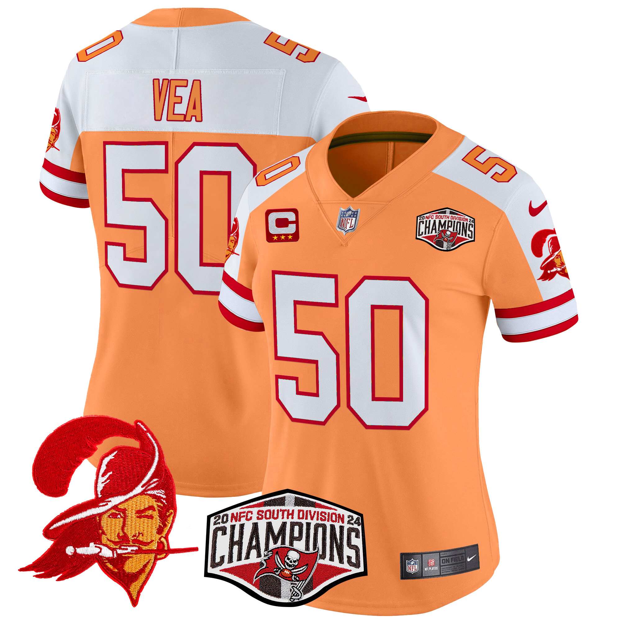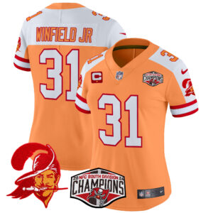 Women’s Tampa Bay Buccaneers Creamsicle 2024 NFC South Division Champions Patch Vapor Limited Jersey – All Stitched