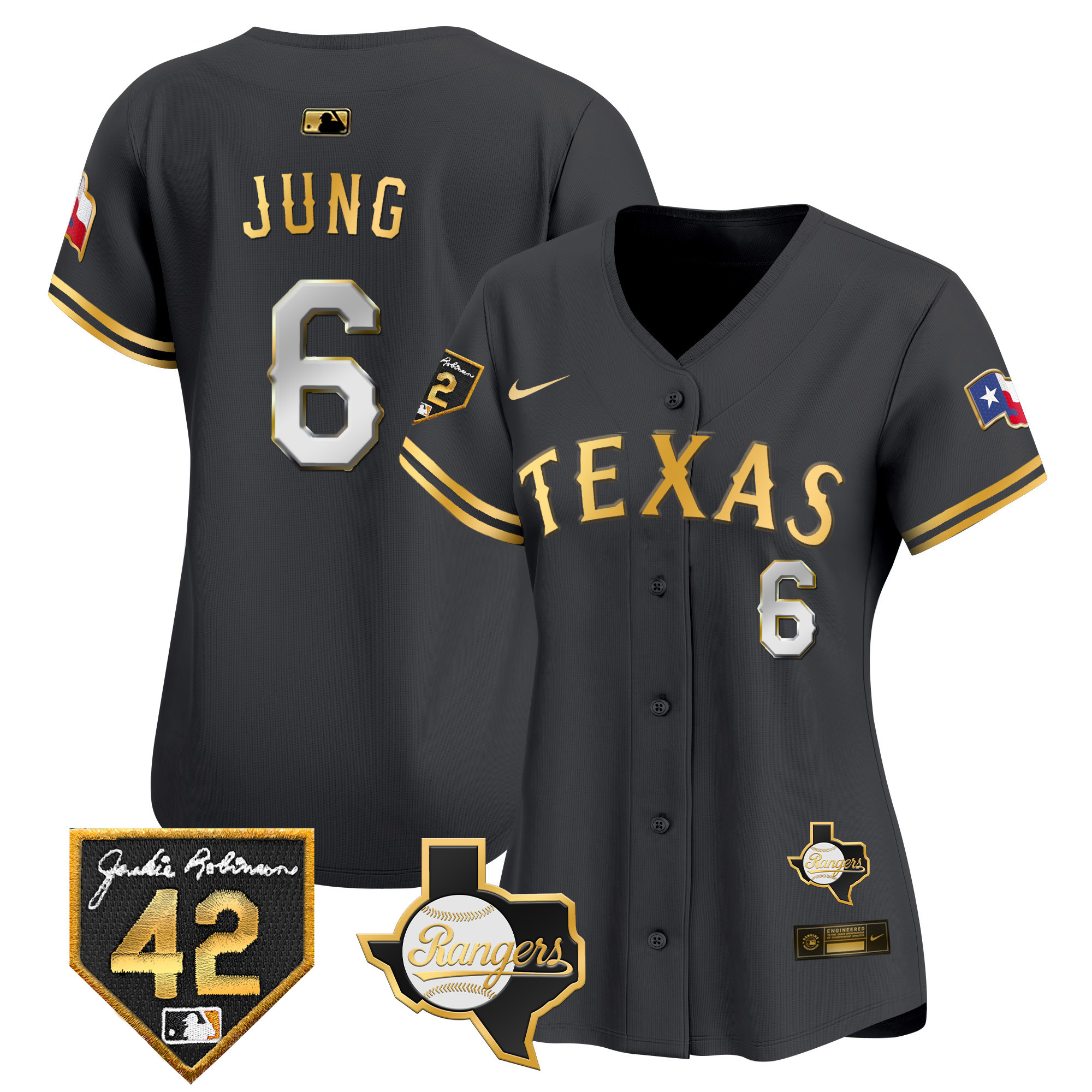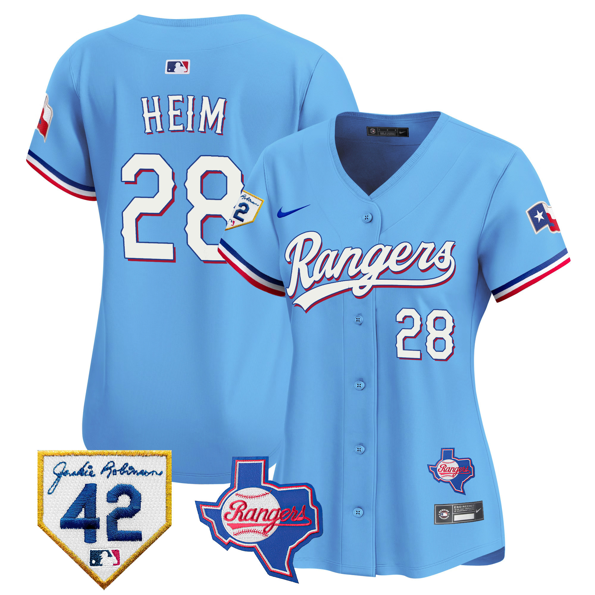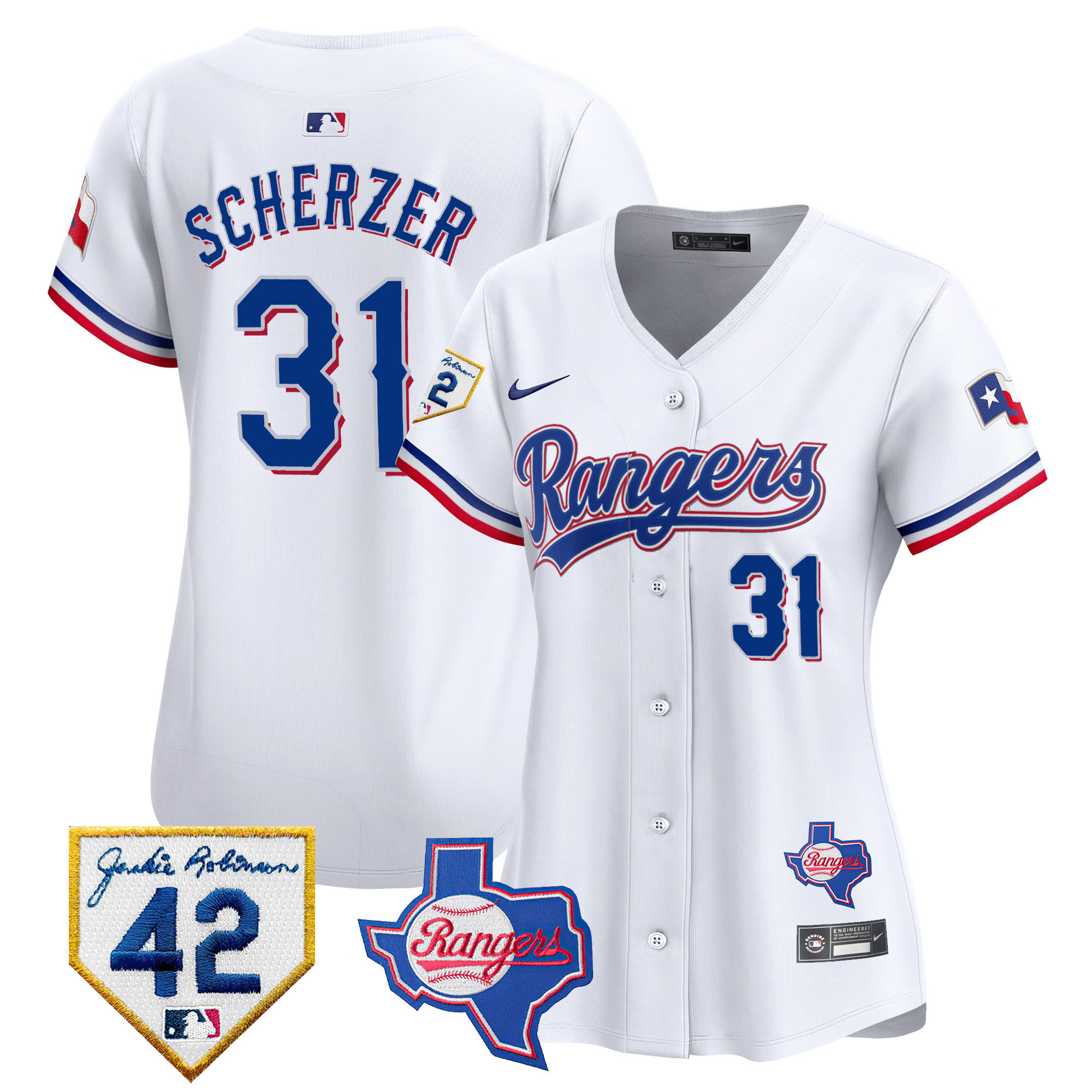 Women’s Texas Rangers 2024 Jackie Robinson Patch Vapor Premier Limited Jersey – All Stitched