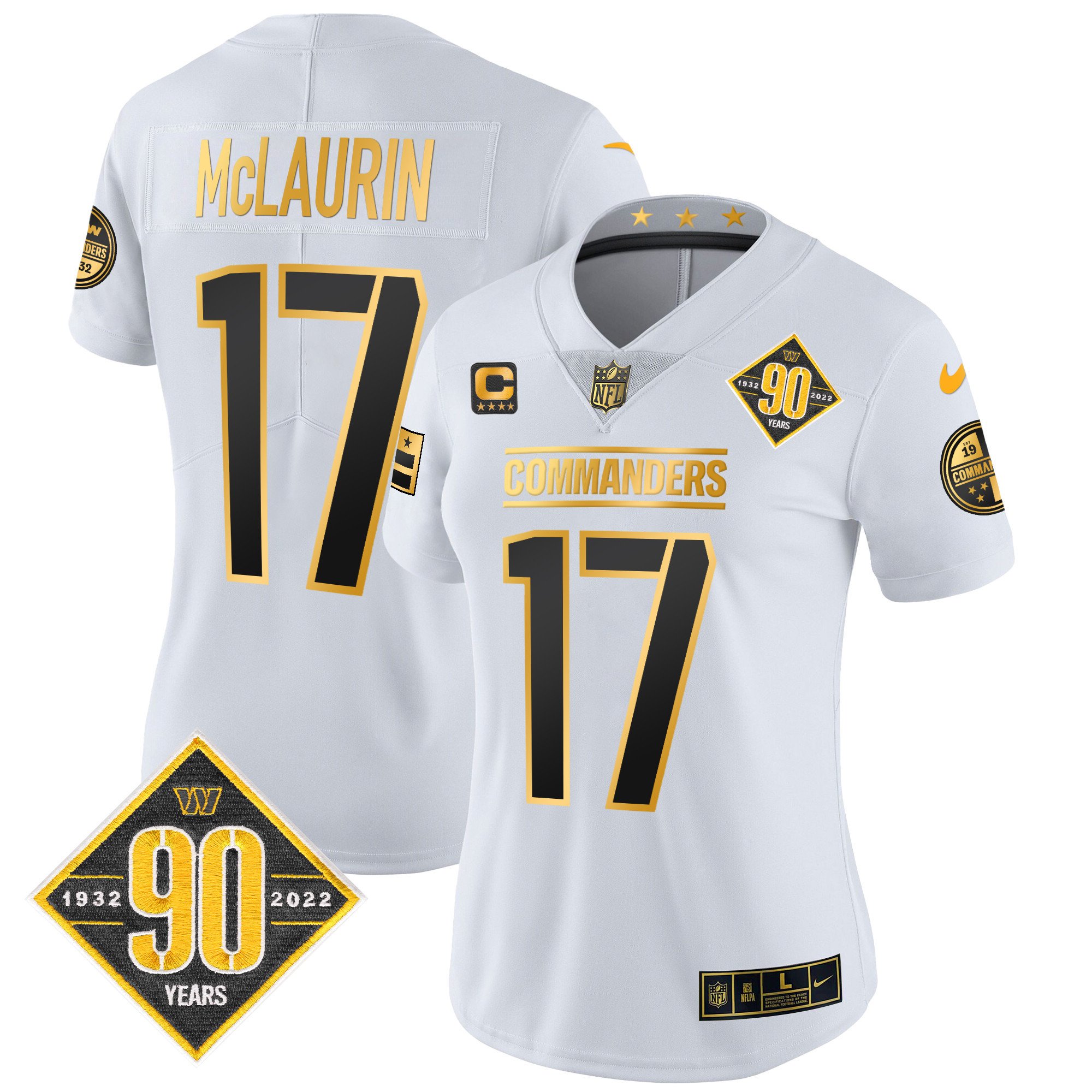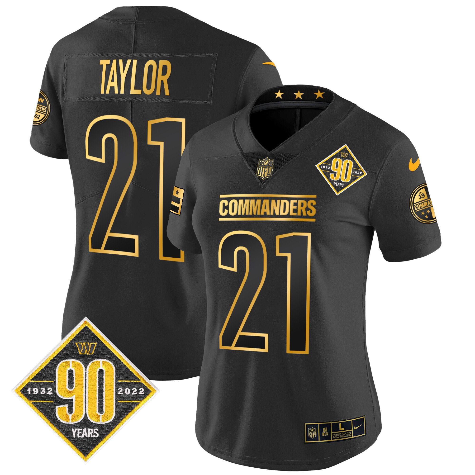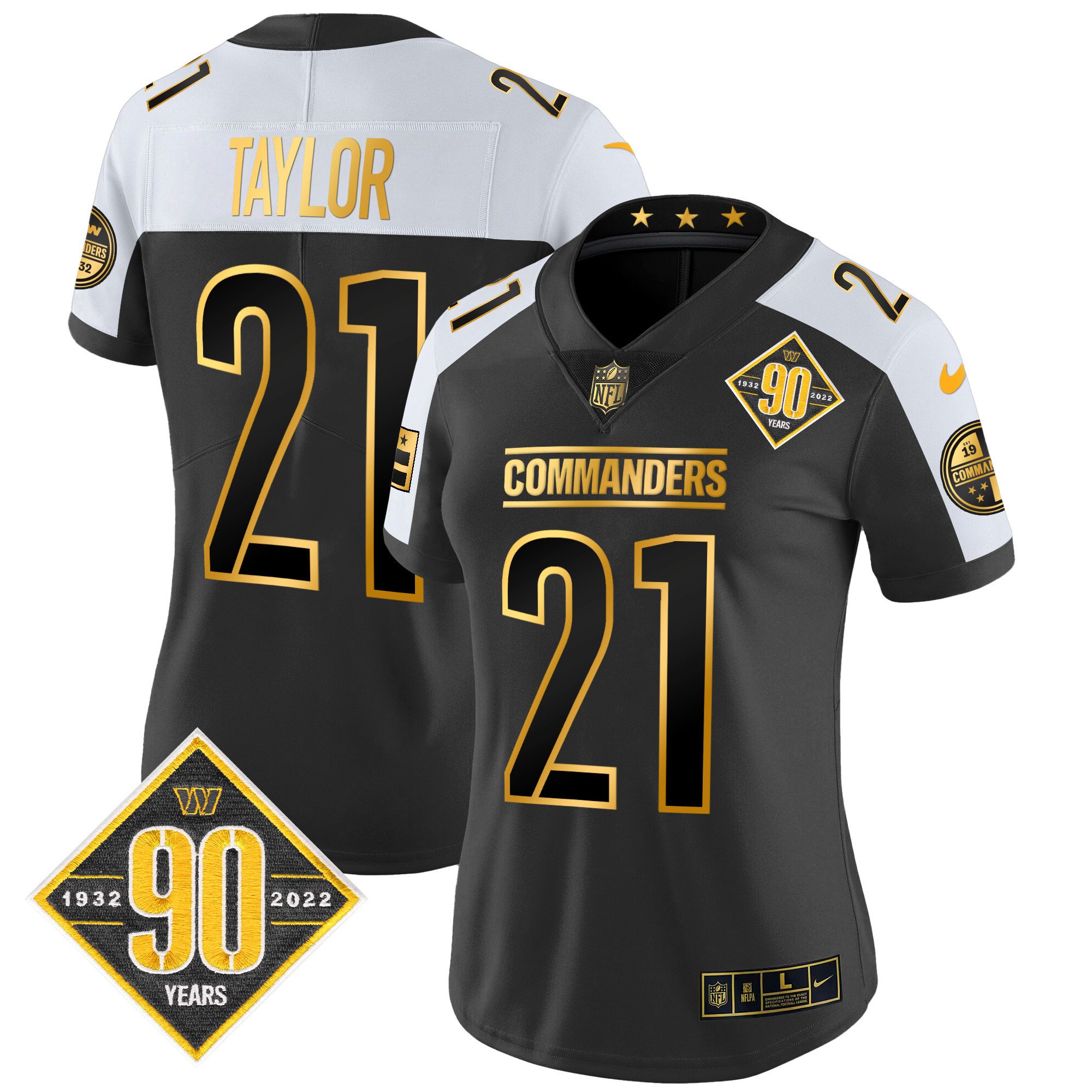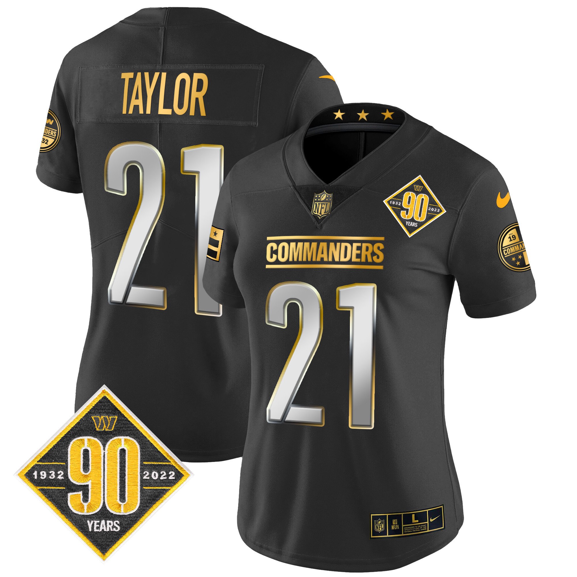 Women’s Washington Commanders 90th Anniversary Patch Gold Vapor Limited Jersey – All Stitched