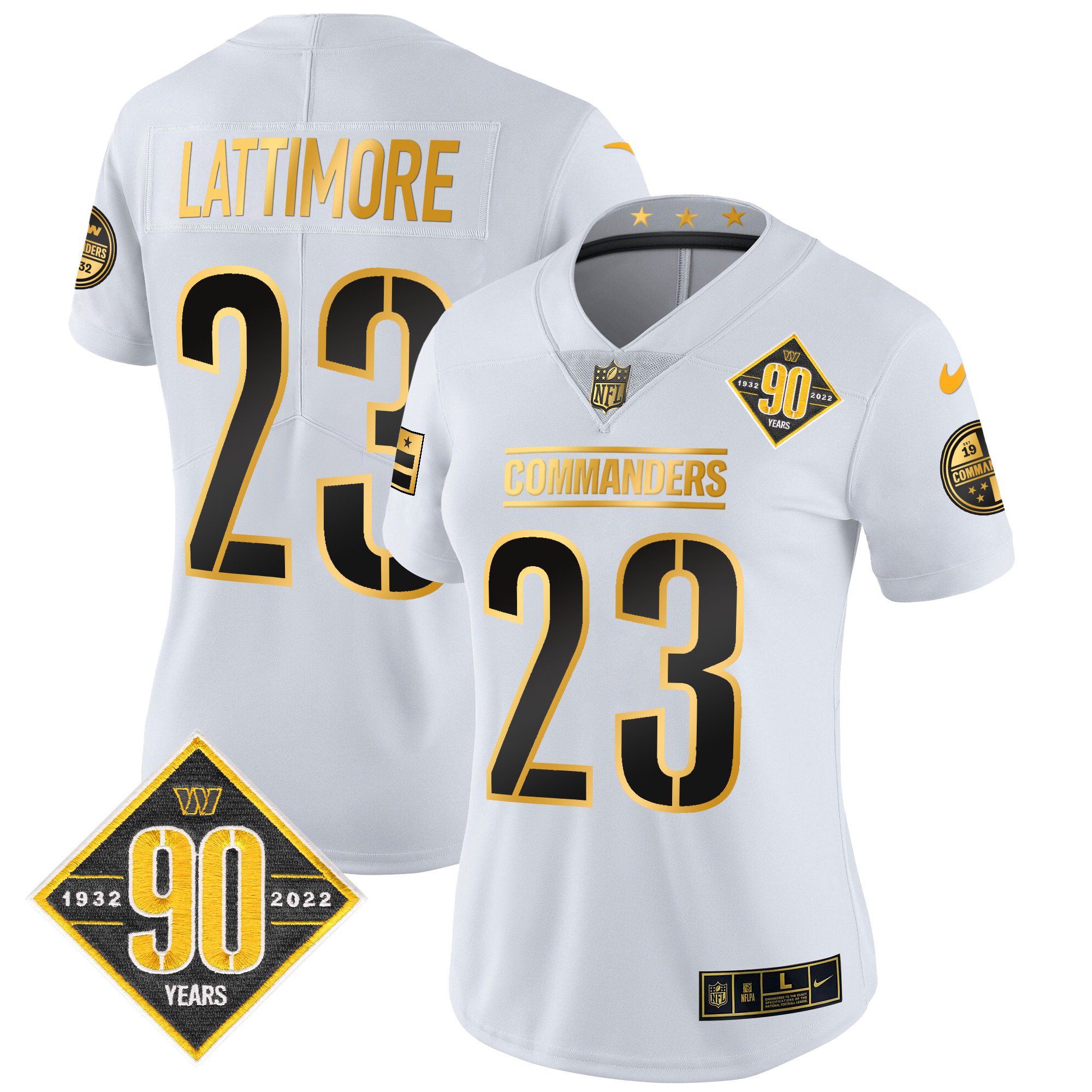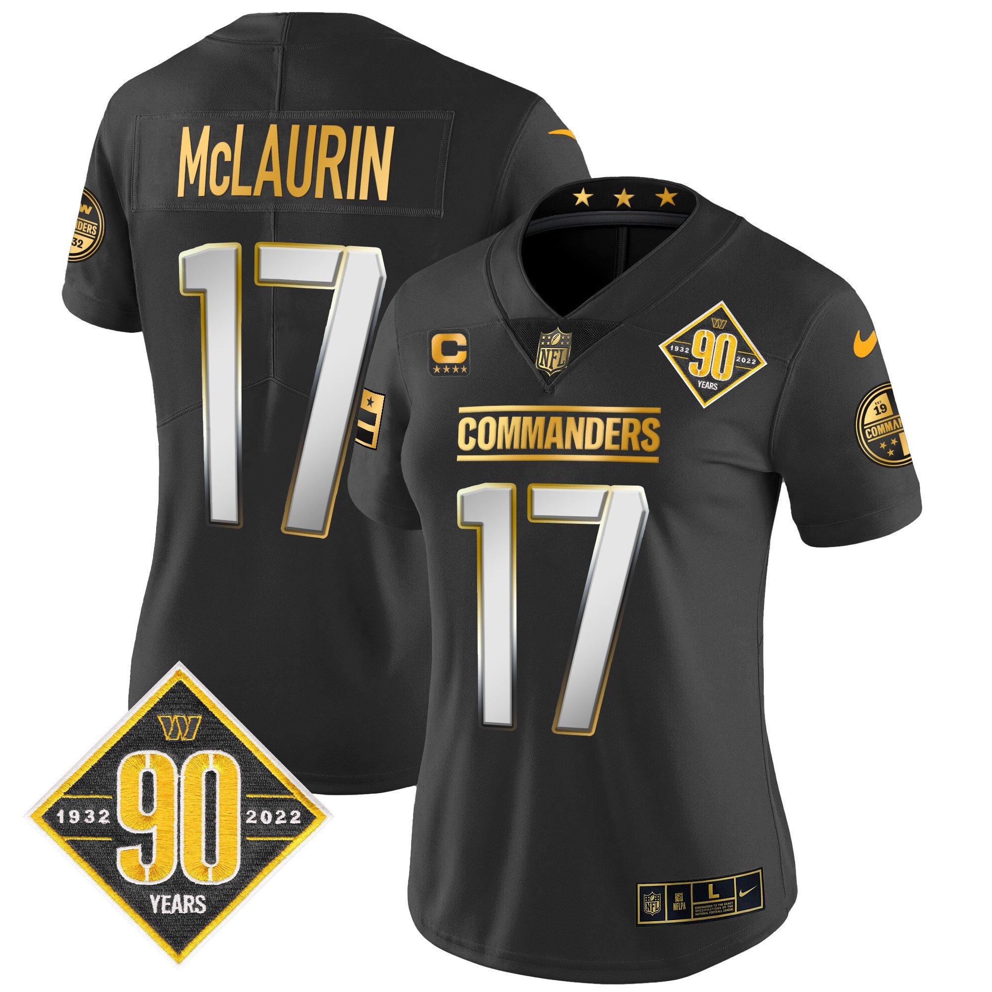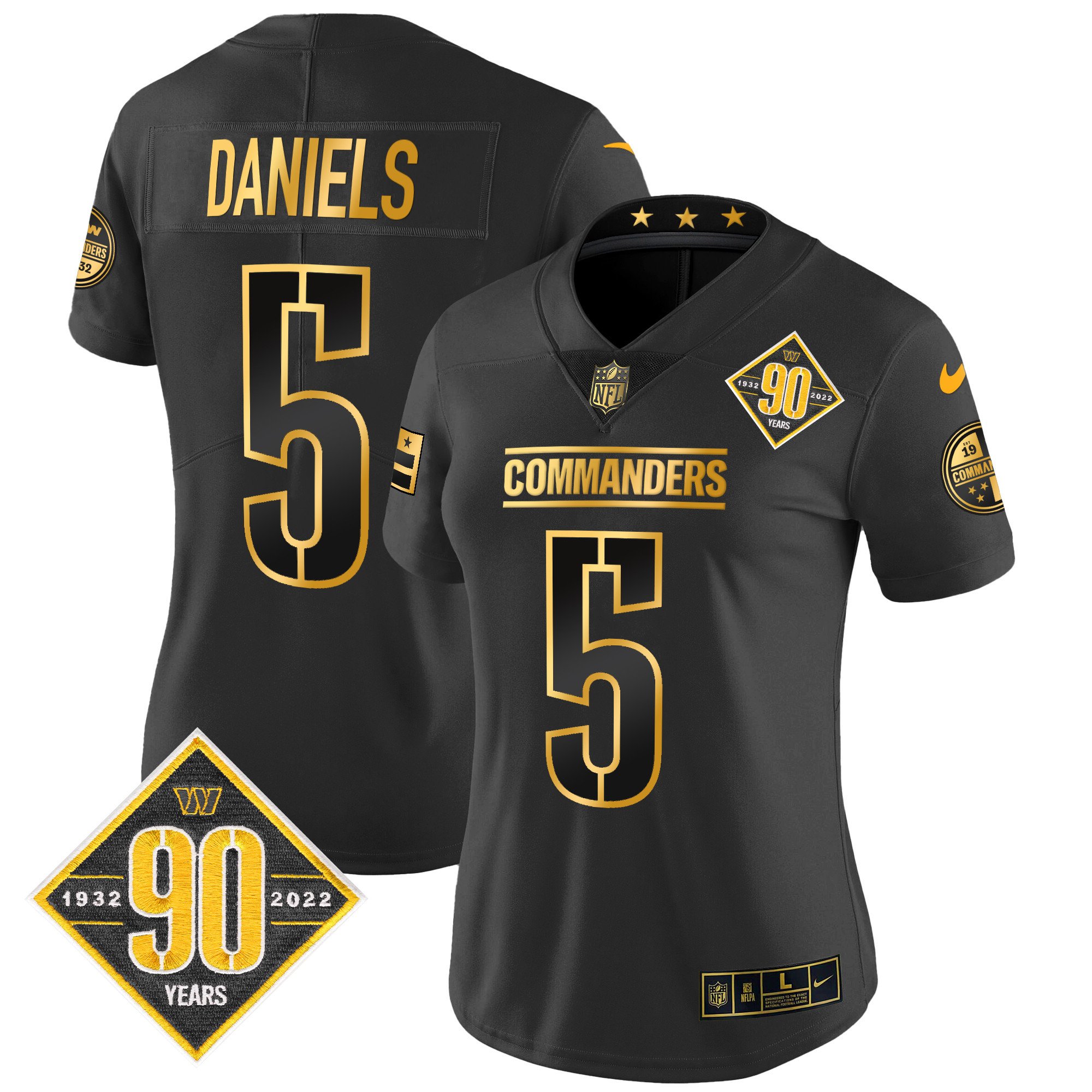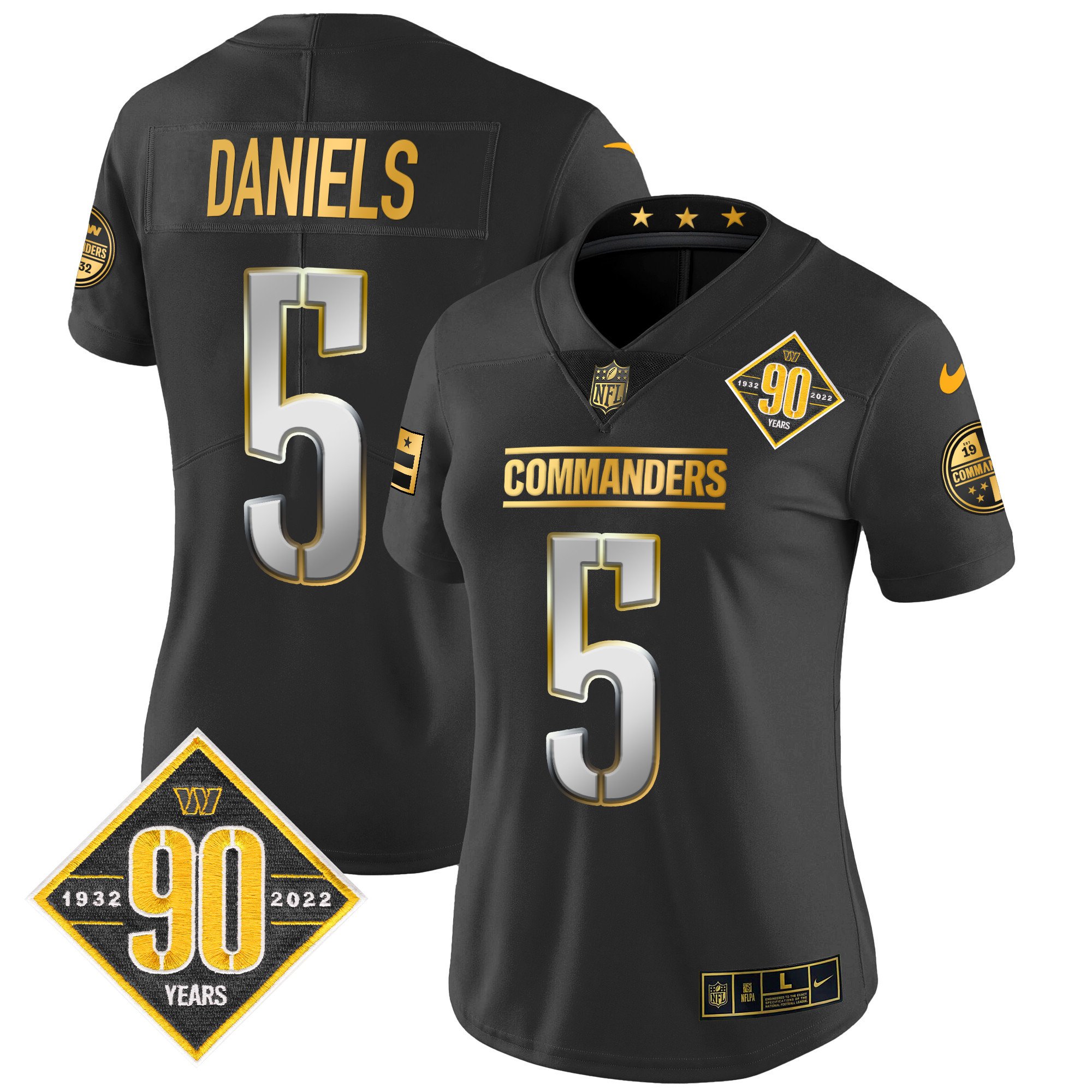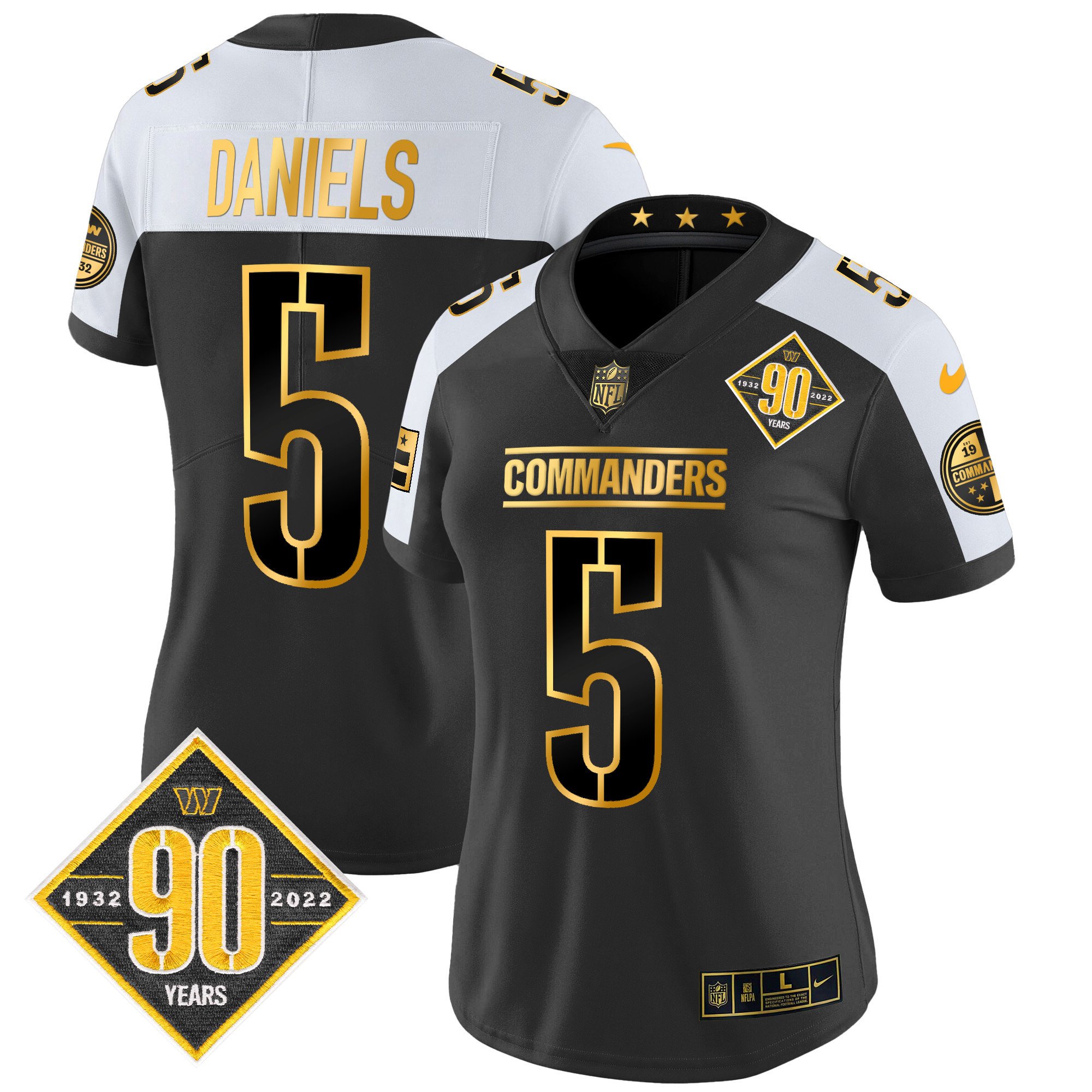 Women’s Washington Commanders 90th Anniversary Patch Gold Vapor Limited Jersey – All Stitched