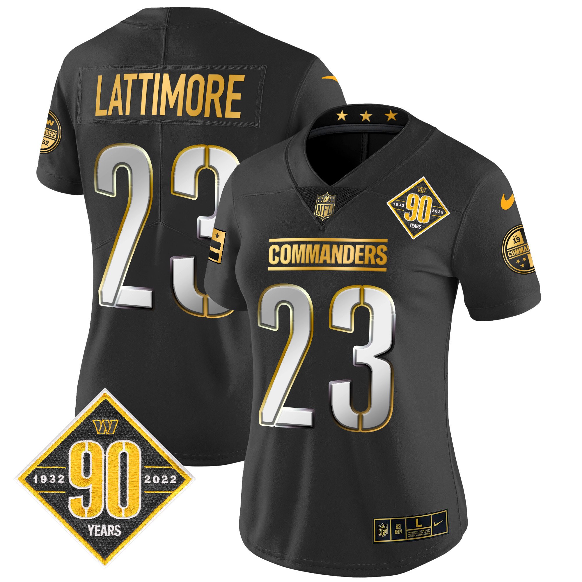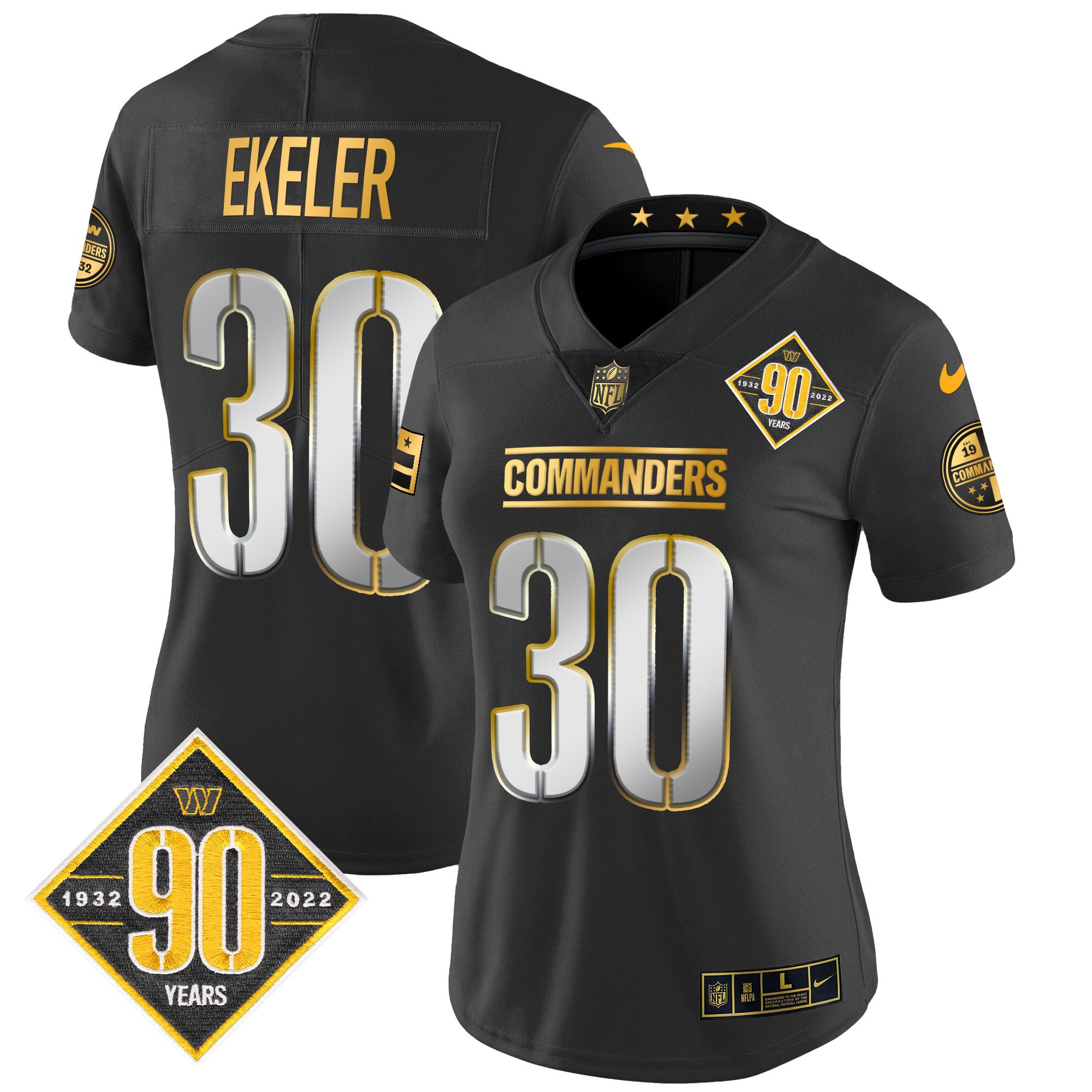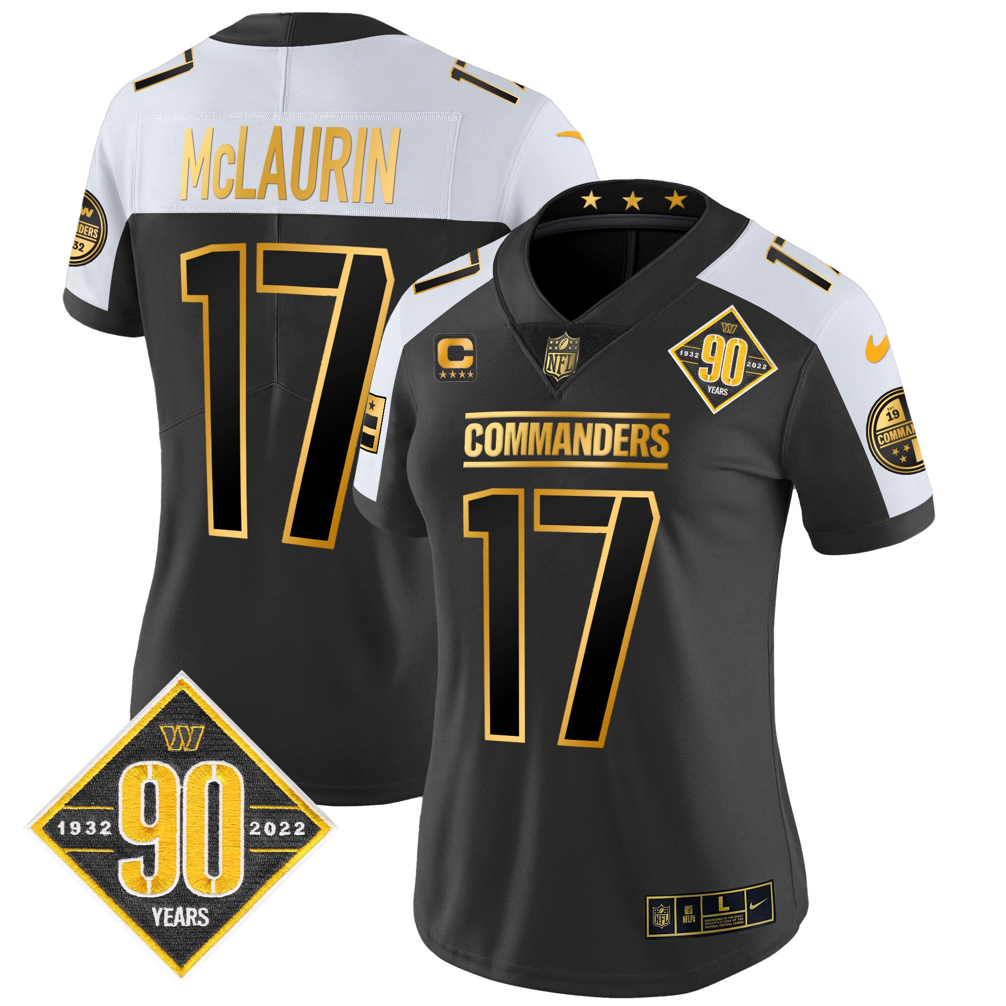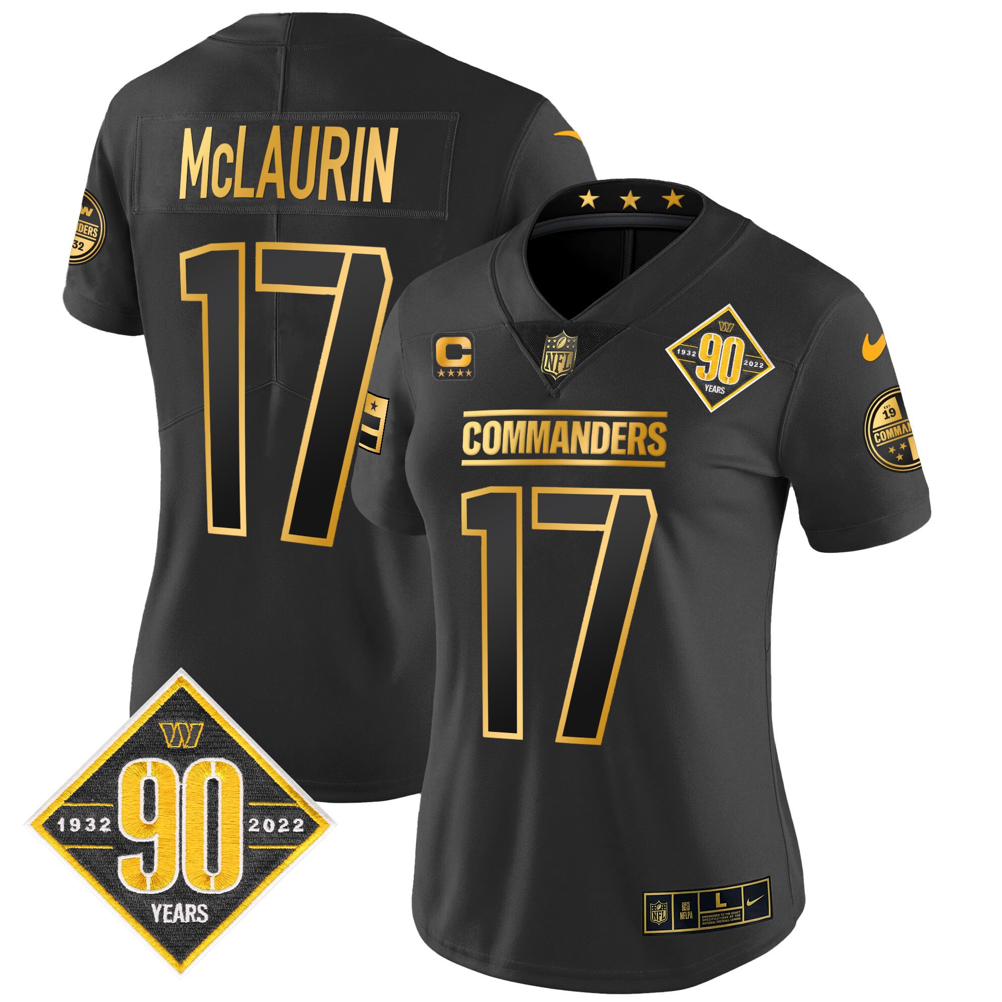 Women’s Washington Commanders 90th Anniversary Patch Gold Vapor Limited Jersey – All Stitched