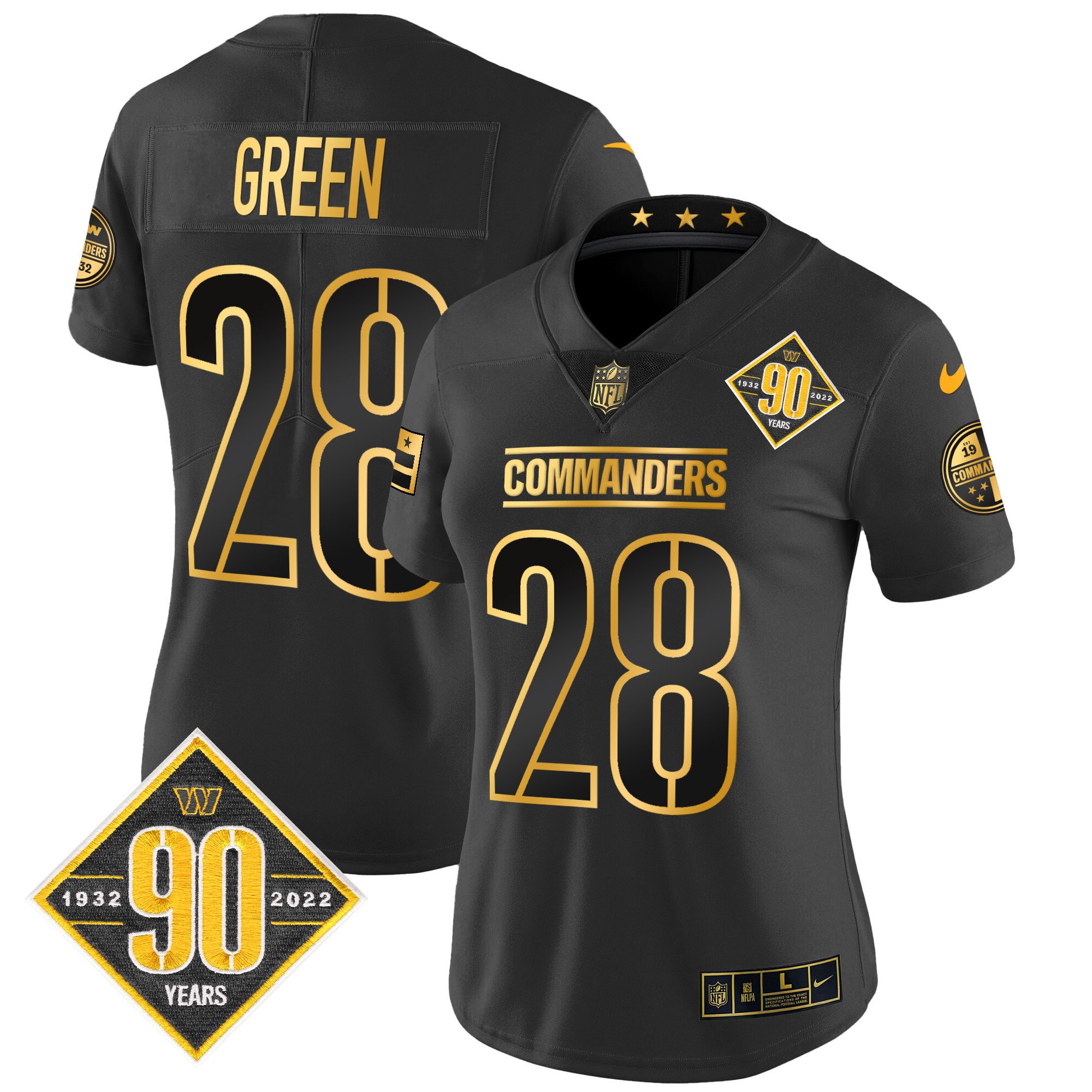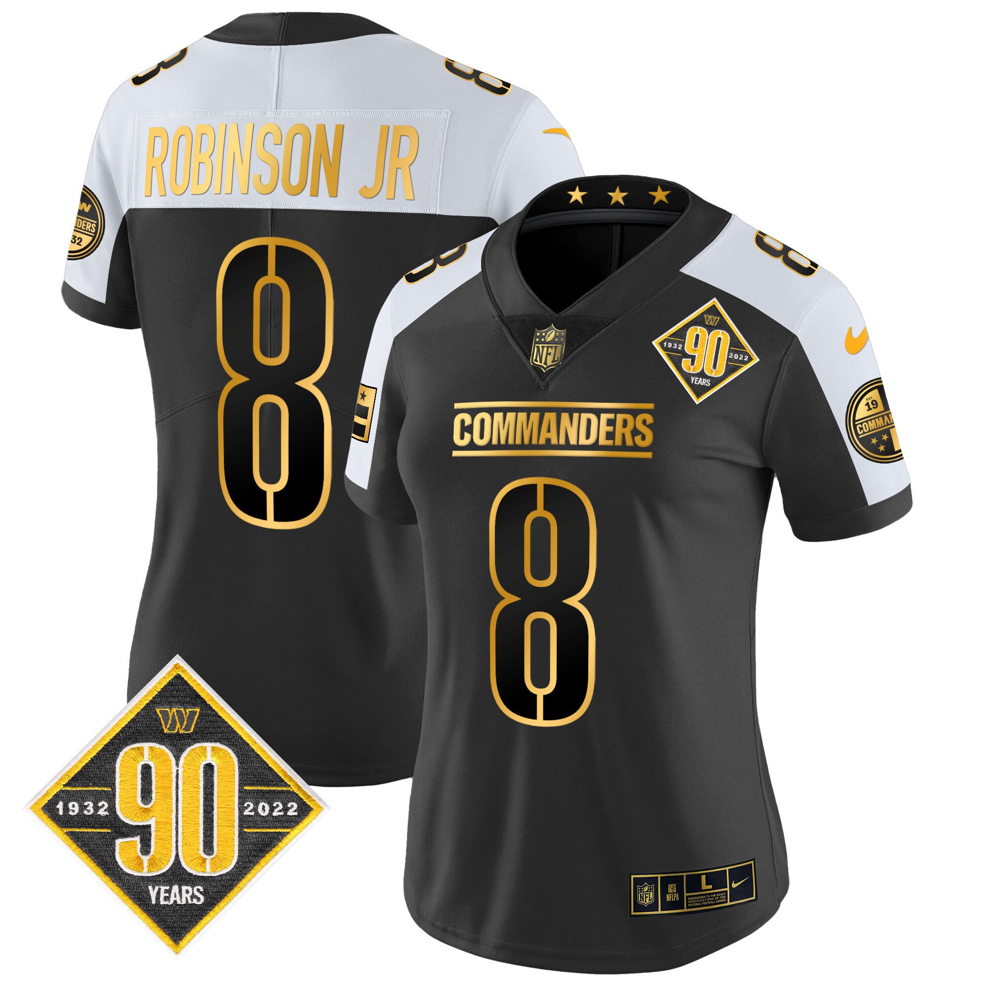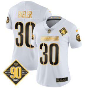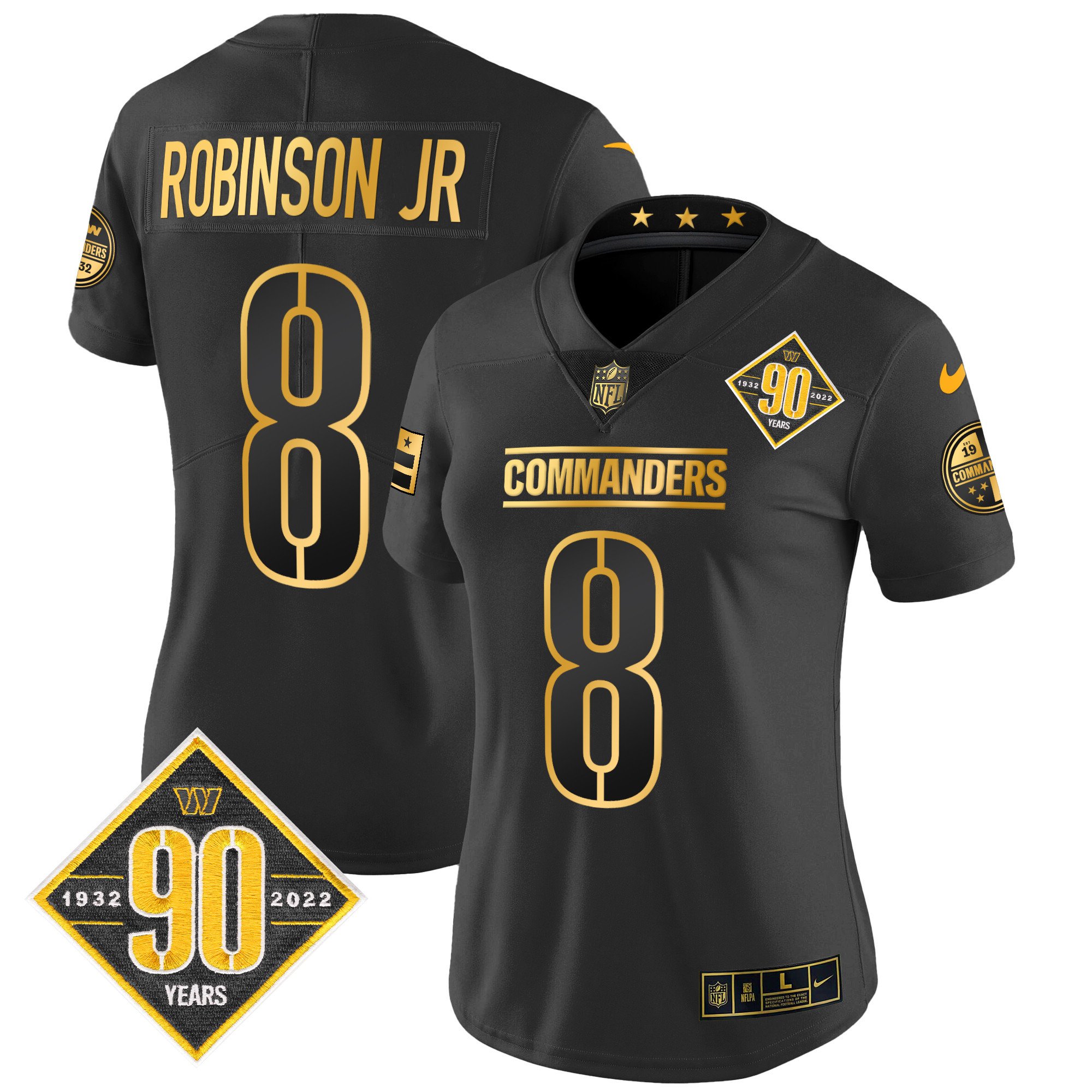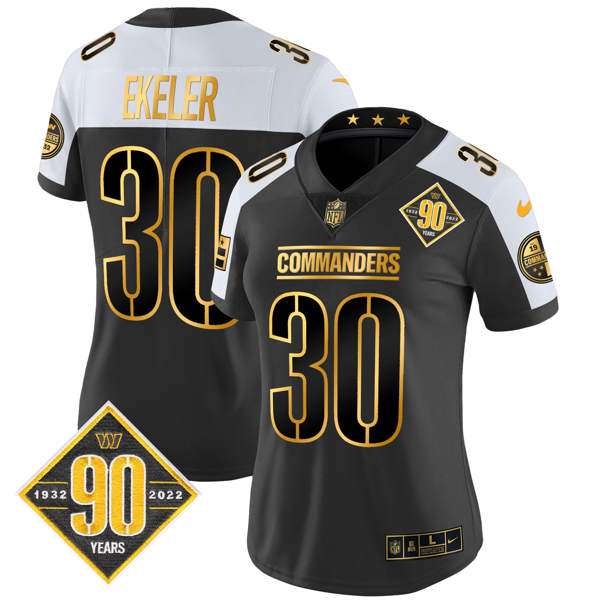 Women’s Washington Commanders 90th Anniversary Patch Gold Vapor Limited Jersey – All Stitched