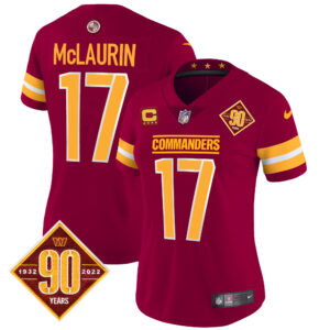 Women’s Washington Commanders 90th Anniversary Patch Vapor Jersey V2 – All Stitched