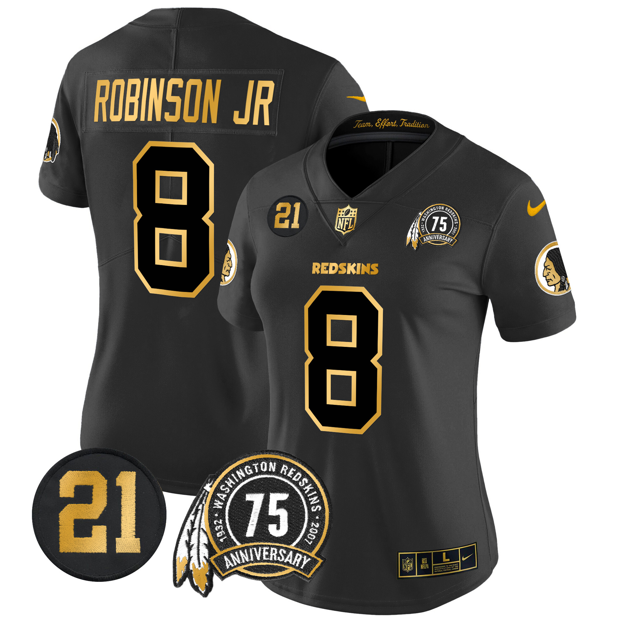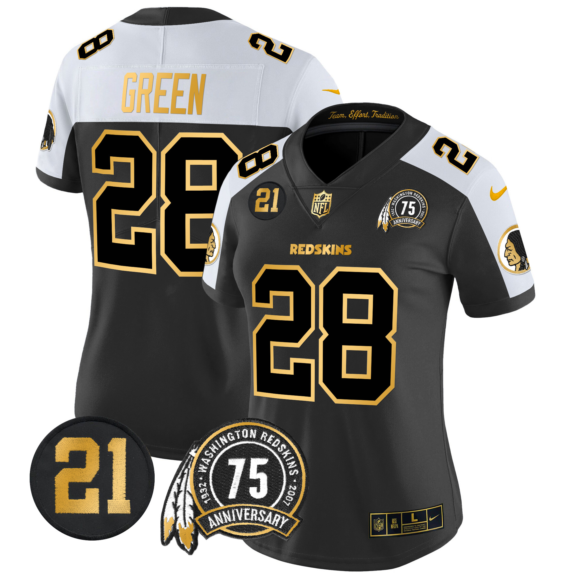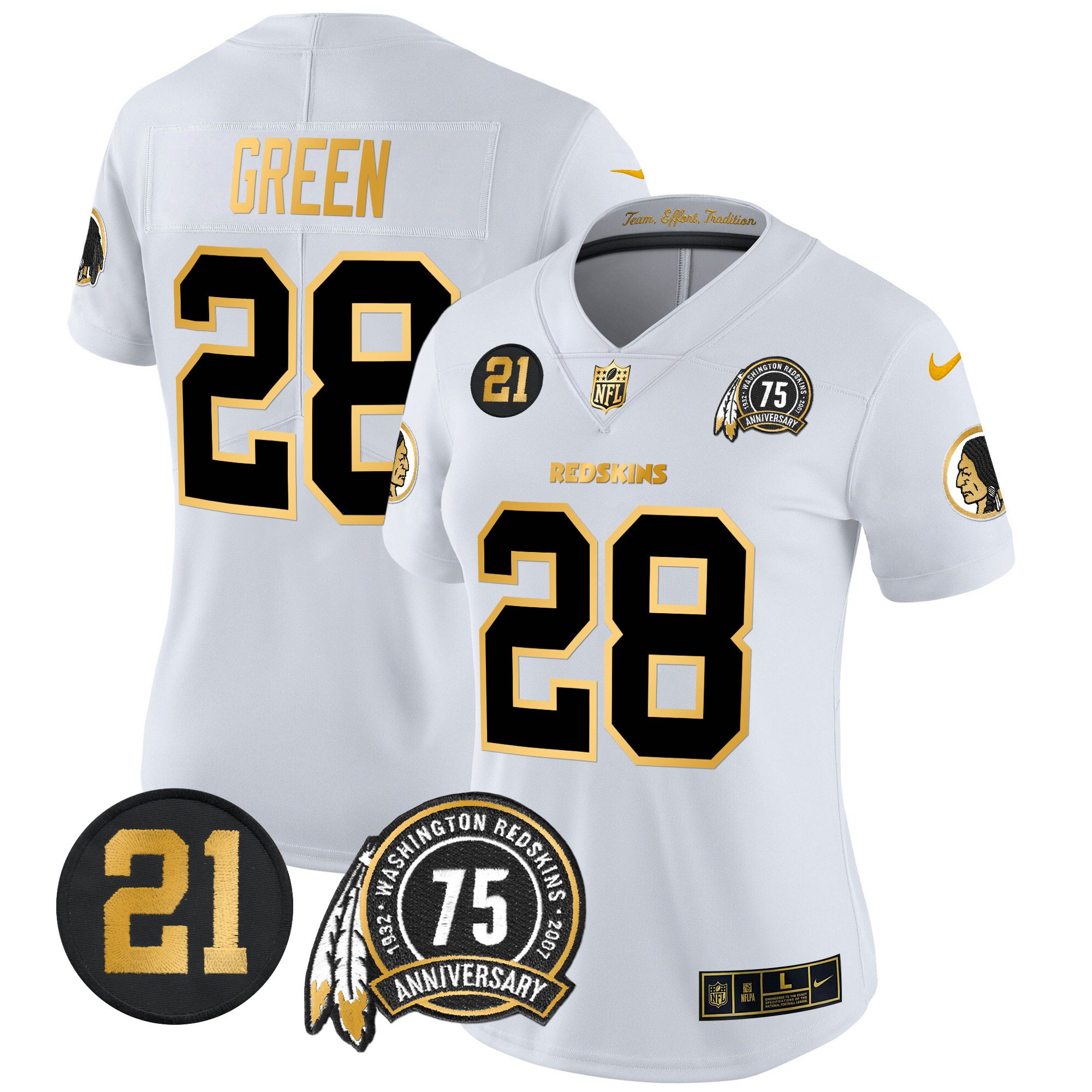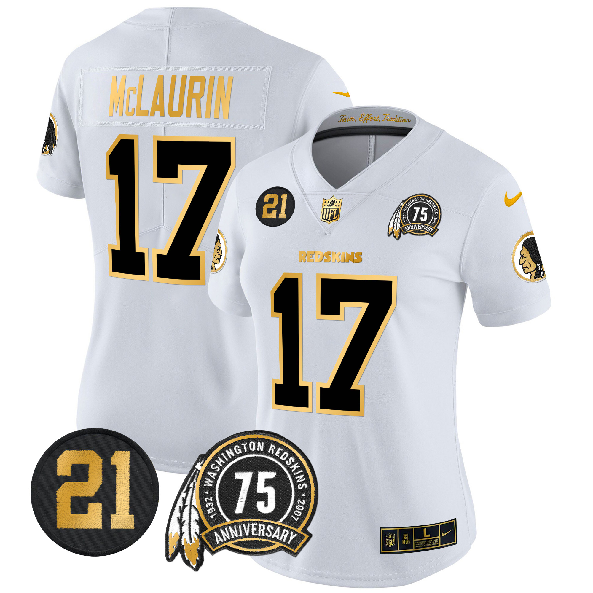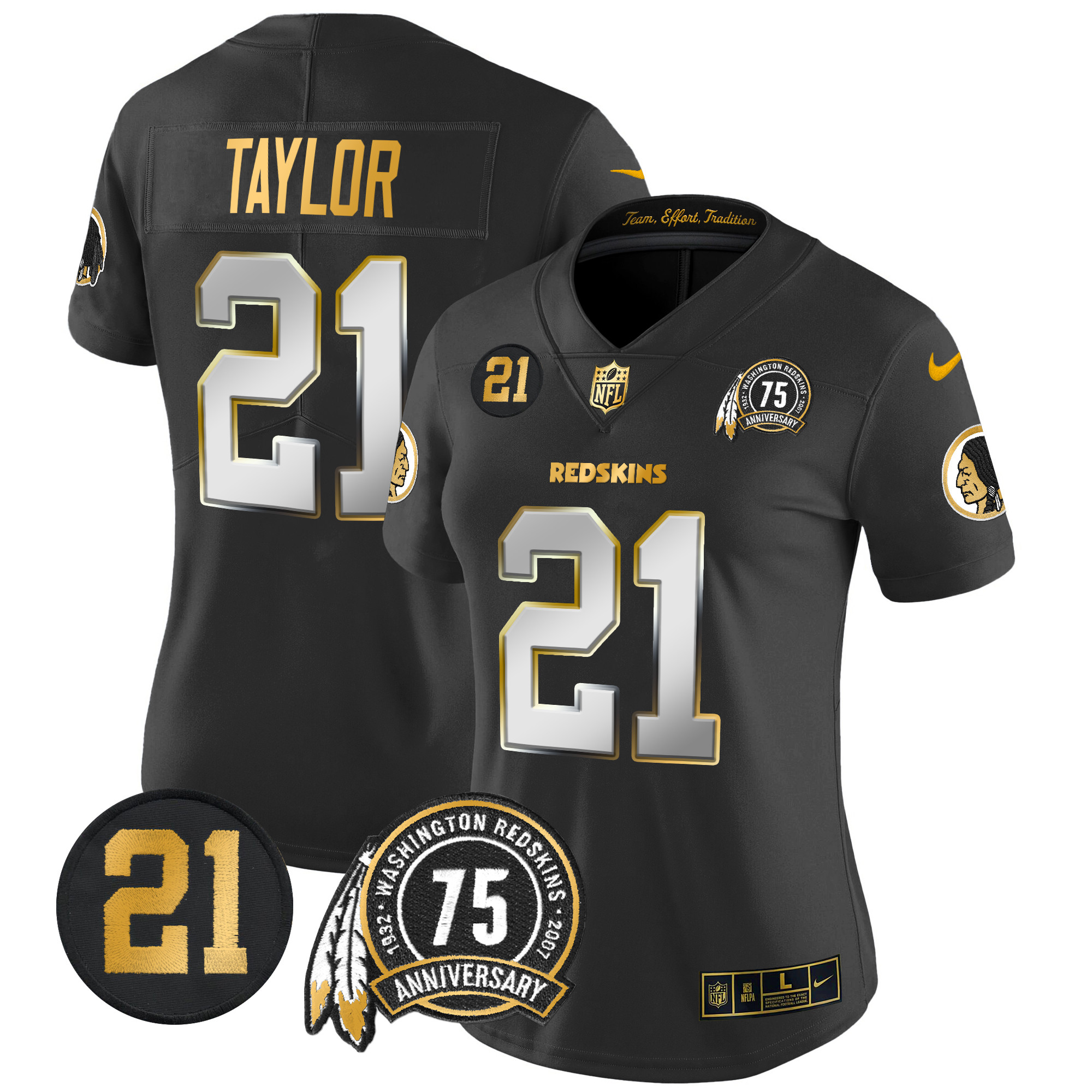 Women’s Washington Redskins 75th & Sean Taylor Patch Gold Vapor Limited Jersey – All Stitched