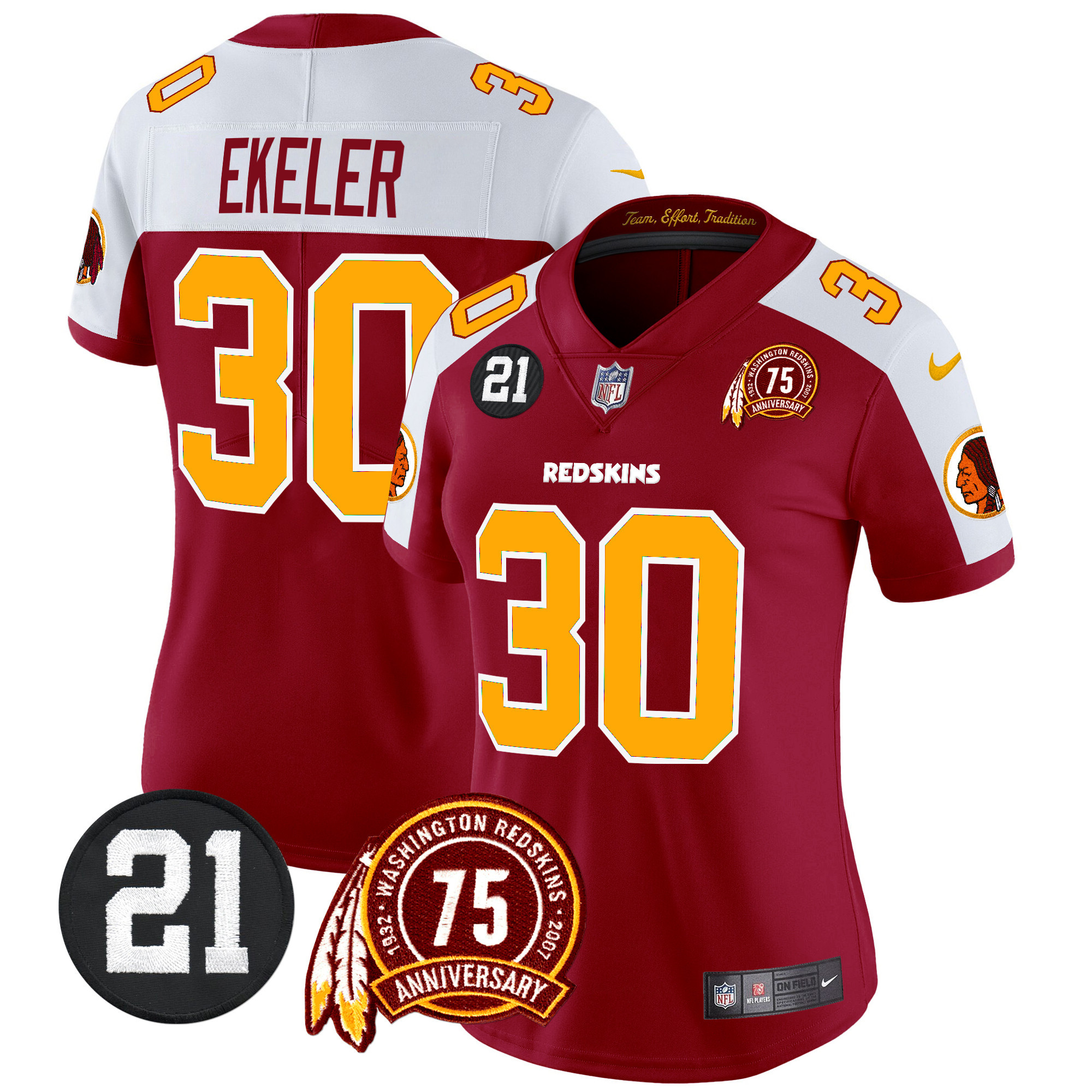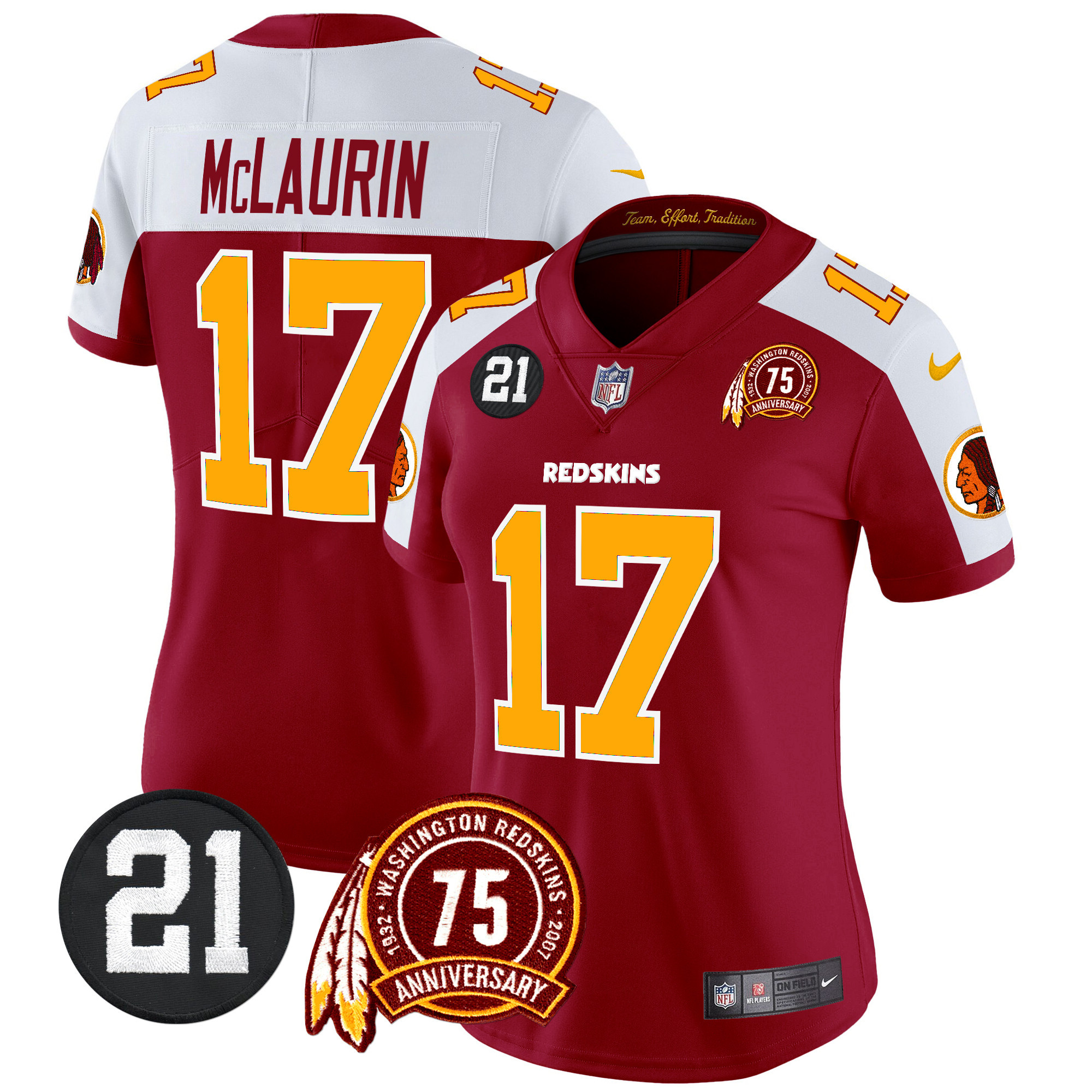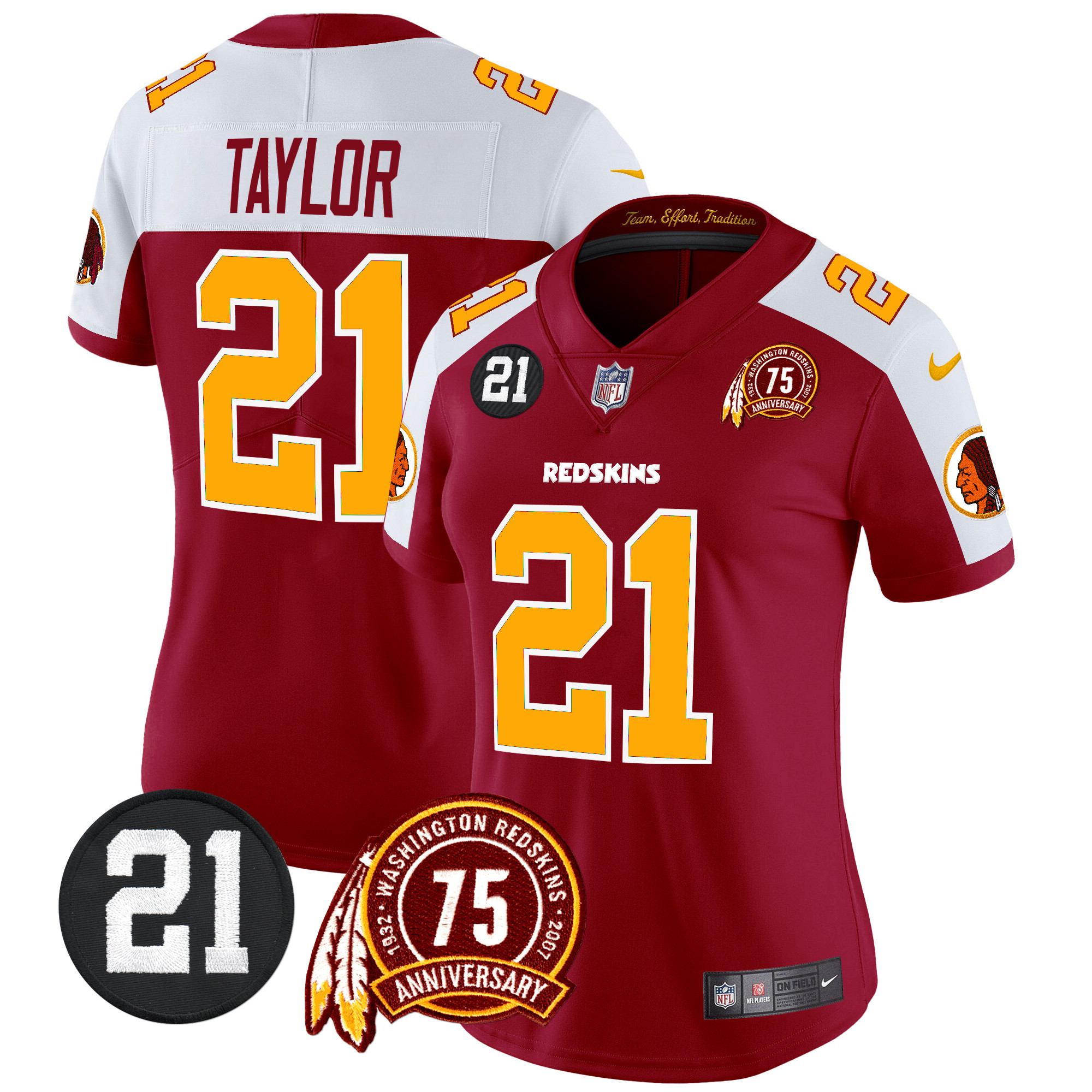 Women’s Washington Redskins 75th & Sean Taylor Patch Vapor Limited Jersey – All Stitched