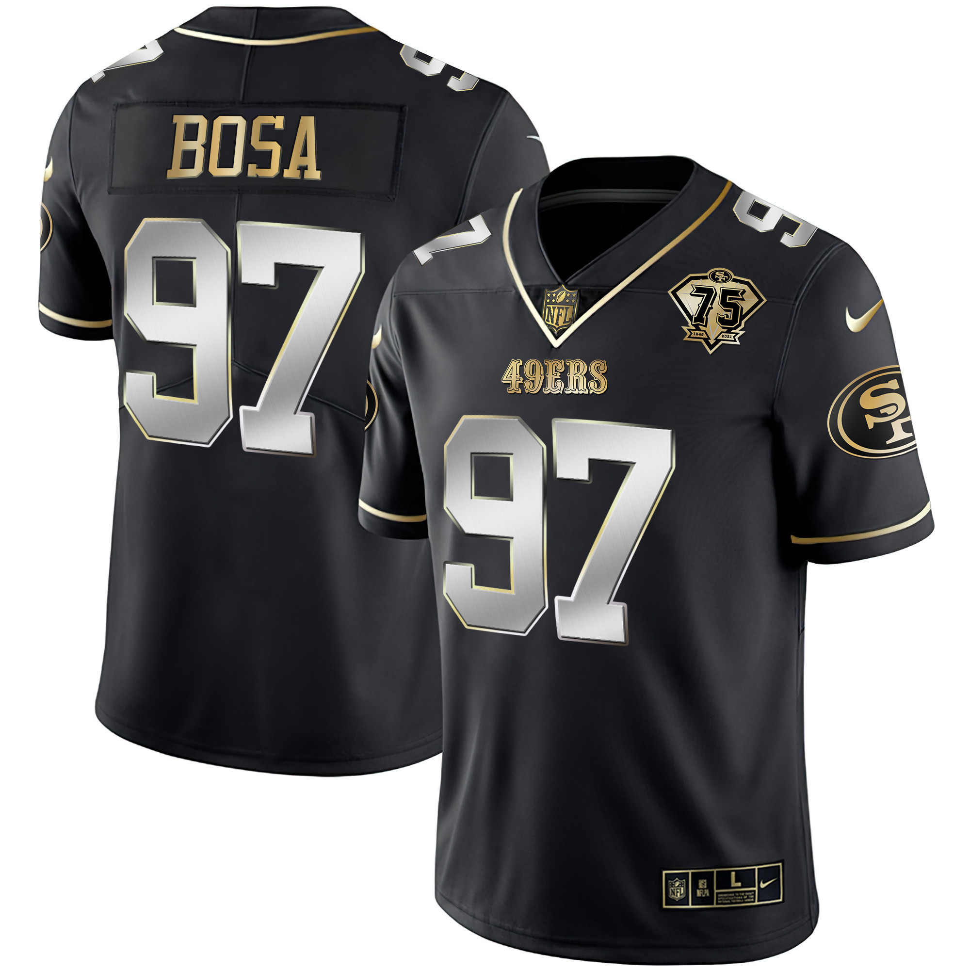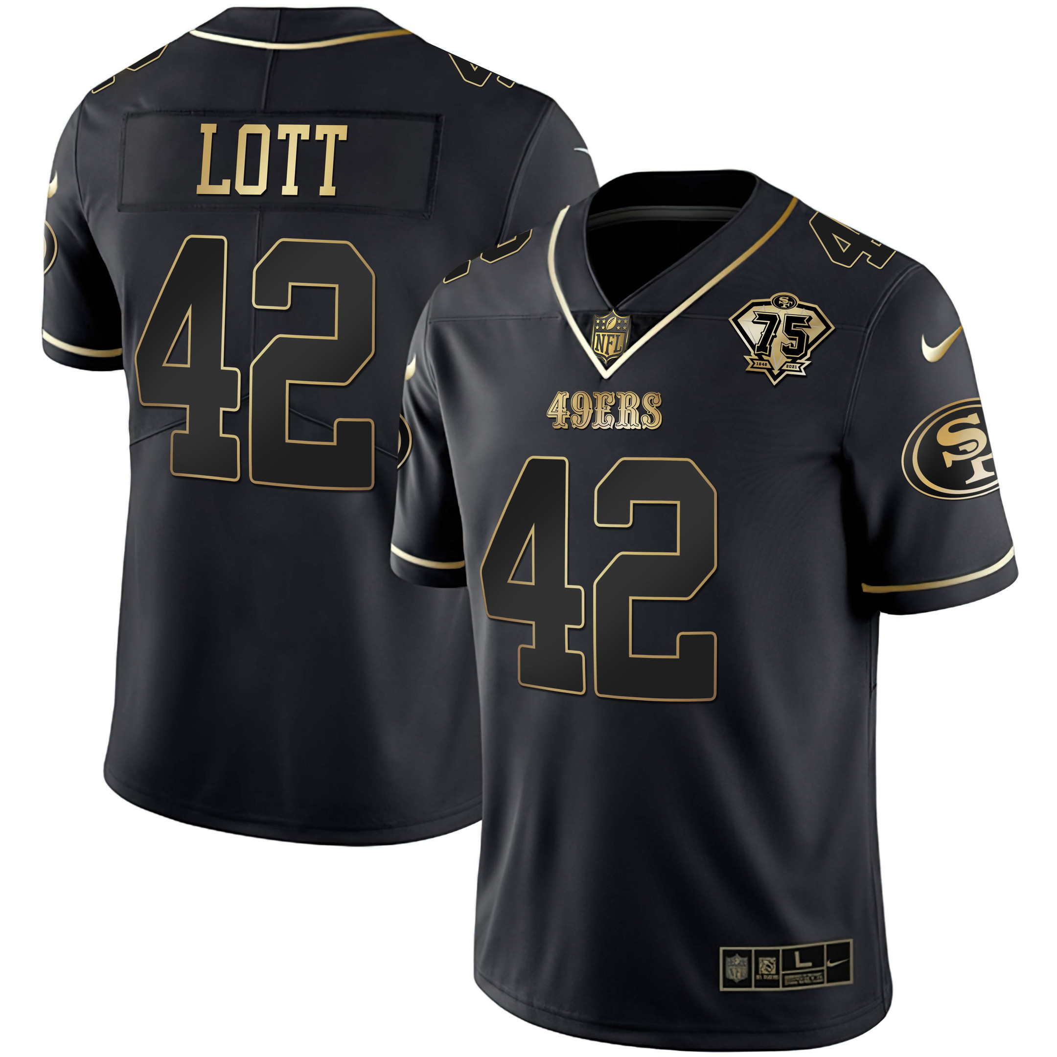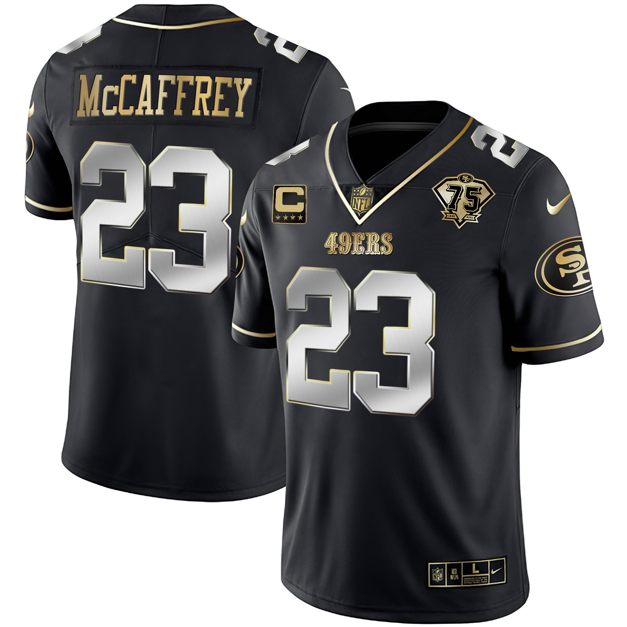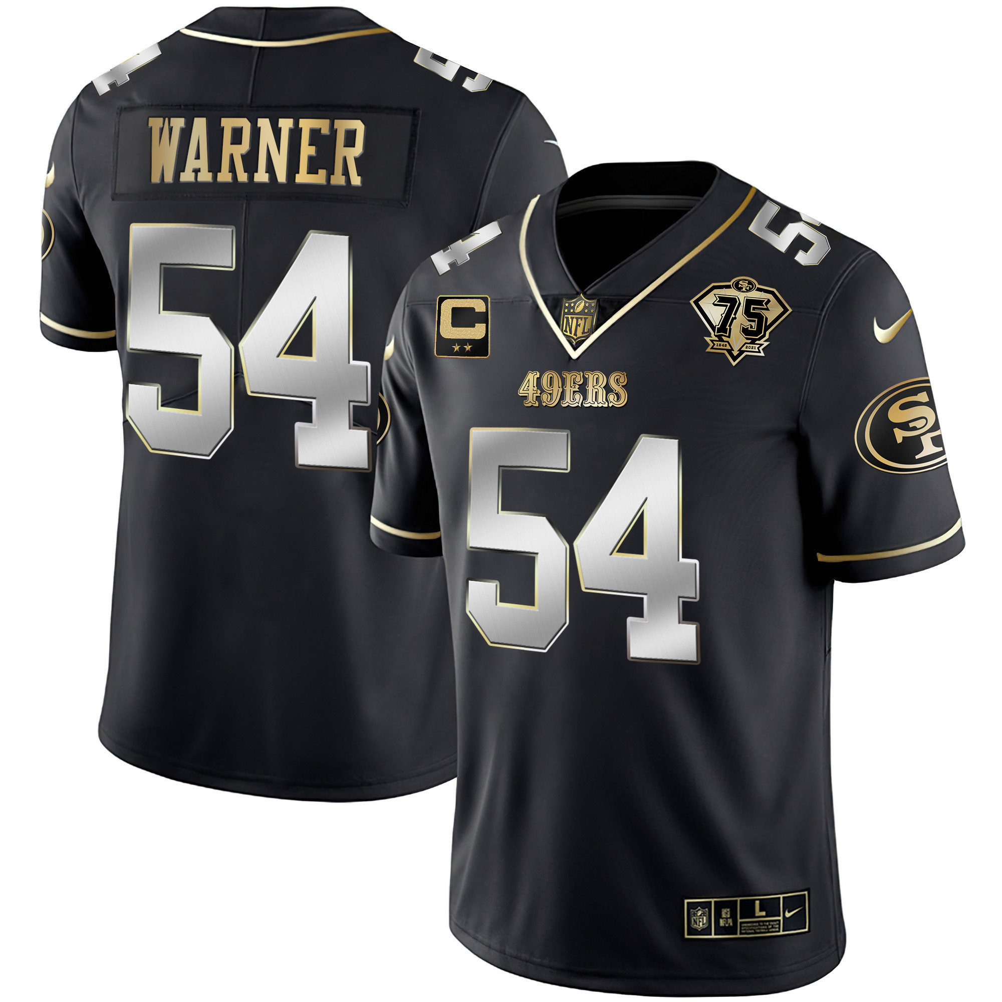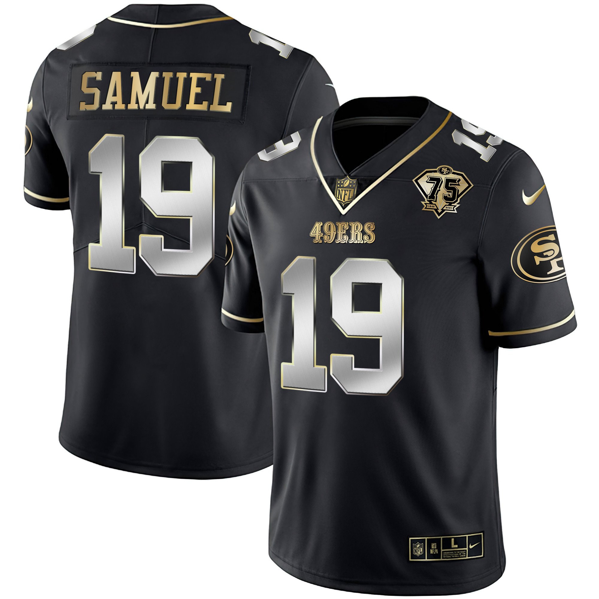 Youth’s 49ers 75th Anniversary Patch White Gold & Black Gold – All Stitched