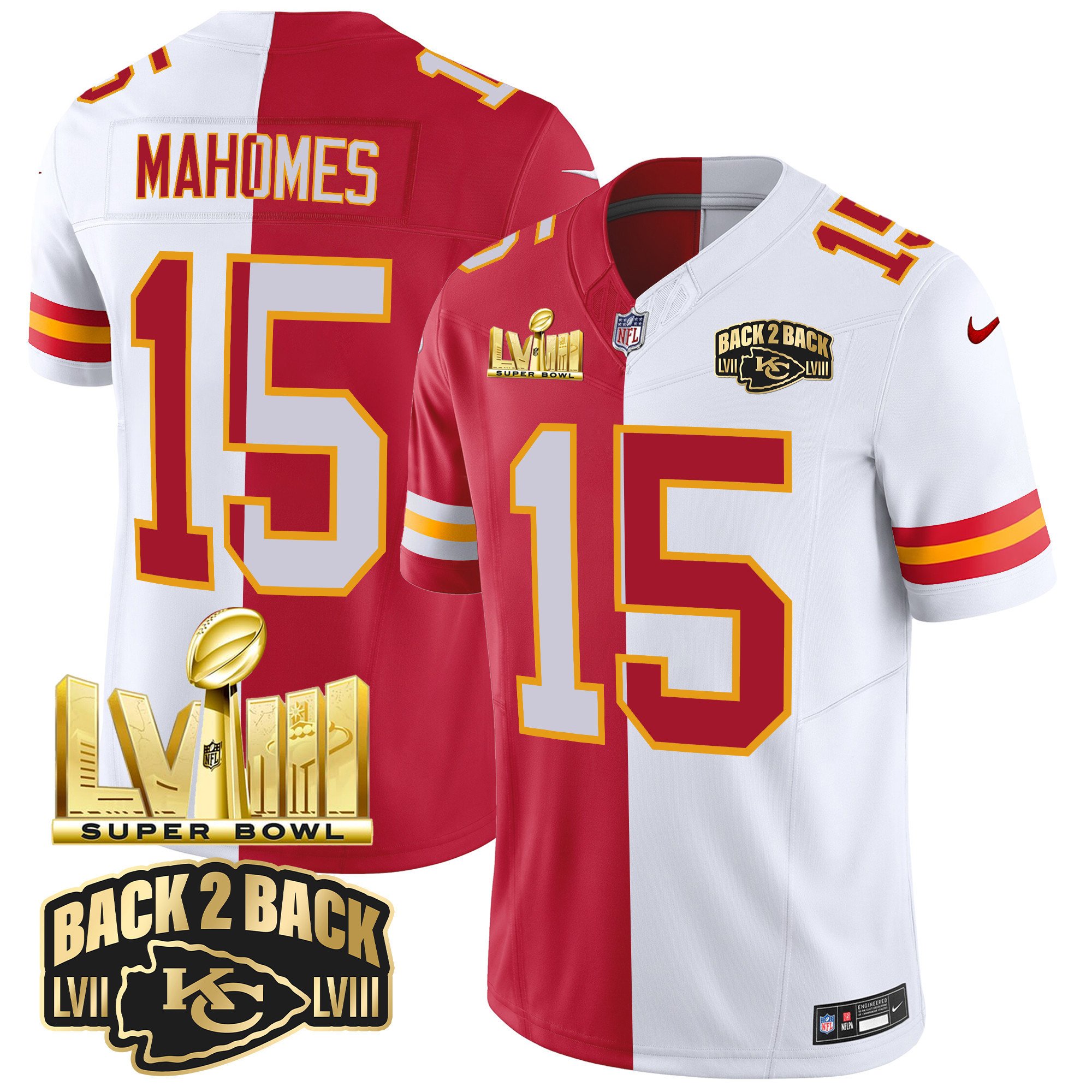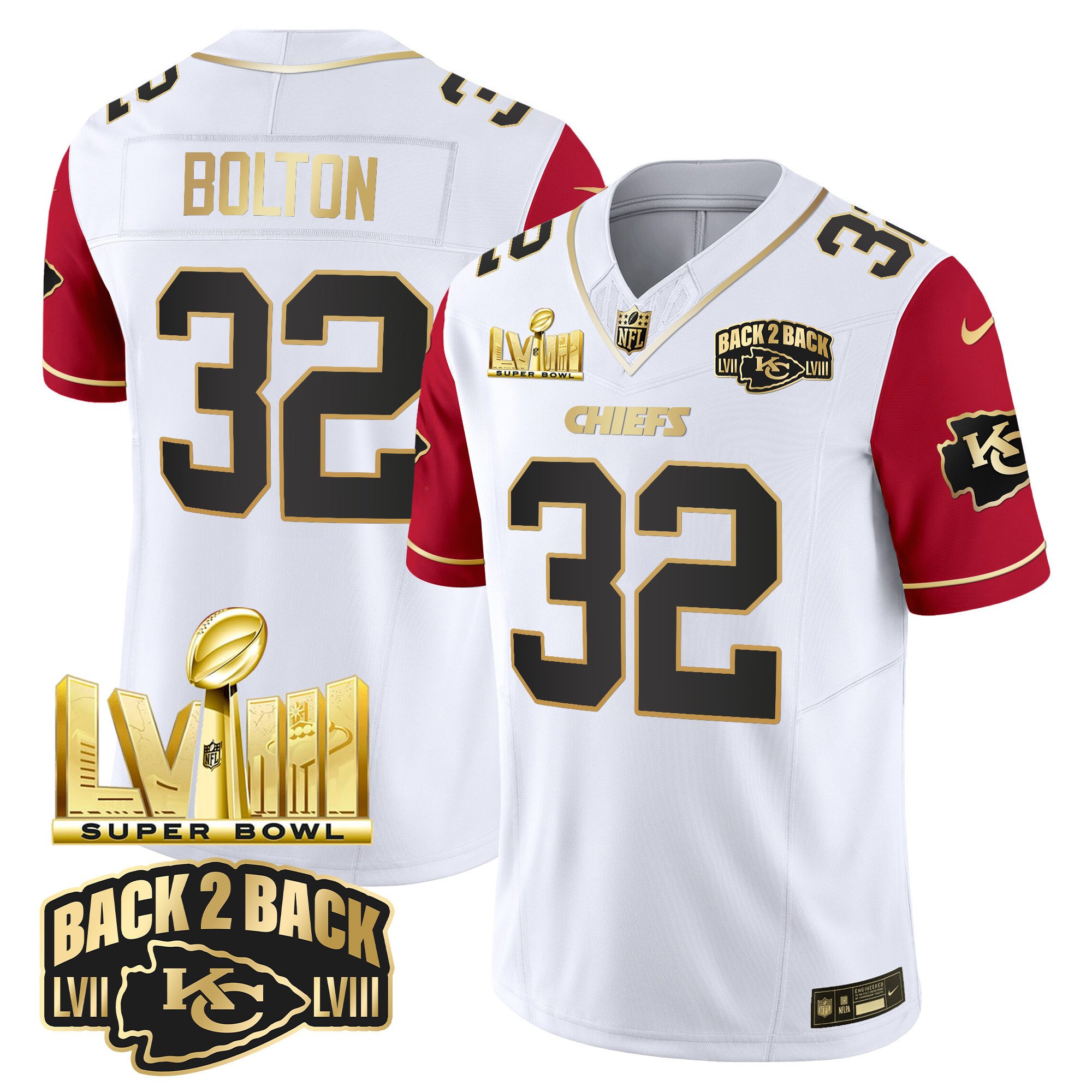 Youth’s Chiefs Super Bowl LVIII & Back 2 Back Gold Patch Vapor Jersey V2 – All Stitched